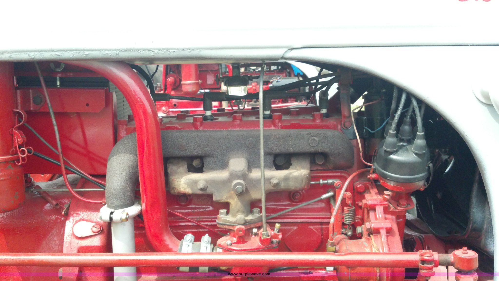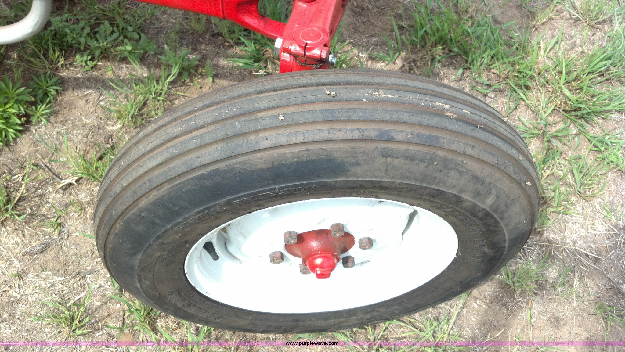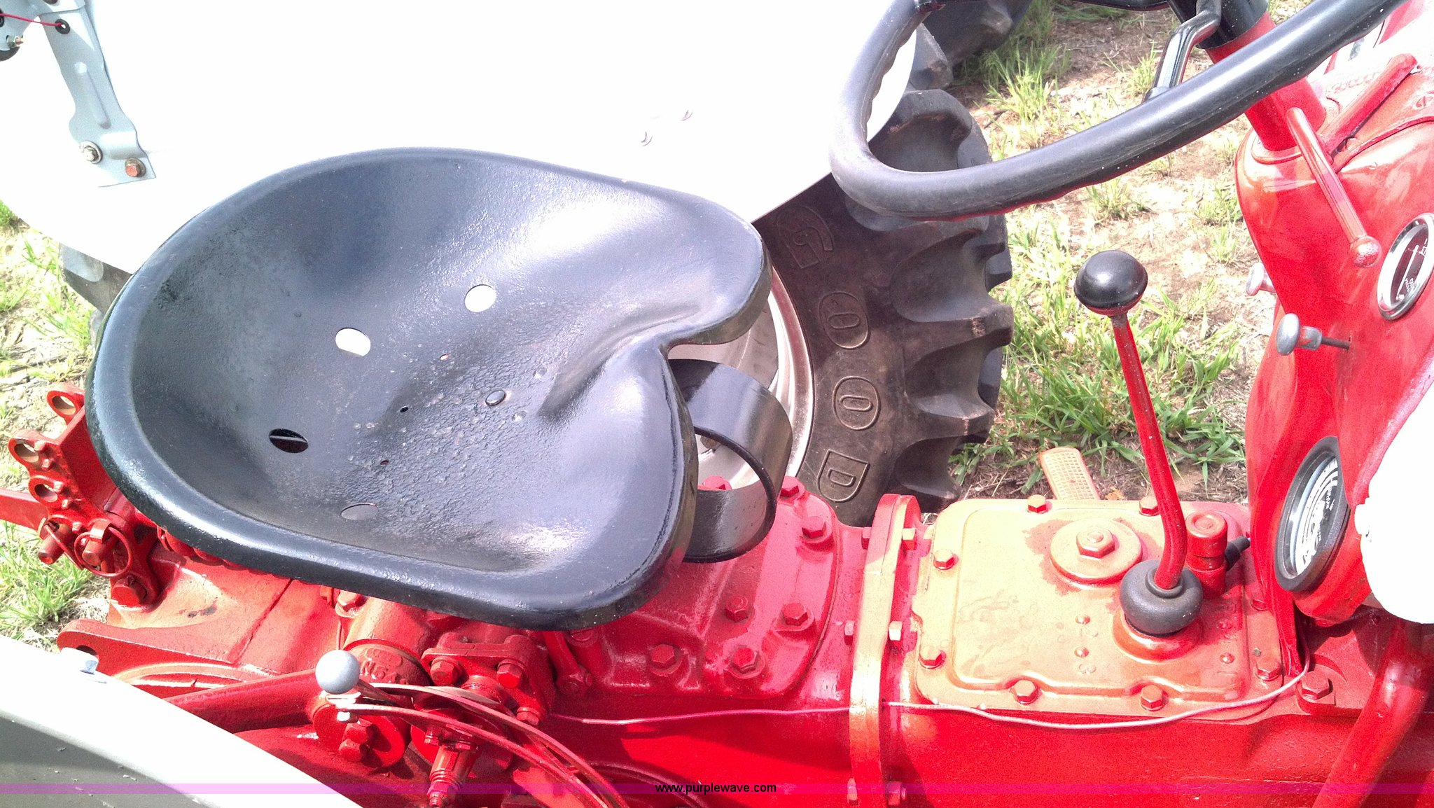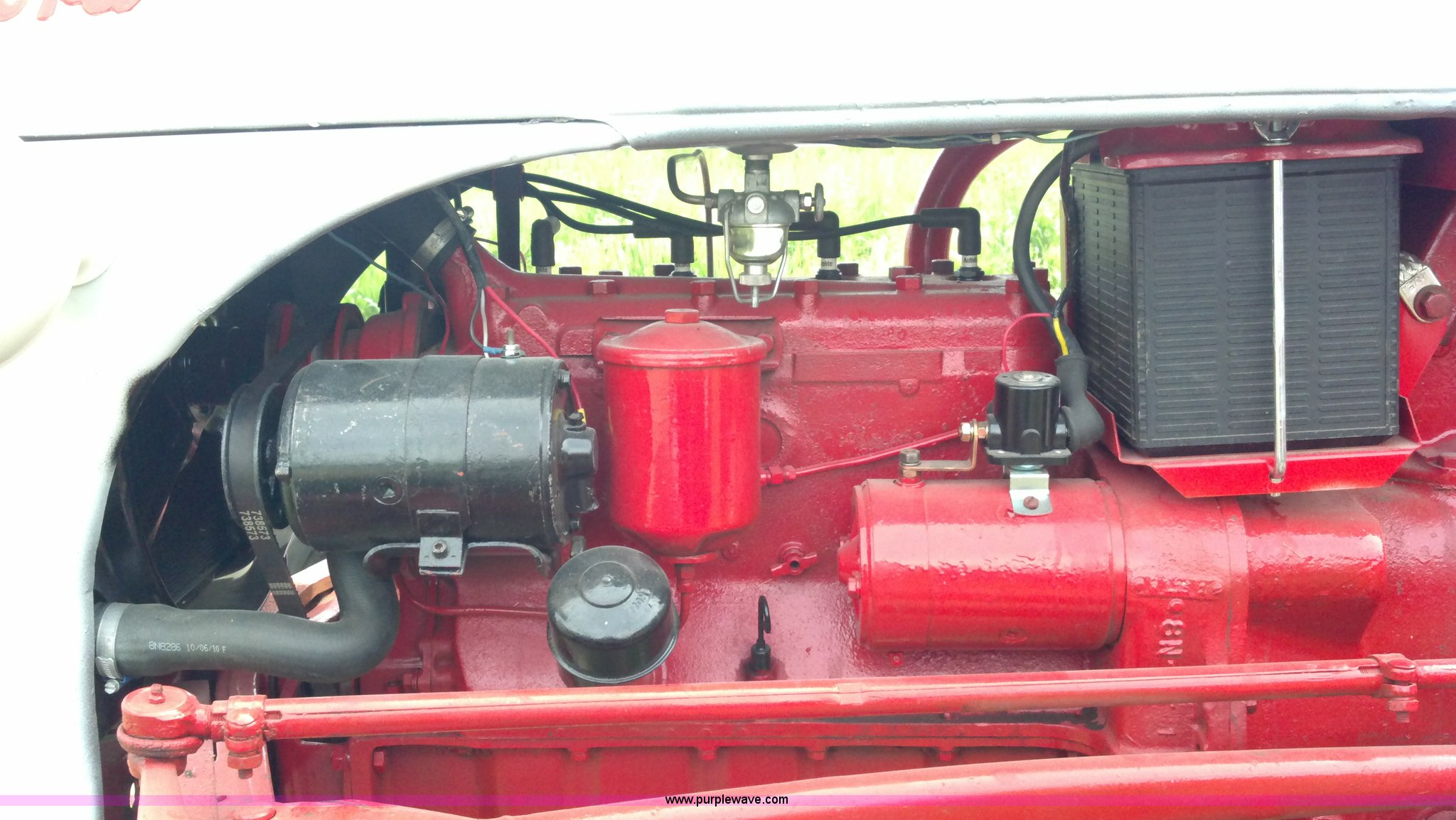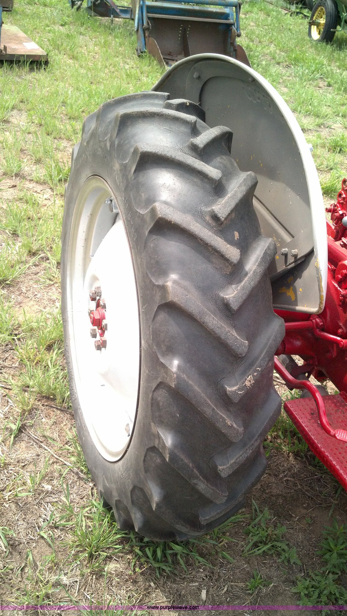 Purple Wave is selling a used Tractor in Kansas. This item is a 1951 Ford 8N tractor with the following: 2 hours on meter, Flathead four cylinder gas engine, Manual transmission, 4F-1R gears, 540 PTO, Three point hitch, Missing top link, Draw bar, Front work lights, Recently replaced 6.00-16 front tires, 11.2-28 rear tires, Recently replaced items, Gauges, Wiring, Battery, Tool box, Battery carrier, Gas tank, Generator, Exhaust, Lights