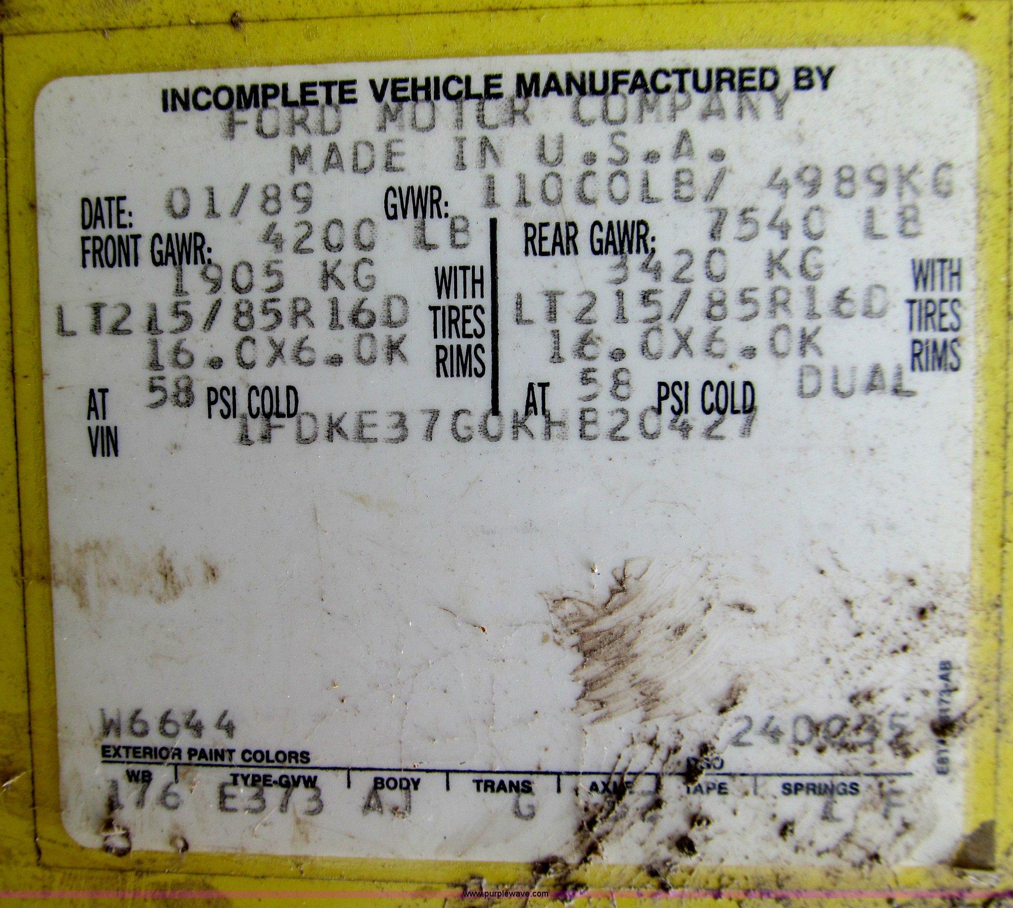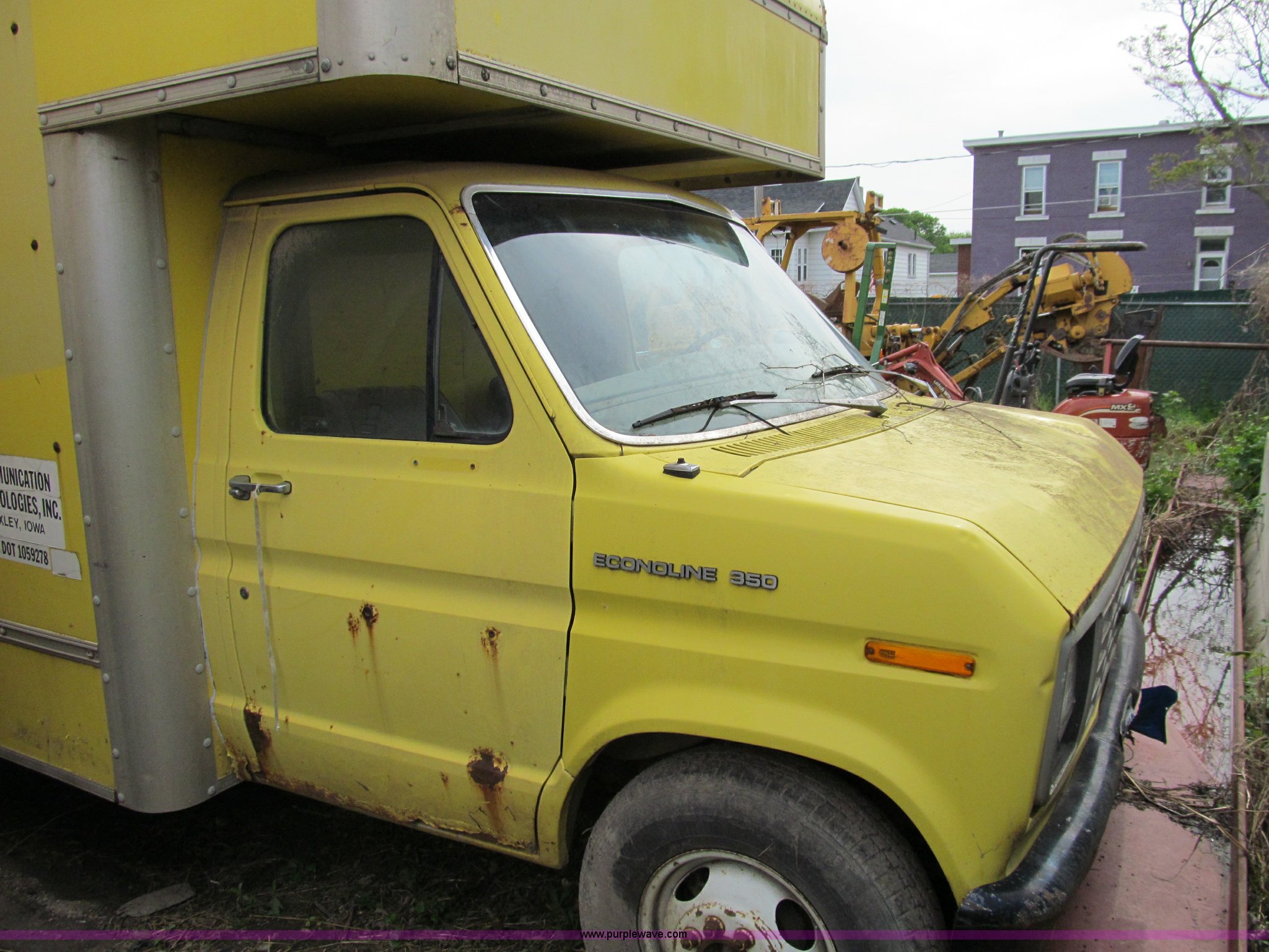 Purple Wave is selling a used Passenger Vehicle in Iowa. This item is a 1989 Ford E350 box truck with the following: 242,372 miles on odometer, 7.5L V8 gas engine, Does not run, Automatic transmission, AC and heat, AM/FM, Manual windows and locks, Vinyl interior, 18' van body with 3.5' overhang, Pintle hitch, Spring suspension, 176" wheelbase, LT215/85R16 tires, Dual rear wheels, No rear view mirror, Does not run, Unit# 316