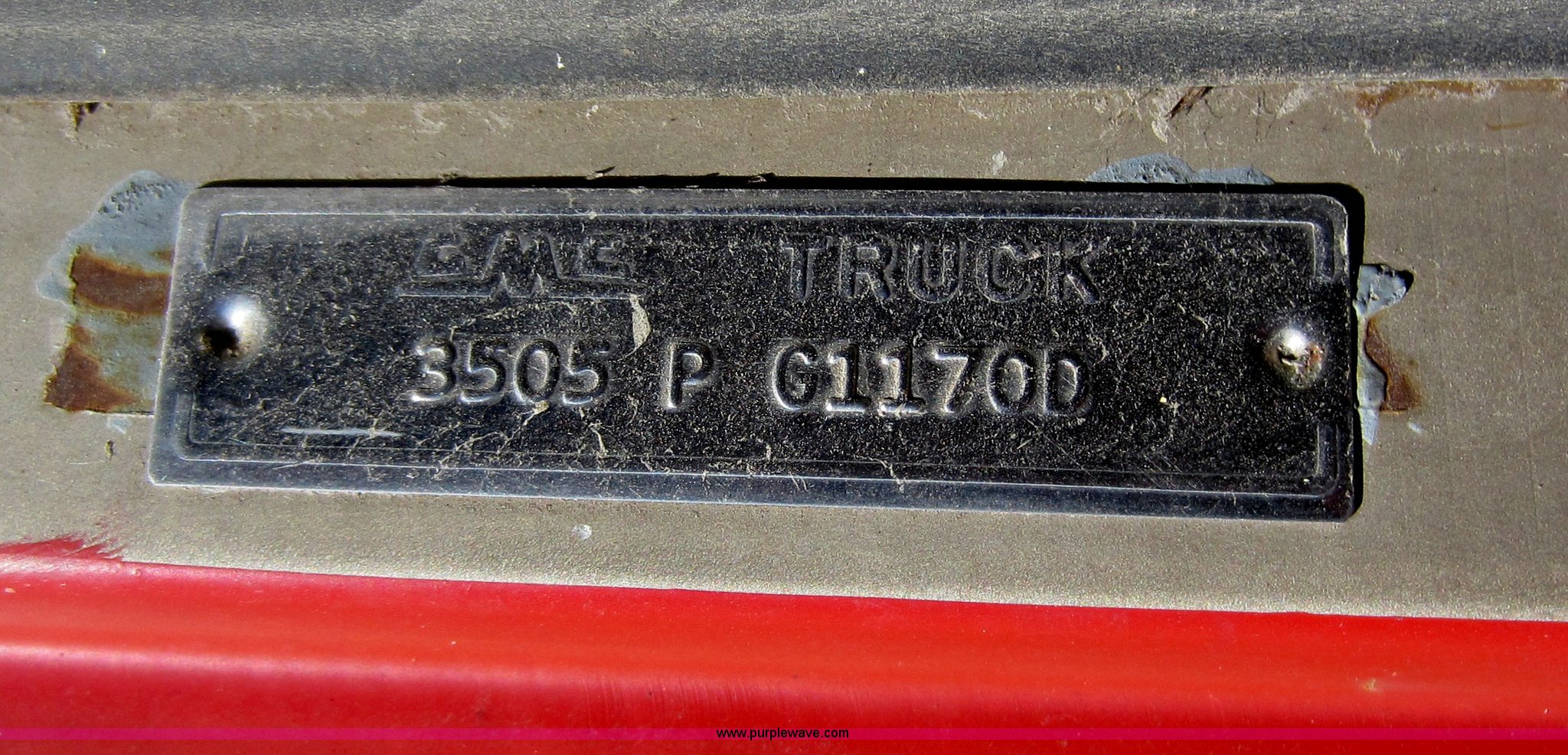 1963 GMC 3505 dump truck. 350 CID gas engine, Four speed transmission, 13' bed, Non operational, Unit# 3-38. PG11700. Shipping quotes available. Beachner Seed, Inc.. 1305 E 12th Street. Lamar, MO 64759