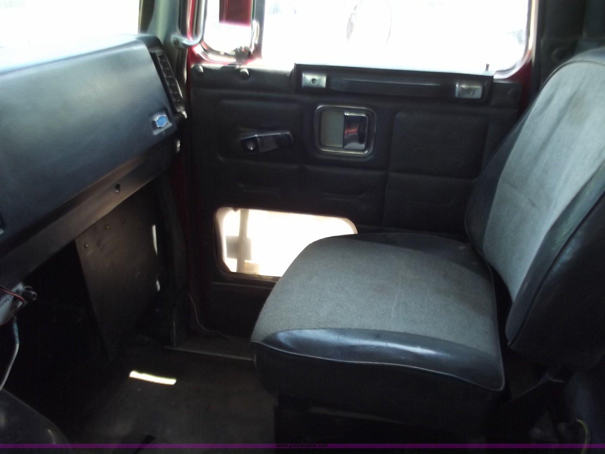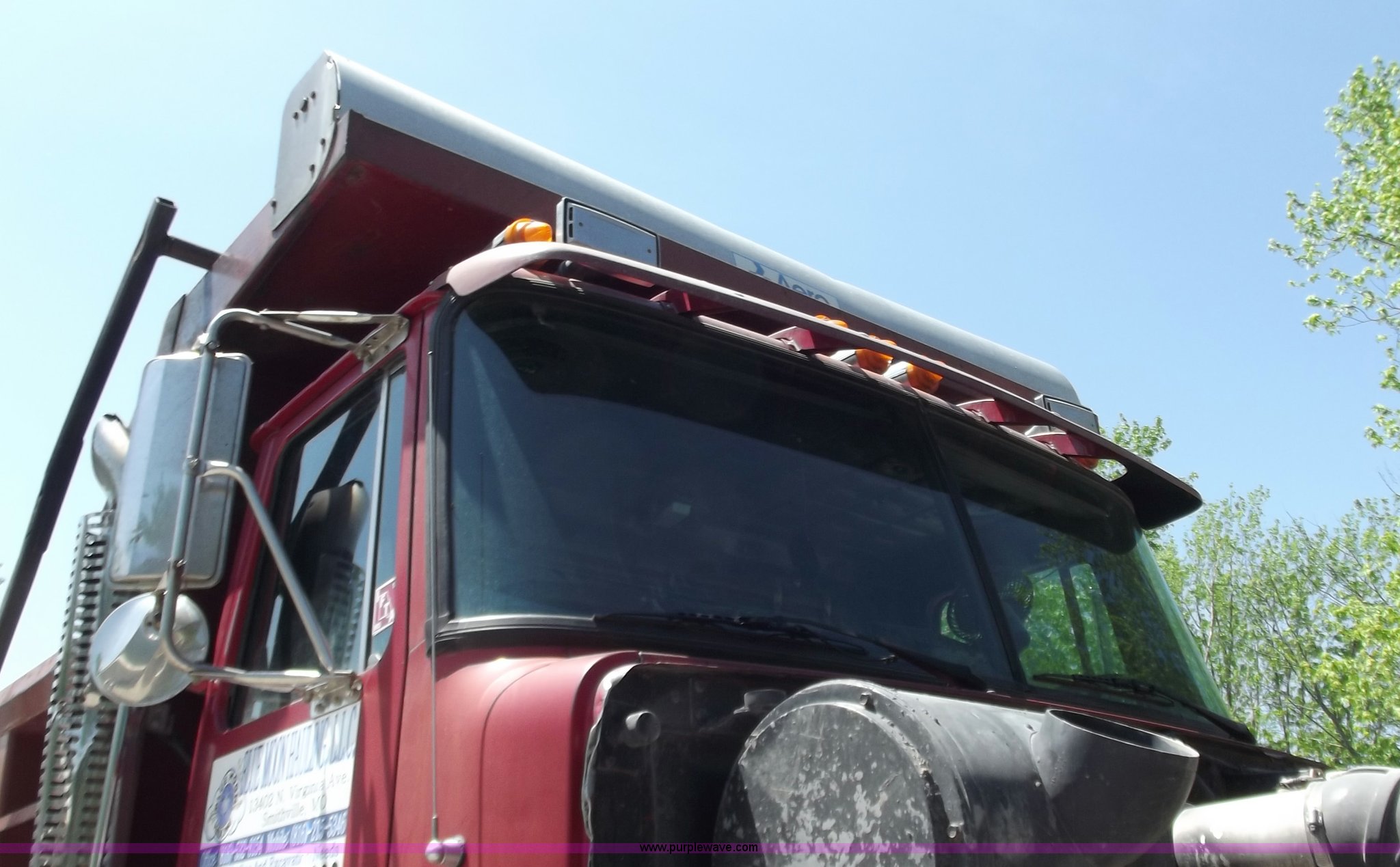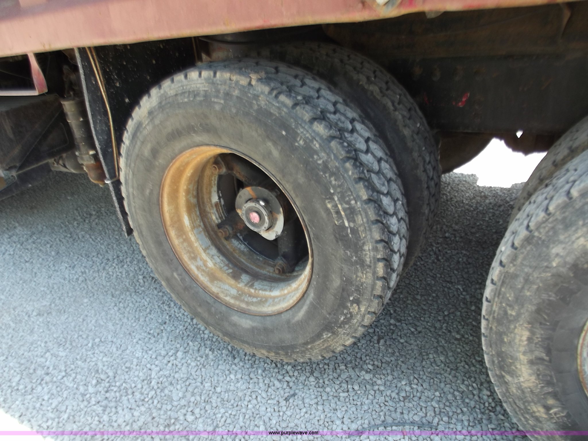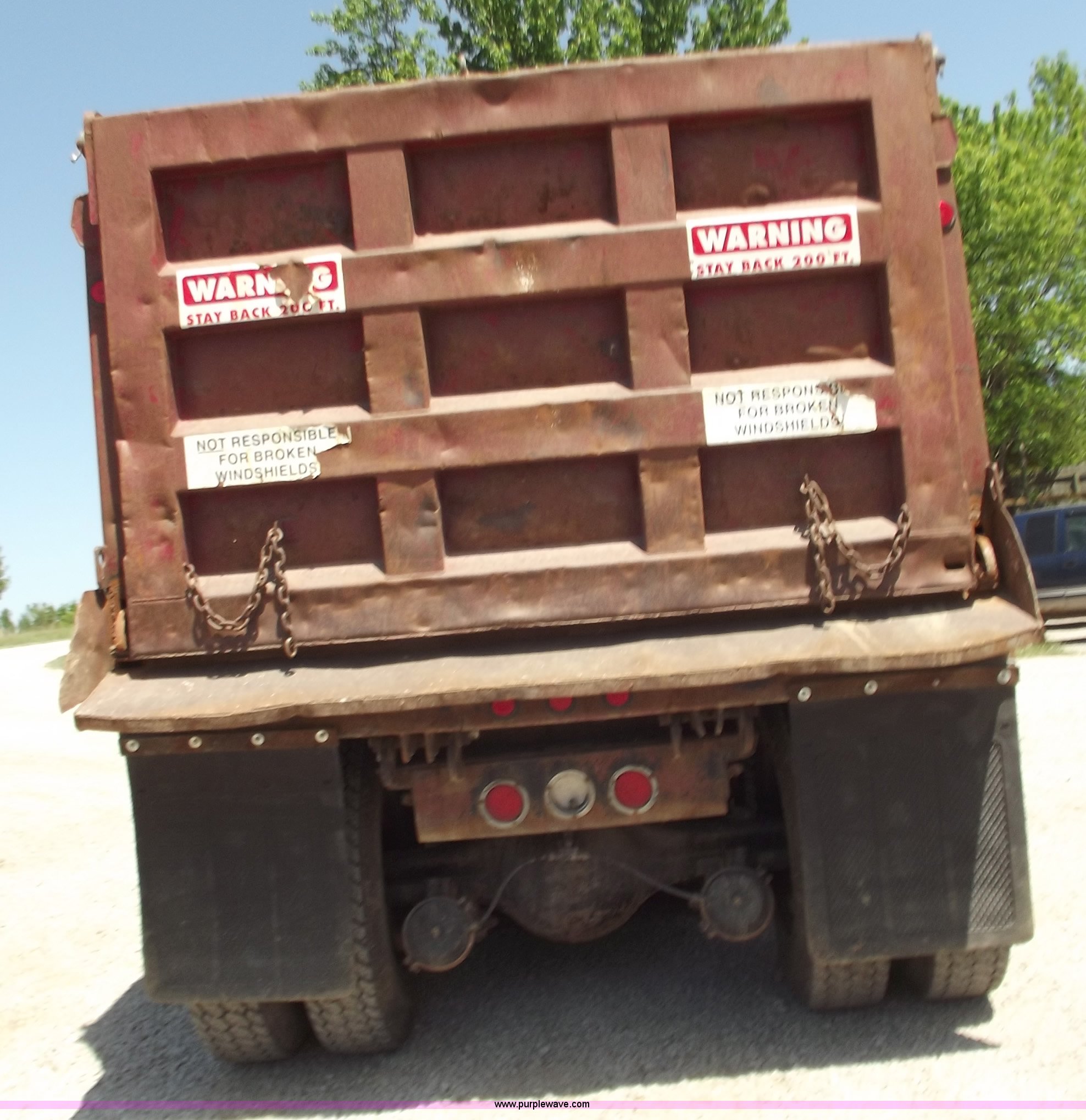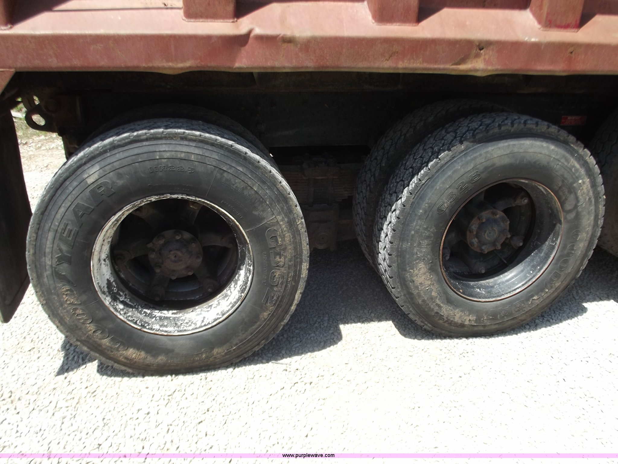 Purple Wave is selling a used Construction Dump Truck in Missouri. This item is a 1989 GMC triple axle dump truck with the following: 50,623 miles on odometer, Twin screw, Caterpillar 3306B turbo diesel engine, Eaton Fuller eight speed with low/low deep reduction, 5.29 gear ratio, AC and heat, AM/FM/Cassette, Air suspension seat, Passenger daylight door, Exterior visor, Chrome bumper, Block heater, Electric roll over tarp, Air end gate, 100 gallon fuel tank, Spring suspension, Bindey air dryer, 16' RS Body dump bed, Serial 160096460, PTO, Air brakes, 154" wheelbase, 425/65R22.5 front super single tires, 295/75R22.5 mid tires, 11R22.5 rear tires, 12 Recently replaced matching tires in Fall 2011