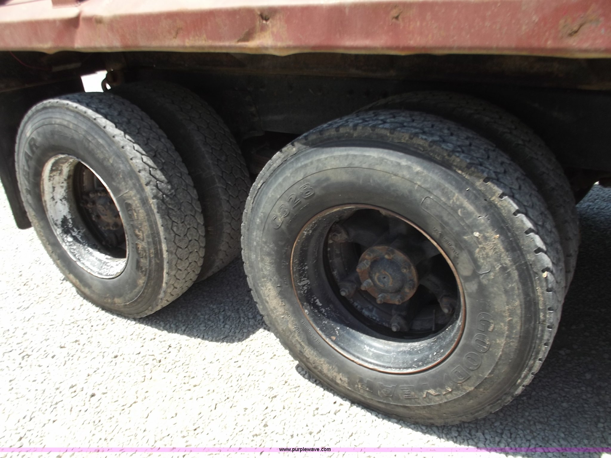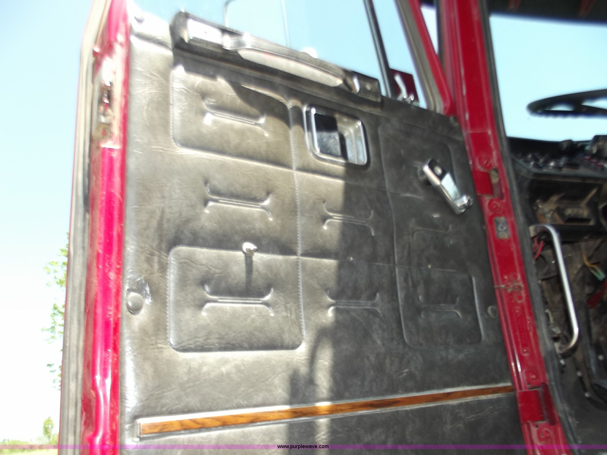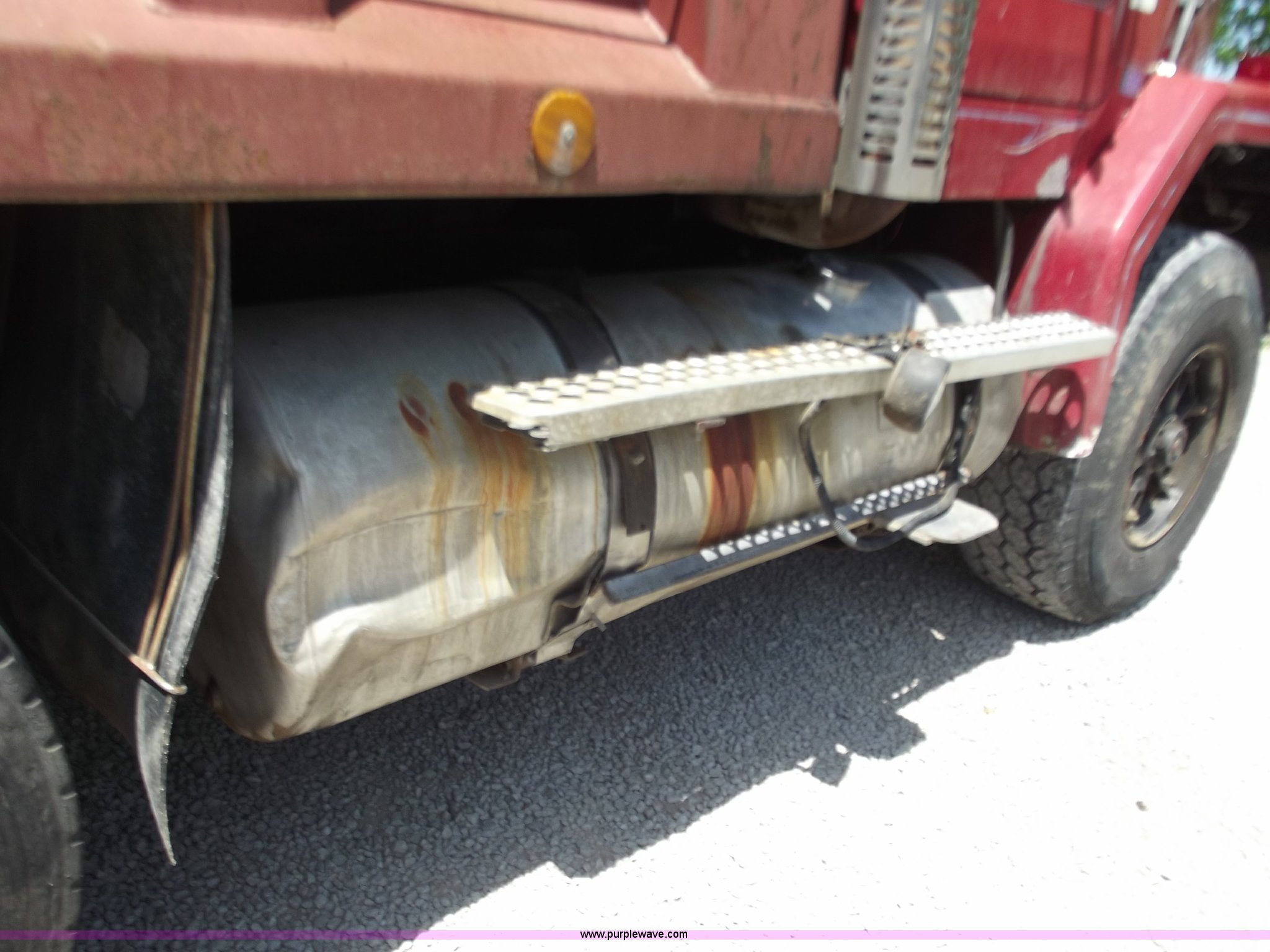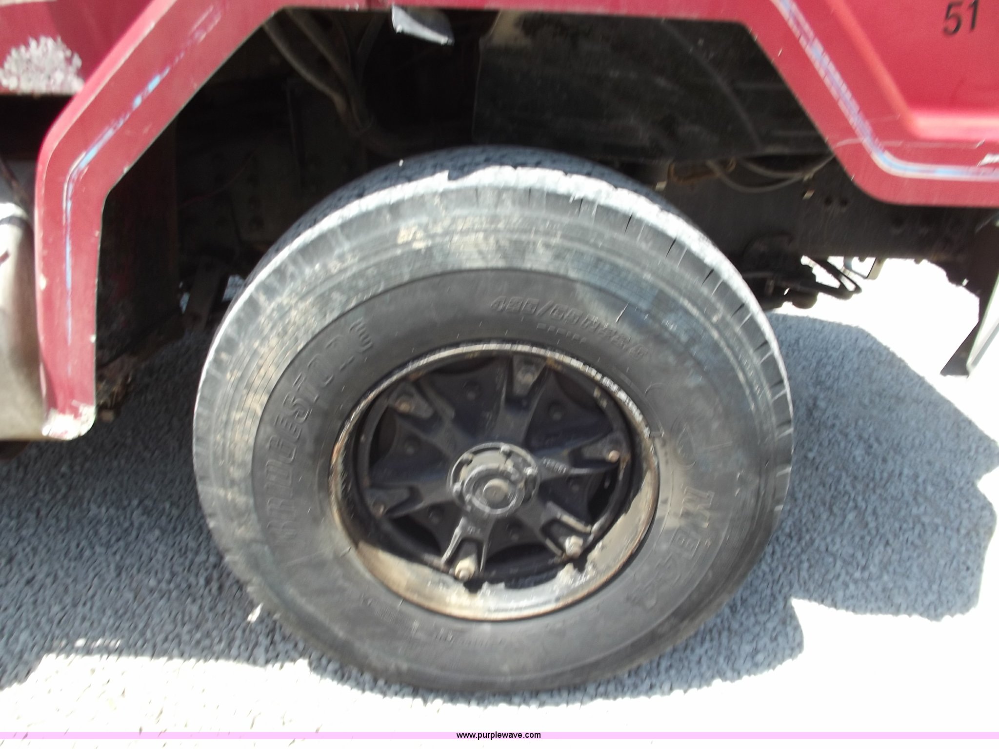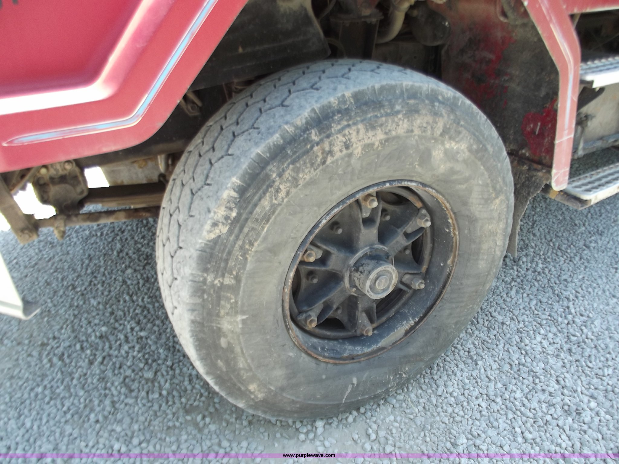 Purple Wave is selling a used Construction Dump Truck in Missouri. This item is a 1989 GMC triple axle dump truck with the following: 50,623 miles on odometer, Twin screw, Caterpillar 3306B turbo diesel engine, Eaton Fuller eight speed with low/low deep reduction, 5.29 gear ratio, AC and heat, AM/FM/Cassette, Air suspension seat, Passenger daylight door, Exterior visor, Chrome bumper, Block heater, Electric roll over tarp, Air end gate, 100 gallon fuel tank, Spring suspension, Bindey air dryer, 16' RS Body dump bed, Serial 160096460, PTO, Air brakes, 154" wheelbase, 425/65R22.5 front super single tires, 295/75R22.5 mid tires, 11R22.5 rear tires, 12 Recently replaced matching tires in Fall 2011