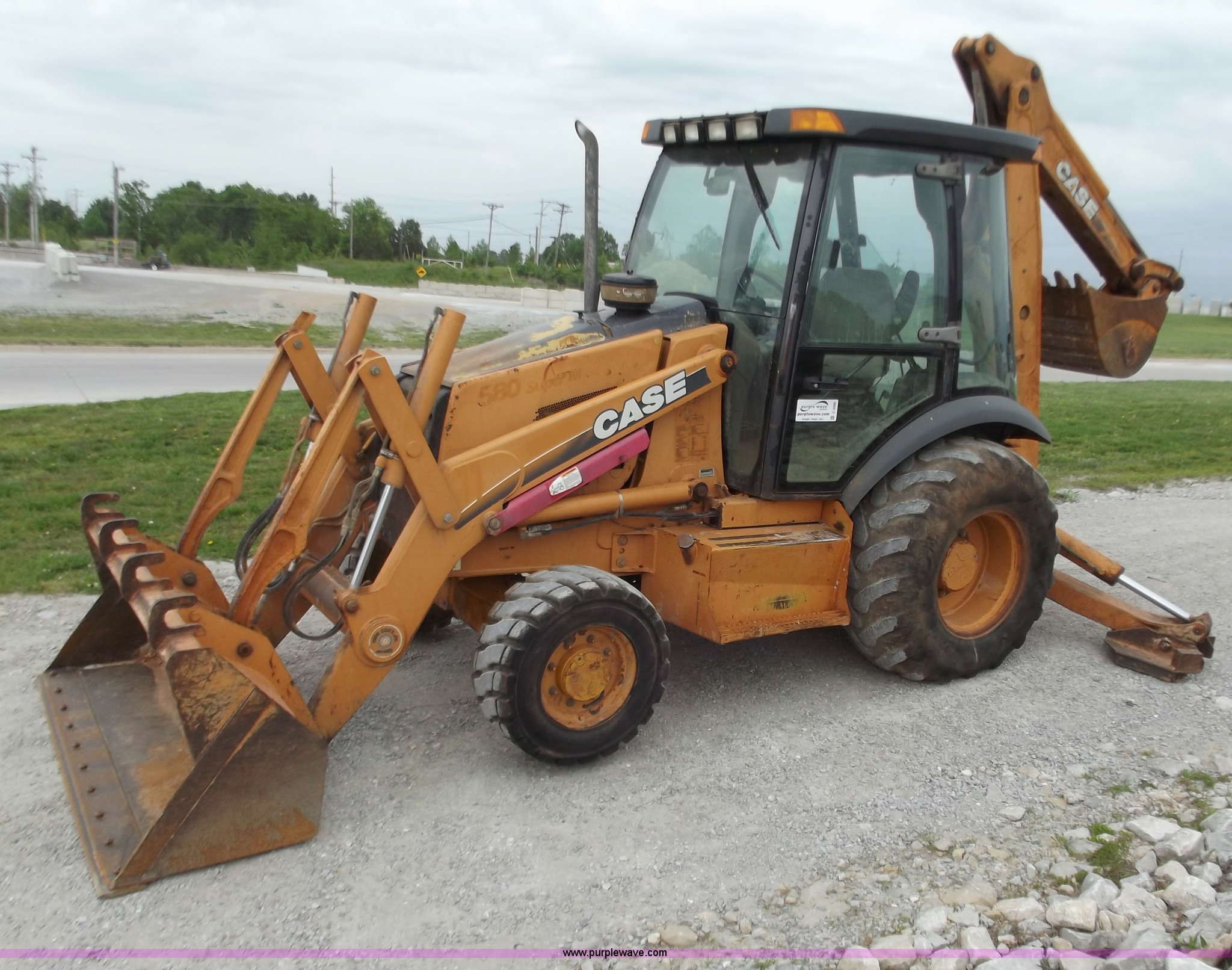 Purple Wave is selling a used Tractor Loader Backhoe in Missouri. This item is a 2001 Case 580 Super M backhoe with the following: 6,568 hours on meter, Cummins four cylinder diesel engine, Four speed shuttle shift transmission, Four wheel drive, AC and heat, 24" backhoe bucket, 82"W loader bucket, Bolt-on cutting edge, 12x16.5 front tires, 19.5x24 rear tires, Serial JJG0279998, Unit# 45-649