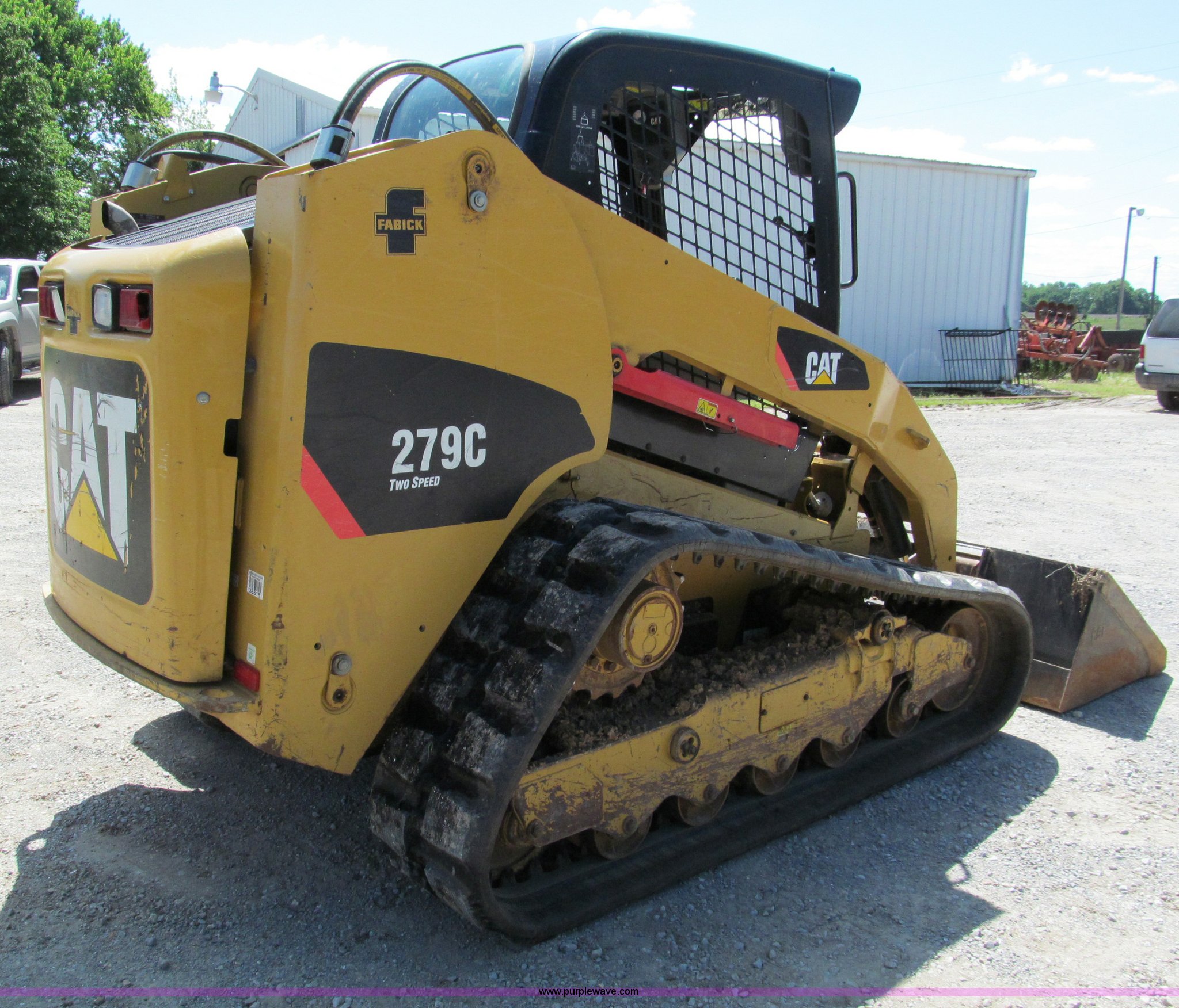 Purple Wave is selling a used Tracked Skid Steer Loader in Missouri. This item is a 2008 Caterpillar 279C track skid steer with the following: 1,335 hours on meter, Caterpillar 3.4L four cylinder turbo diesel engine, 84 HP, Recent oil service, Two speed transmission, 80" toothed bucket, Serial 65SSGP024072, Spring ride seat, Hand controls, Auxiliary hydraulics, Recently replaced 18"W tracks, 9,800 lbs. base operating weight, Serial CAT0279CHMBI00379