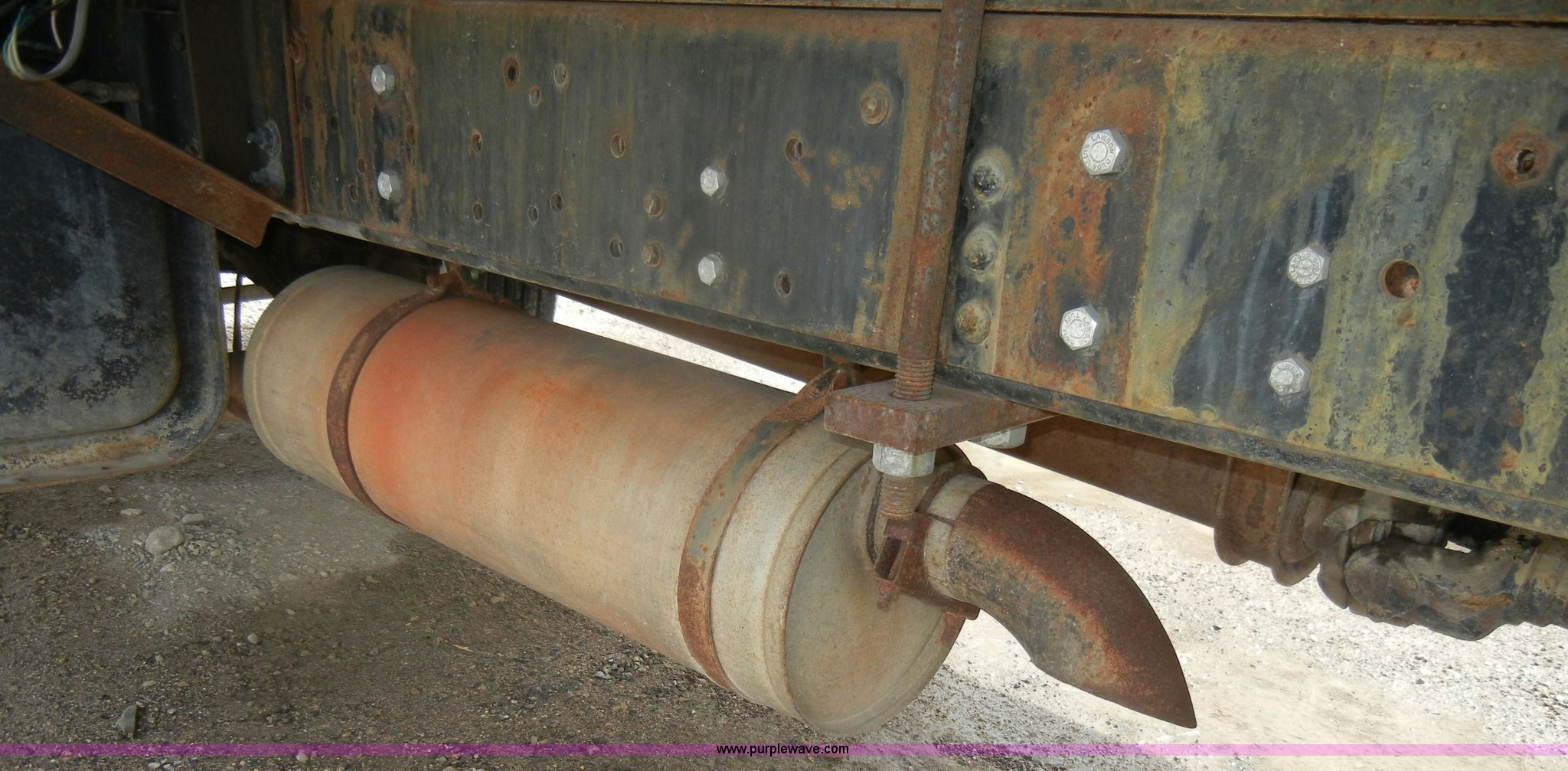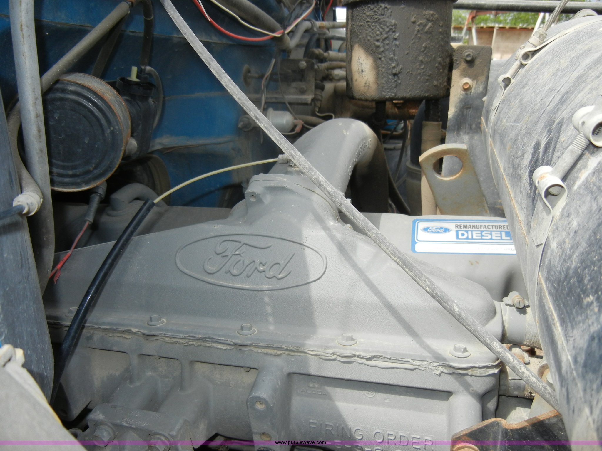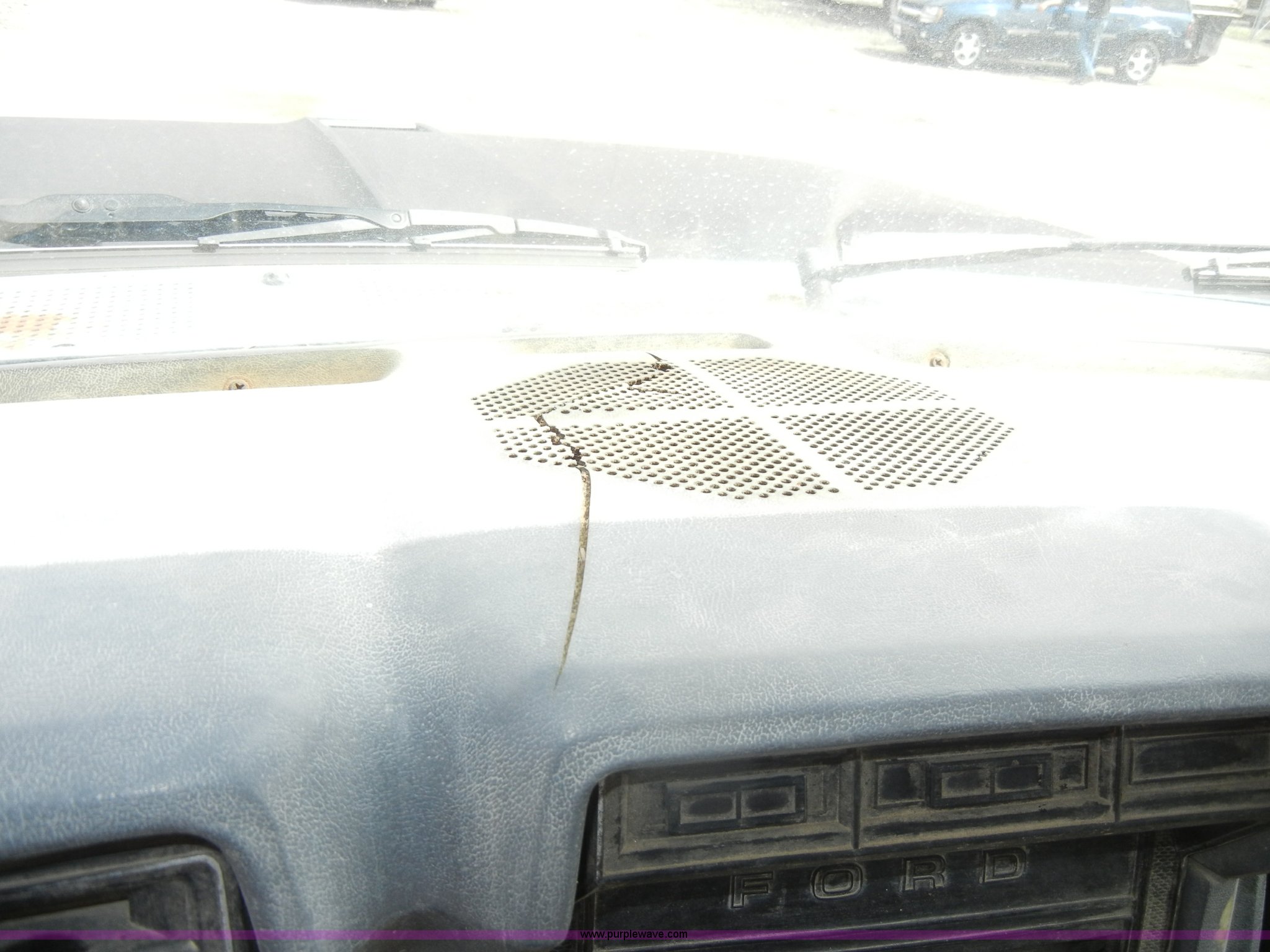 Purple Wave is selling a used Flat Bed Truck in Kansas. This item is a 1987 Ford F700 flatbed truck with the following: 189,228 miles on odometer, Ford 7.8L six cylinder turbo diesel engine, Five speed manual transmission, Heat, AM/FM, Manual windows and locks, Vinyl interior, 14'L x 8'W flatbed, Wood/metal flooring, Flooring needs replaced, Trailer wiring, Block heater, Air brakes, 35 gallon fuel tank, 10.00R20 tires, Dual rear tires, Interior/exterior cosmetic damage, Damage to hood, Cracked windshield, Cracked dash, No passenger side window crank, Unit# 52-135