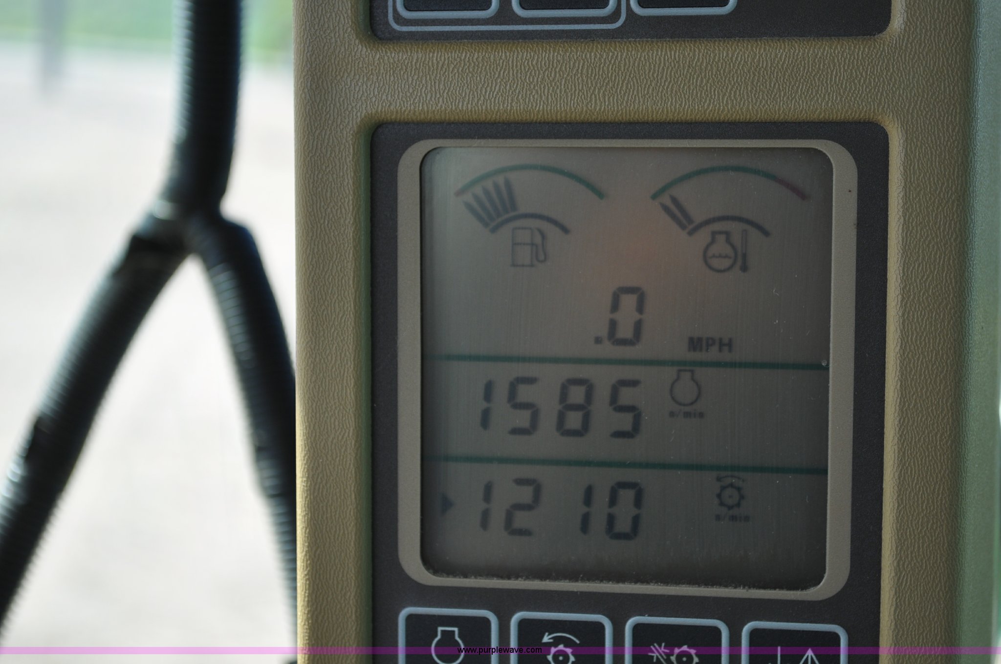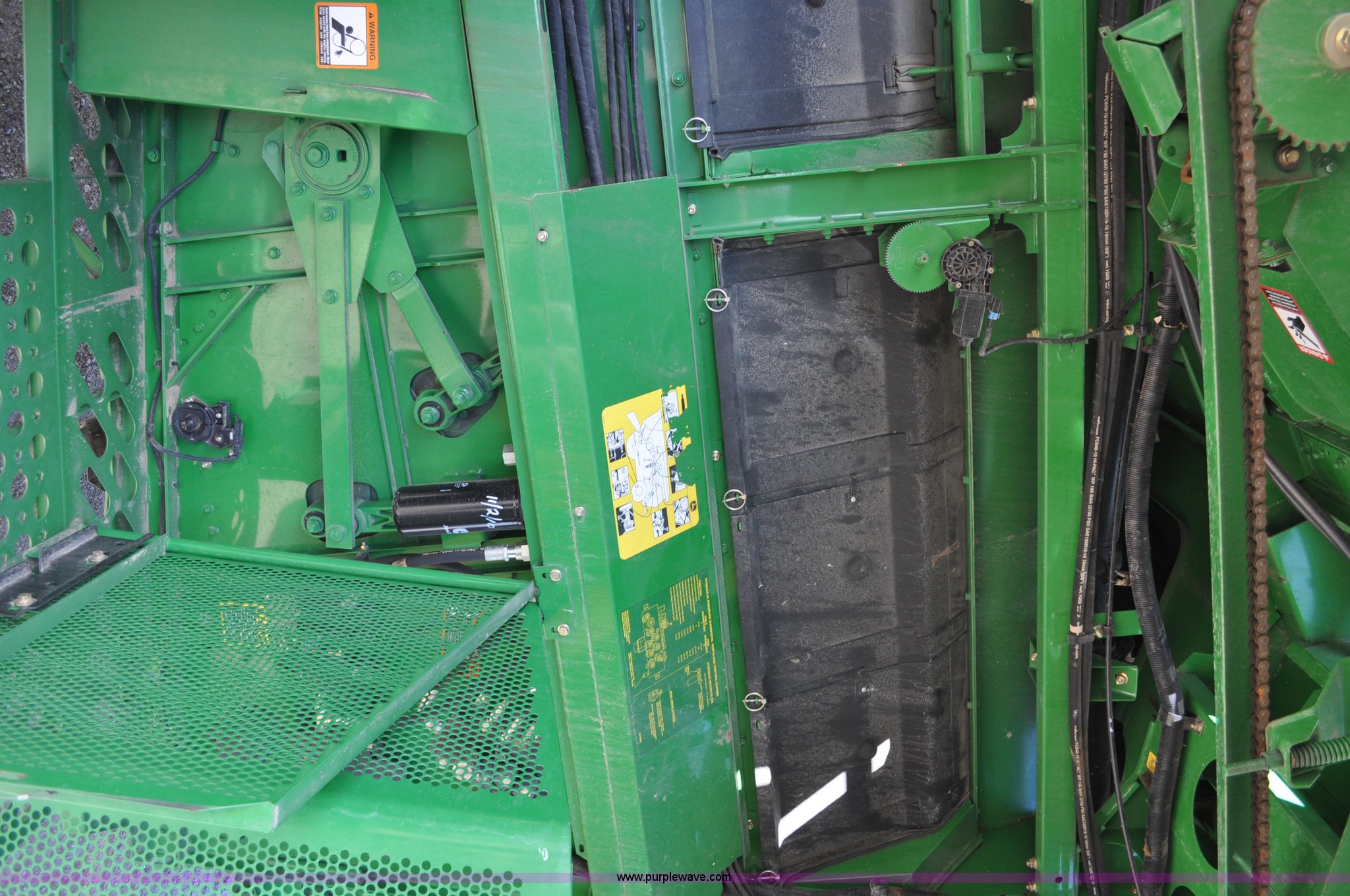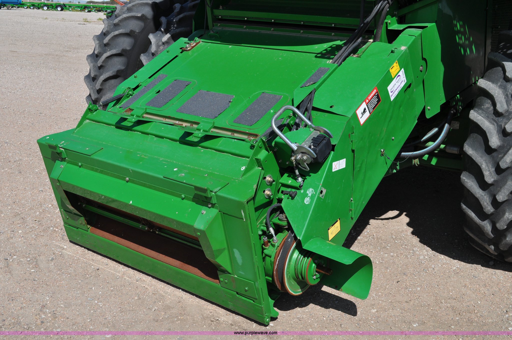 Purple Wave is selling a used Combine in Nebraska. This item is a 2006 John Deere 9660 STS combine with the following: 1,585 engine hours on meter, 1,210 separator hours on meter, John Deere 6090HH six cylinder diesel engine, 305 HP, Serial RG6090L005492, Three speed hydrostatic transmission, AC and heat, AM/FM, Air ride seat, Instructor's seat, Tilt wheel, Work lights, Straw spreader, Quick tach header coupler, 250 bushel bin, Greenstar, Operators manual, 250 gallon fuel tank, 520/85R38 front tires, duals, 18.4R26 rear tires, 29,410 lbs. base operating weight, Serial H09660S716182, 21st# C000460