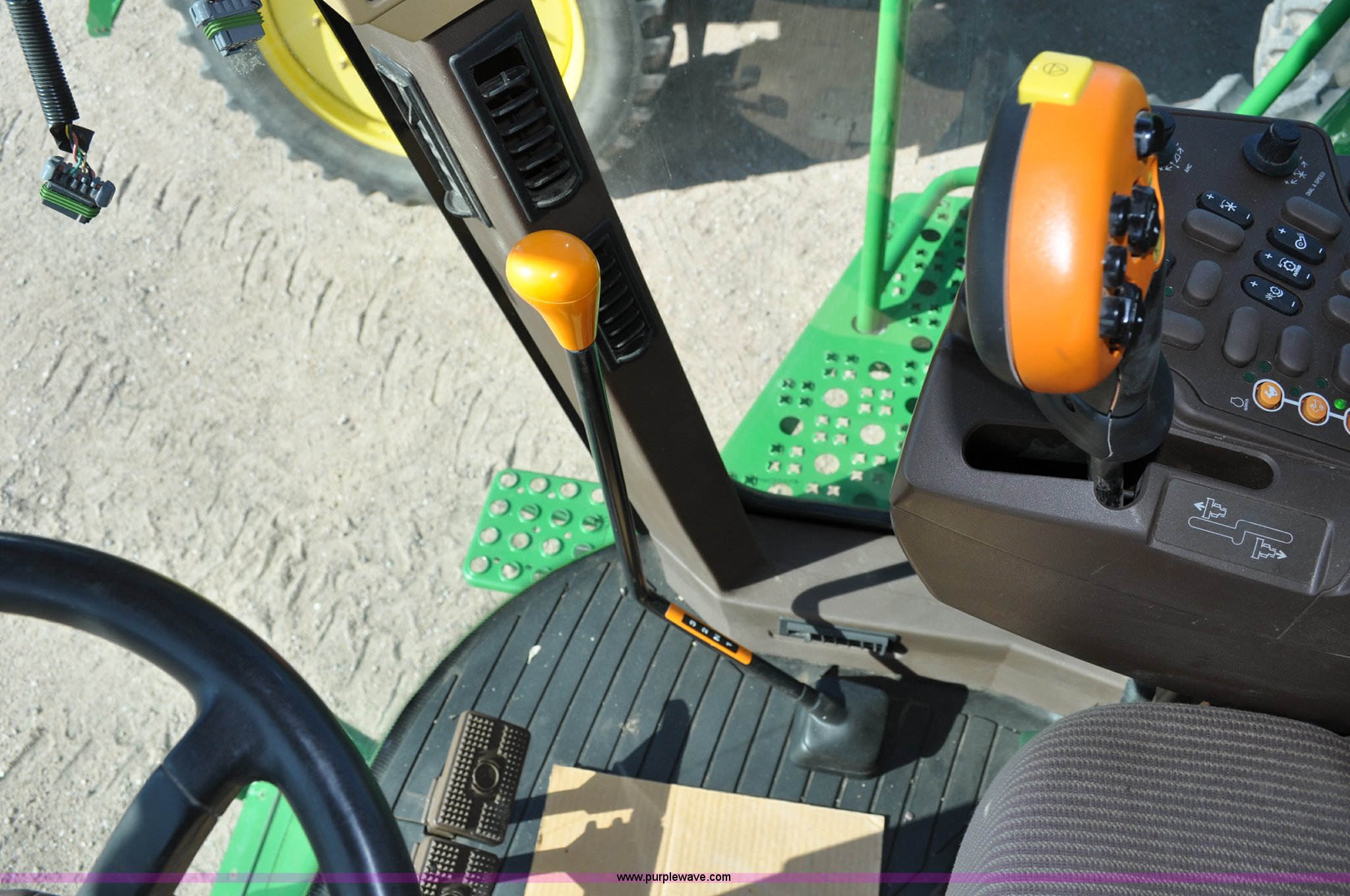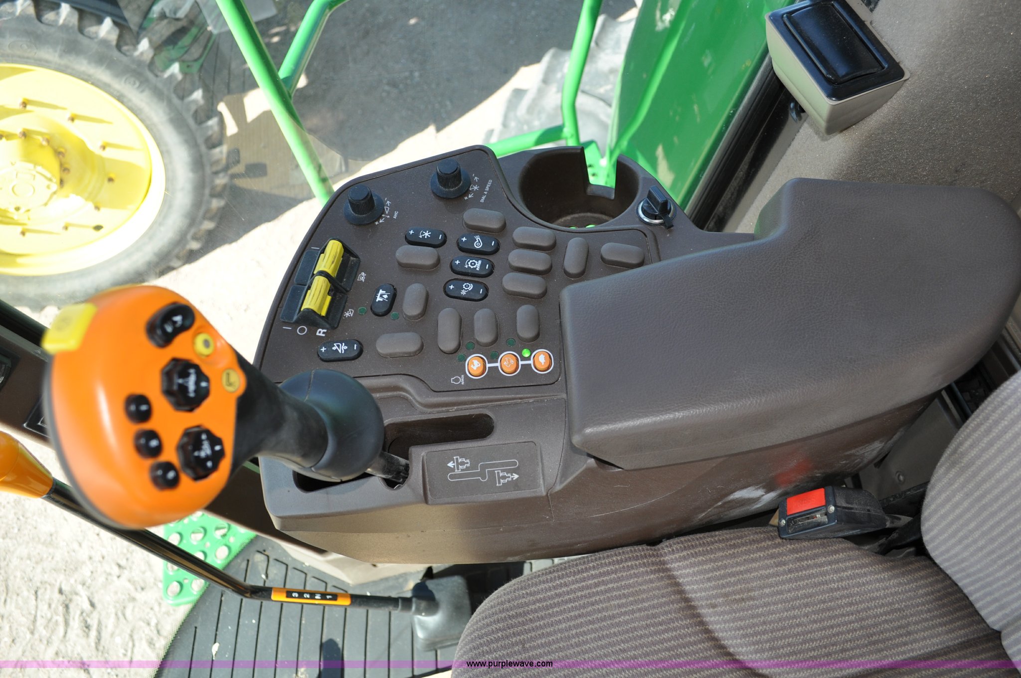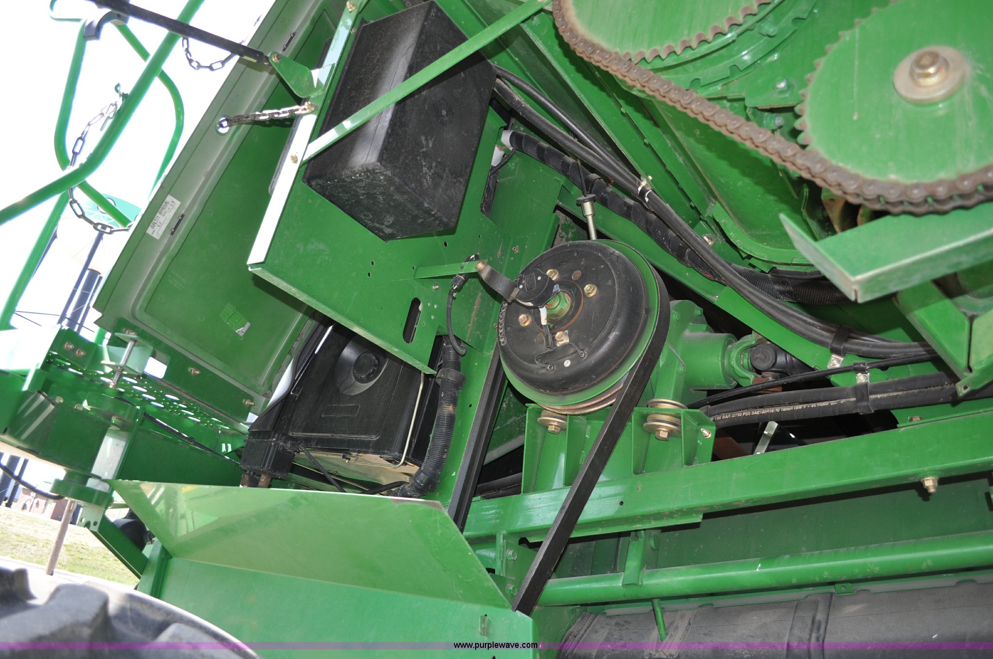 Purple Wave is selling a used Combine in Nebraska. This item is a 2006 John Deere 9660 STS combine with the following: 1,585 engine hours on meter, 1,210 separator hours on meter, John Deere 6090HH six cylinder diesel engine, 305 HP, Serial RG6090L005492, Three speed hydrostatic transmission, AC and heat, AM/FM, Air ride seat, Instructor's seat, Tilt wheel, Work lights, Straw spreader, Quick tach header coupler, 250 bushel bin, Greenstar, Operators manual, 250 gallon fuel tank, 520/85R38 front tires, duals, 18.4R26 rear tires, 29,410 lbs. base operating weight, Serial H09660S716182, 21st# C000460