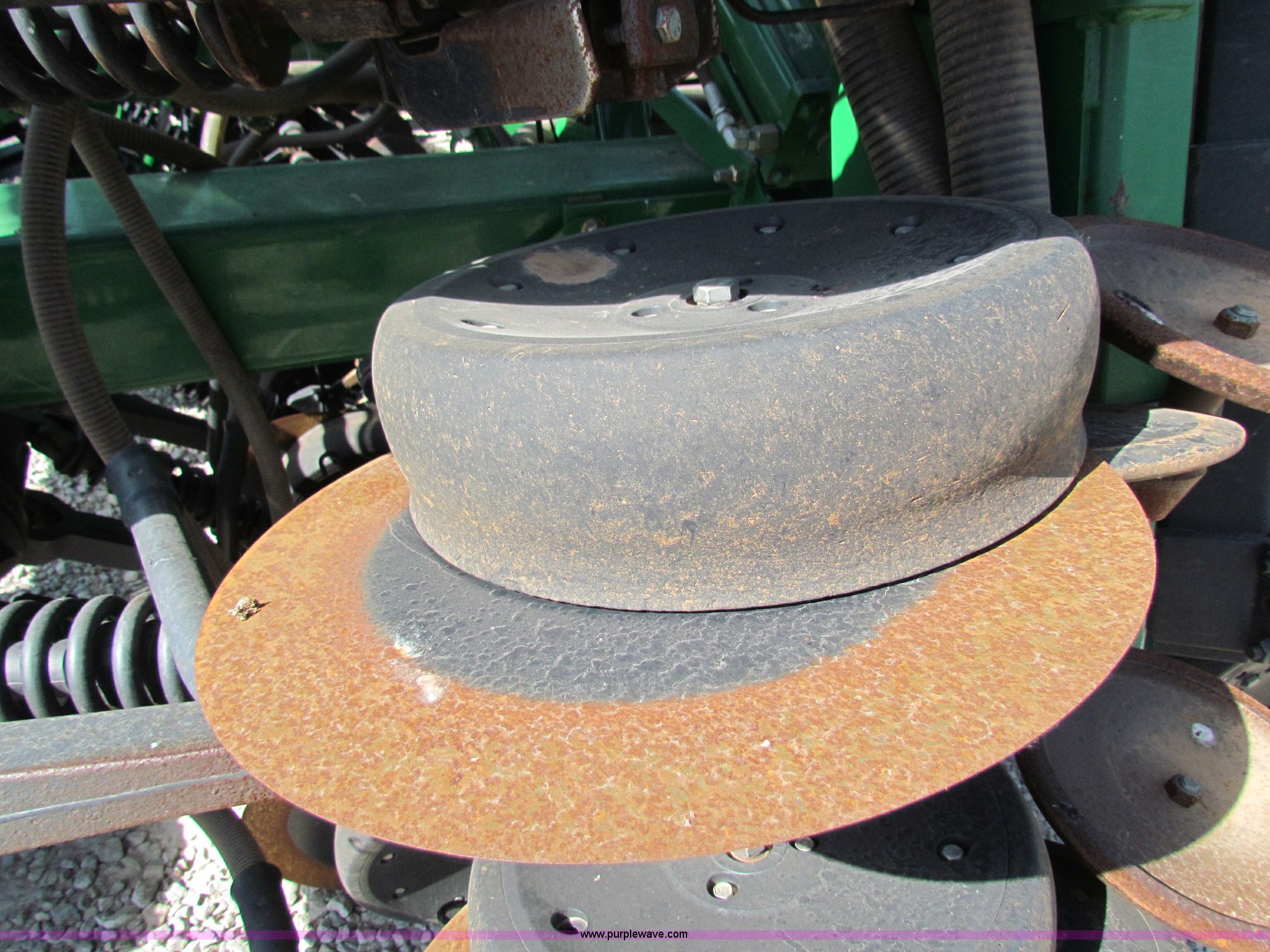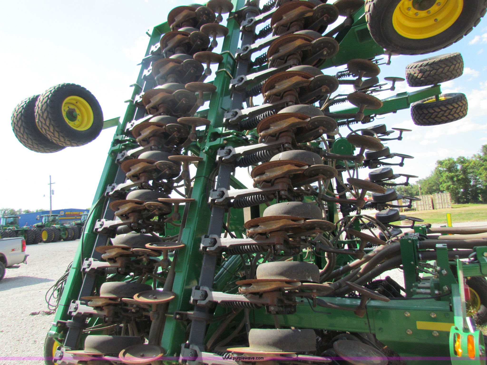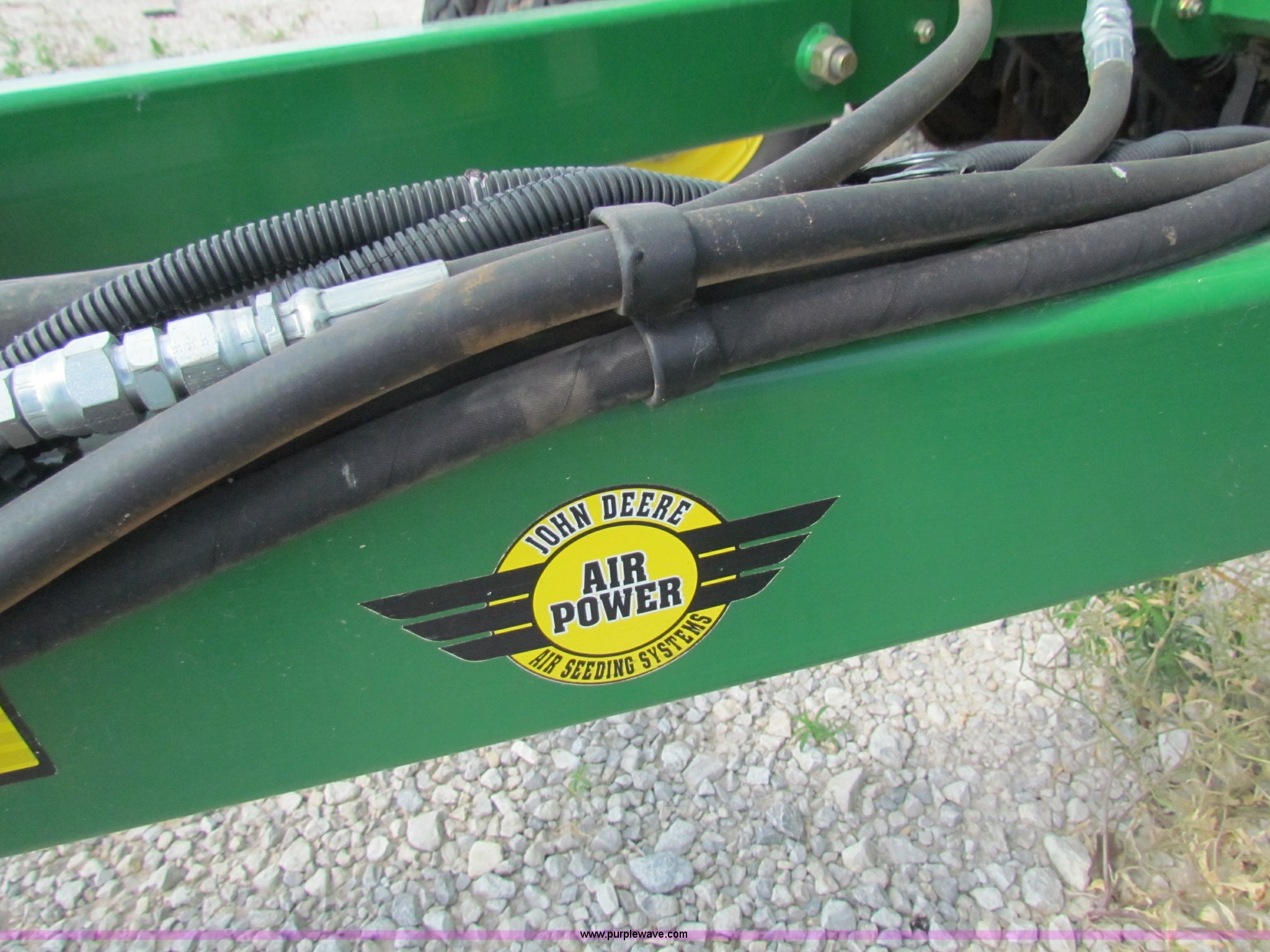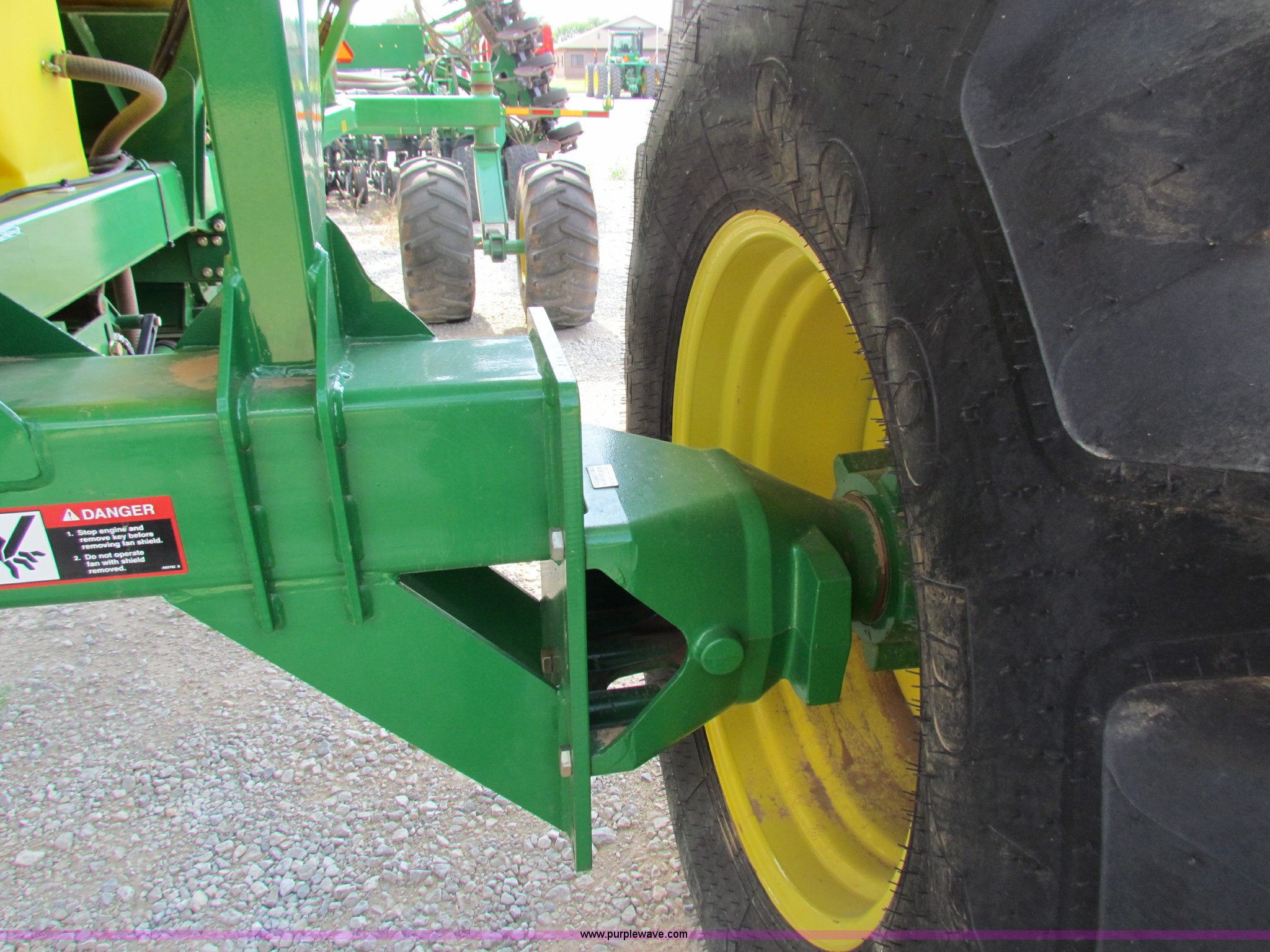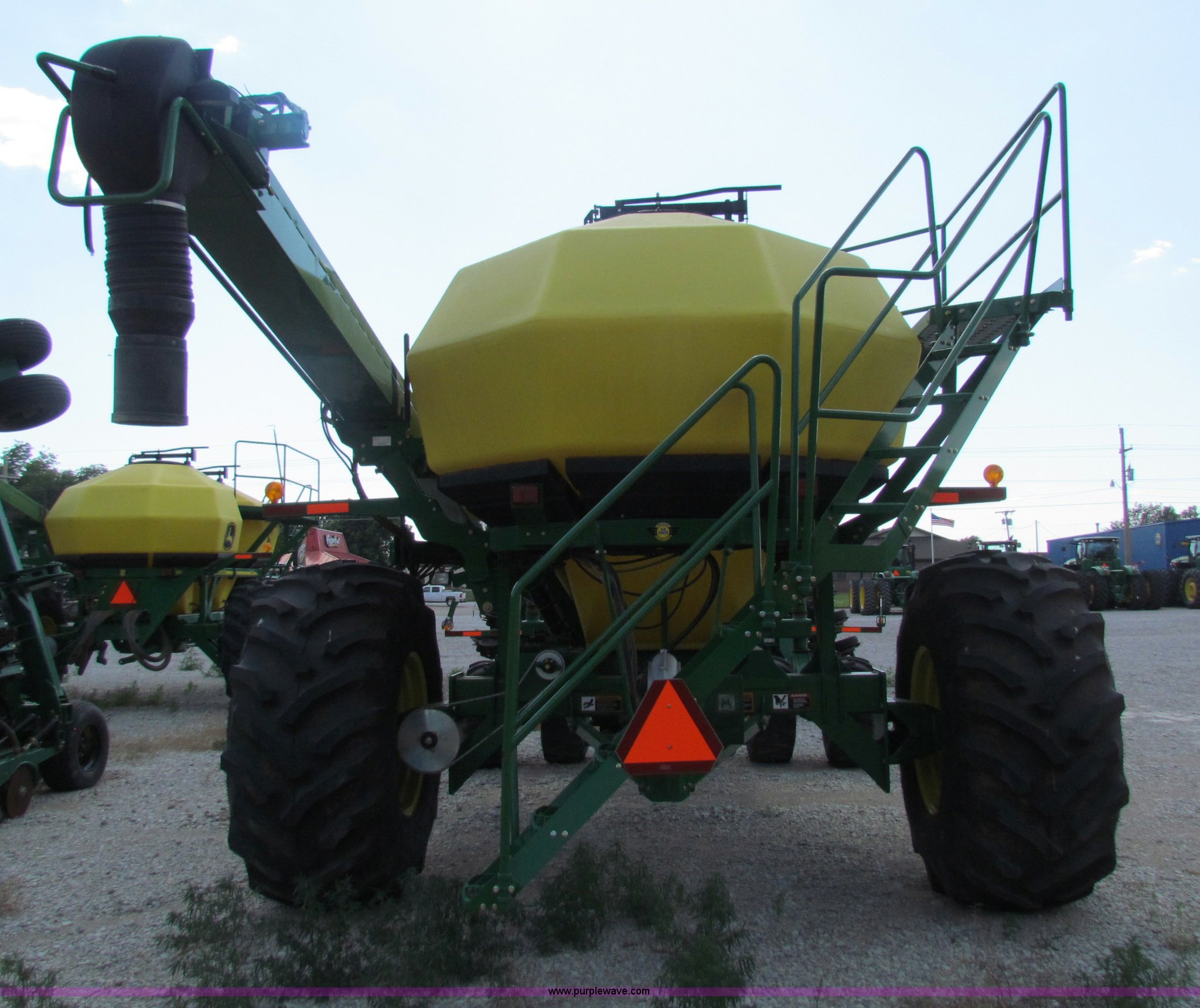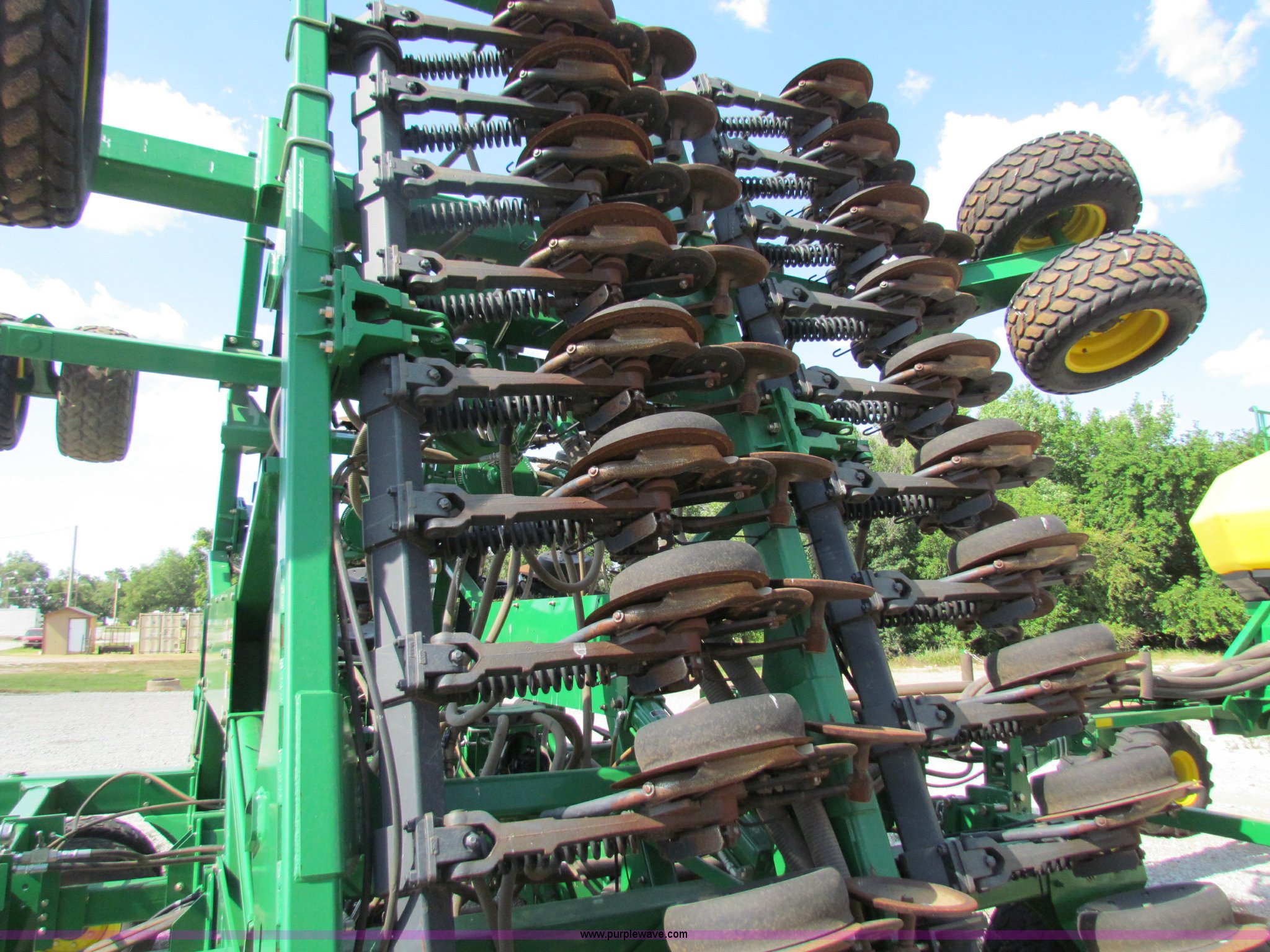 Purple Wave is selling a used Air Seeder in Kansas. This item is a 2008 John Deere 1890 drill with 2008 John Deere 1910 Air Cart with the following: 40', 7.5" spacing, Dual row spacing capable, 7.5"/15"/30",, Primary blockage, 2008 air cart 1910, 430 bushel tow behind, (3) tank variable rate, Conveyor auger, Single shoot eight runs, Walking duals on front, 30.5-32 tires on rear, Stored inside, Recently replaced closing wheel bushings, blades, some gauge wheel rubbers, and some bearings, $8,900 of parts installed in November 2010, Stock# 67447, 67534