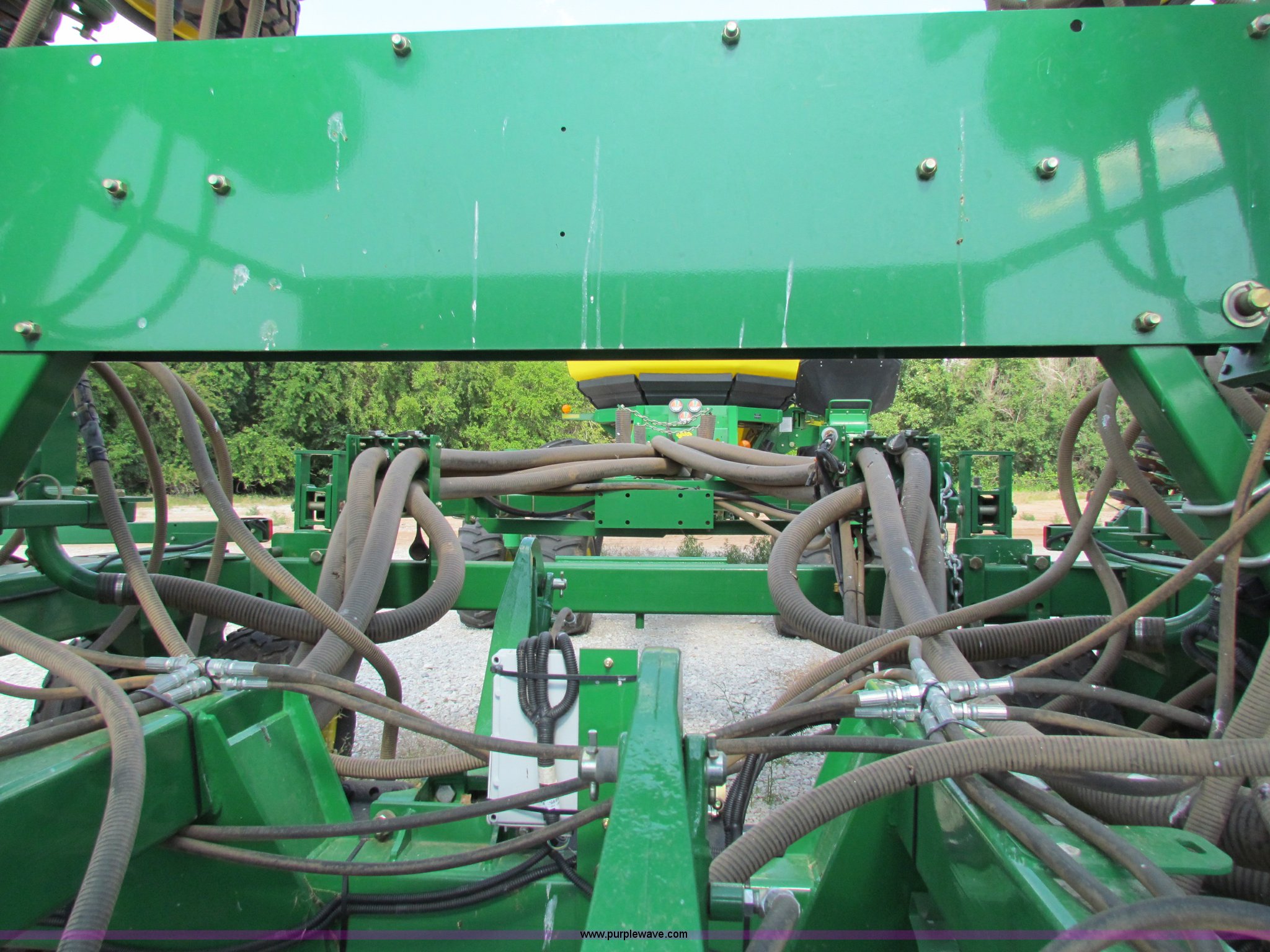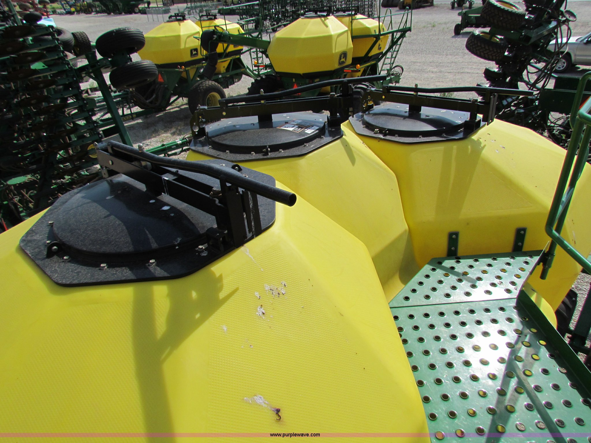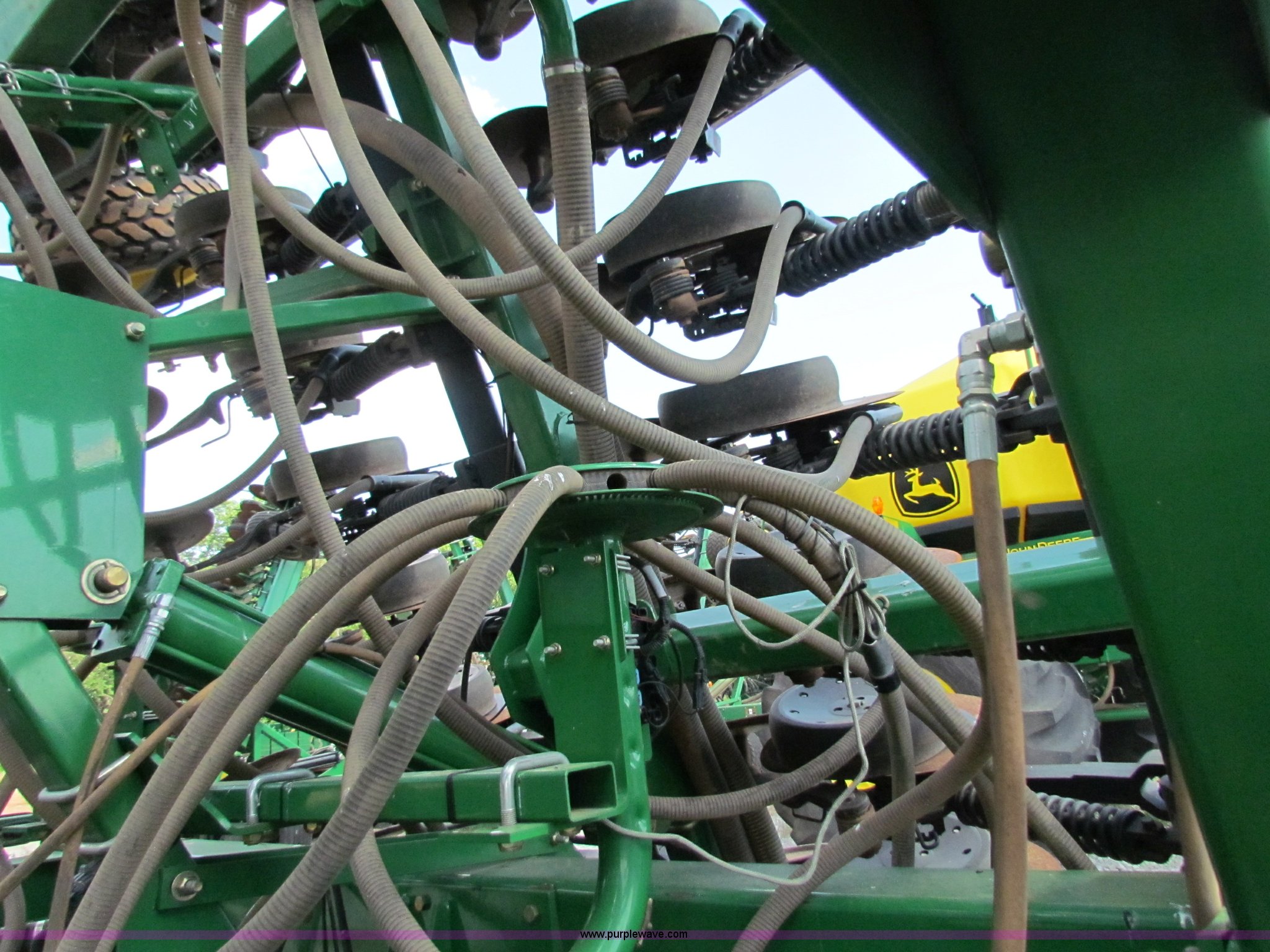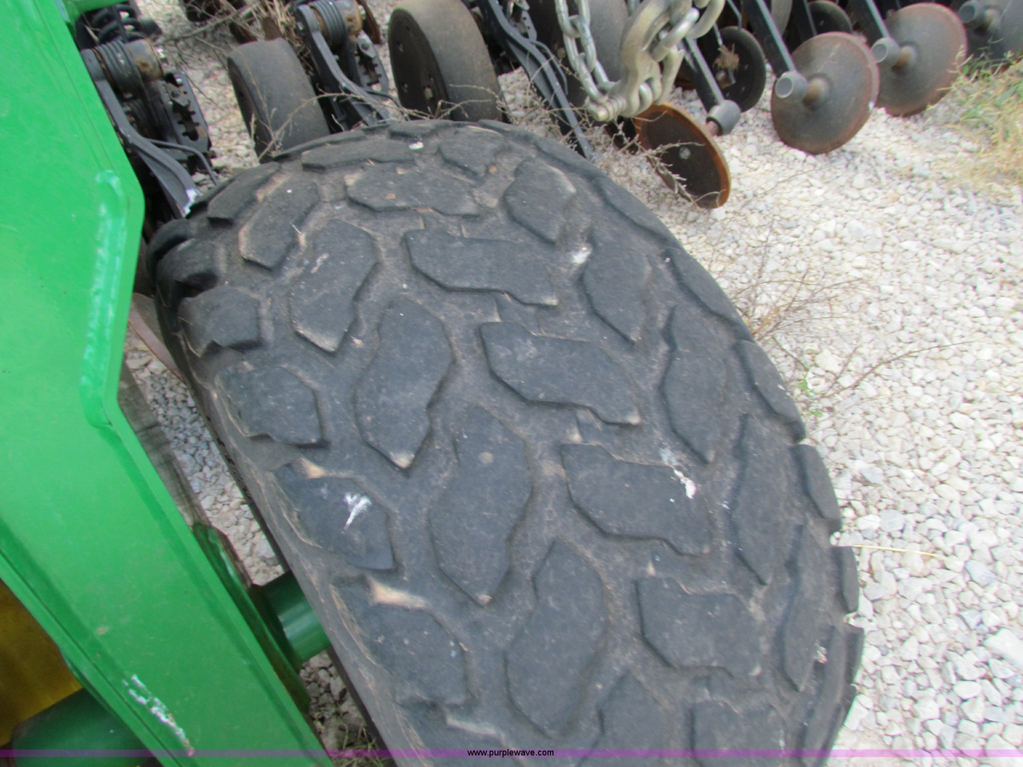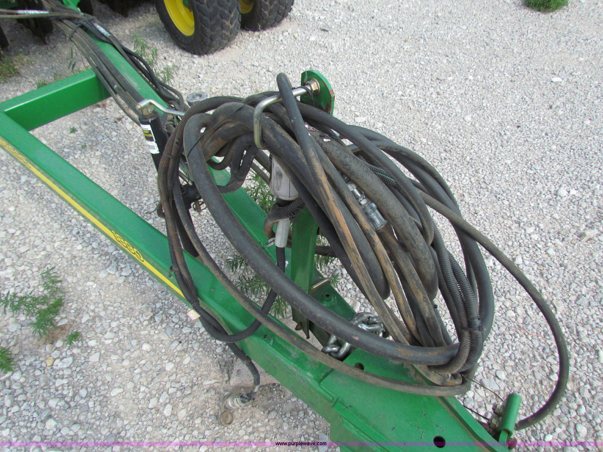 Purple Wave is selling a used Air Seeder in Kansas. This item is a 2008 John Deere 1890 drill with 2008 John Deere 1910 Air Cart with the following: 40', 7.5" spacing, Dual row spacing capable, 7.5"/15"/30",, Primary blockage, 2008 air cart 1910, 430 bushel tow behind, (3) tank variable rate, Conveyor auger, Single shoot eight runs, Walking duals on front, 30.5-32 tires on rear, Stored inside, Recently replaced closing wheel bushings, blades, some gauge wheel rubbers, and some bearings, $8,900 of parts installed in November 2010, Stock# 67447, 67534
