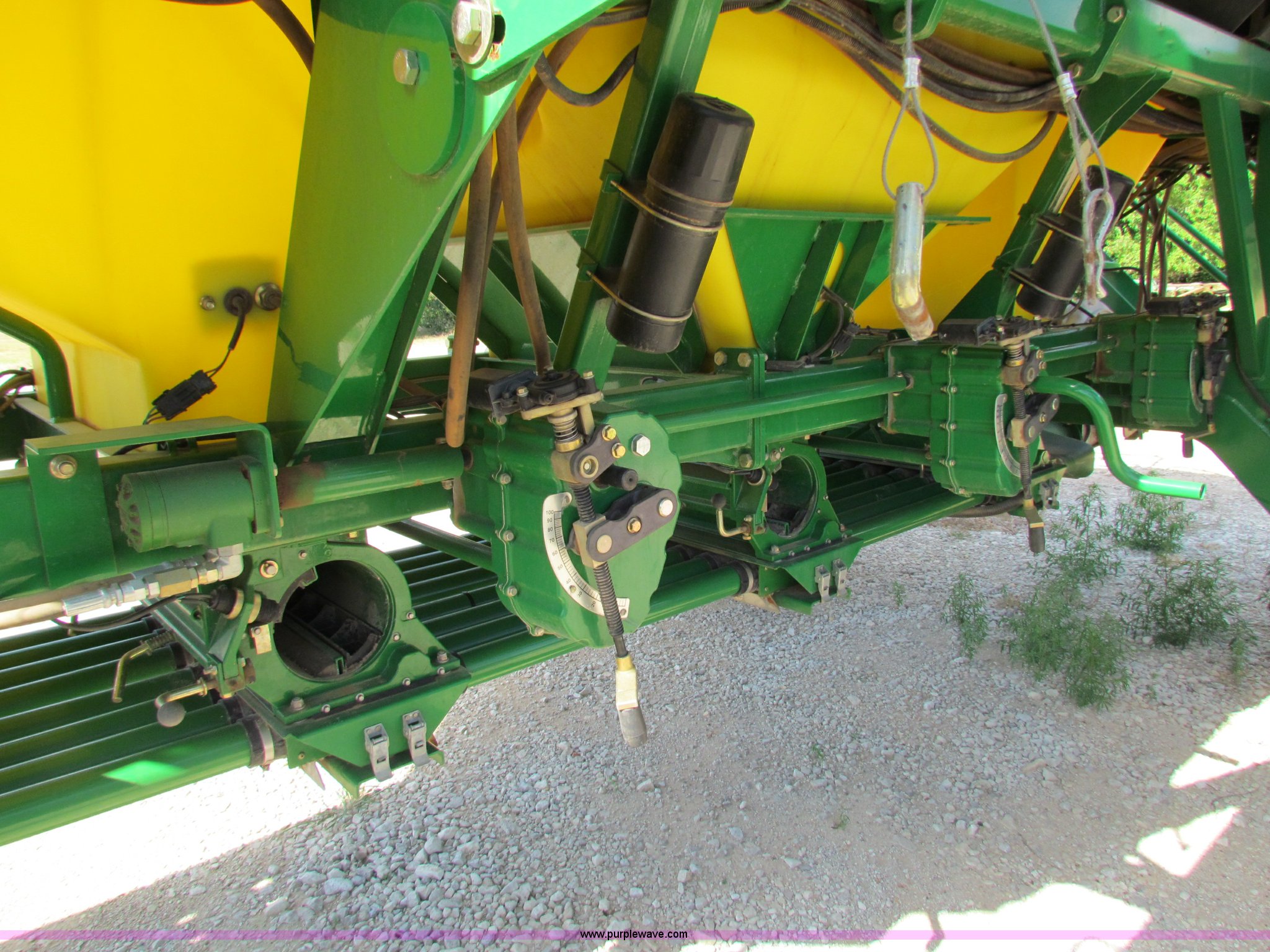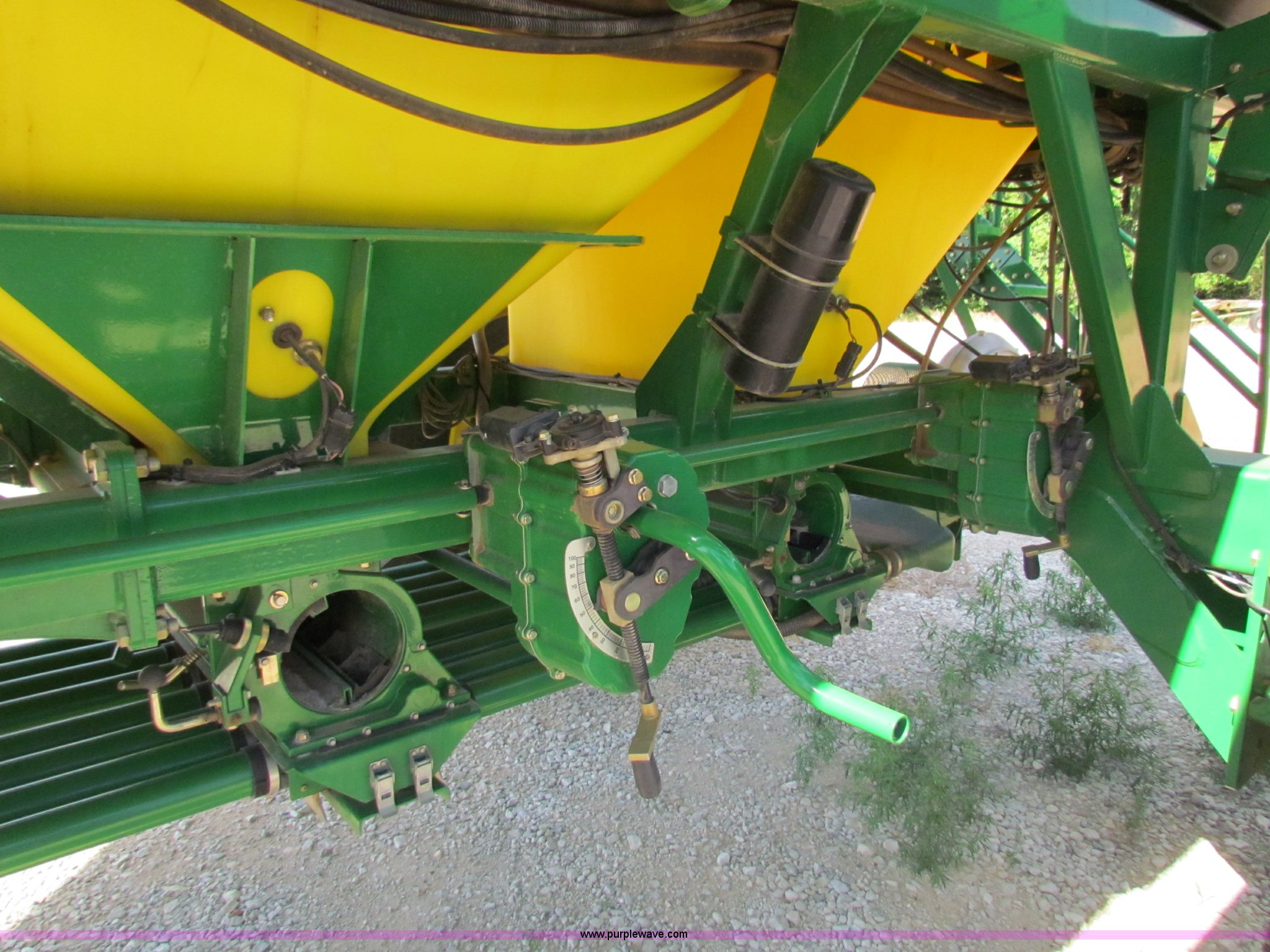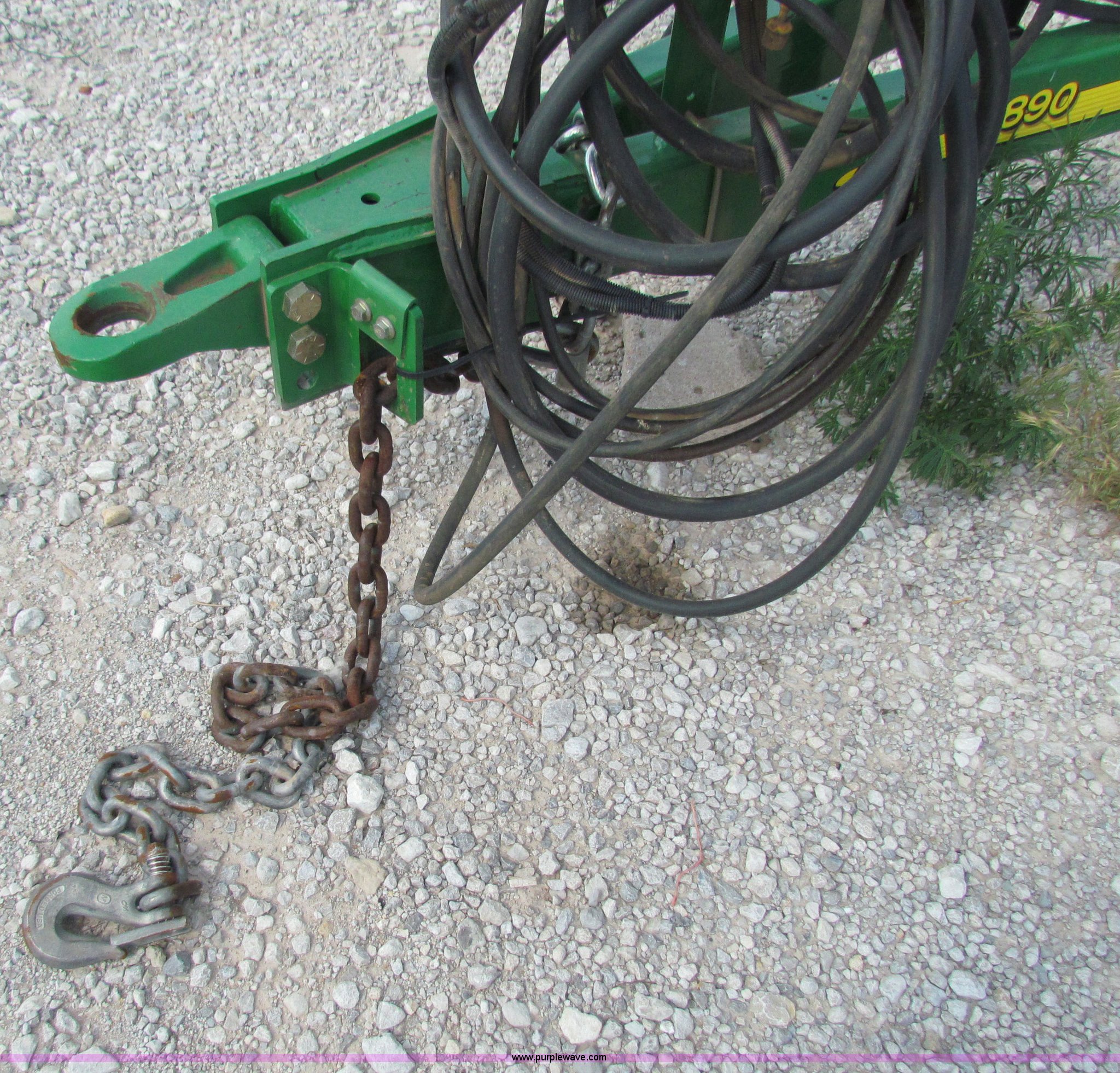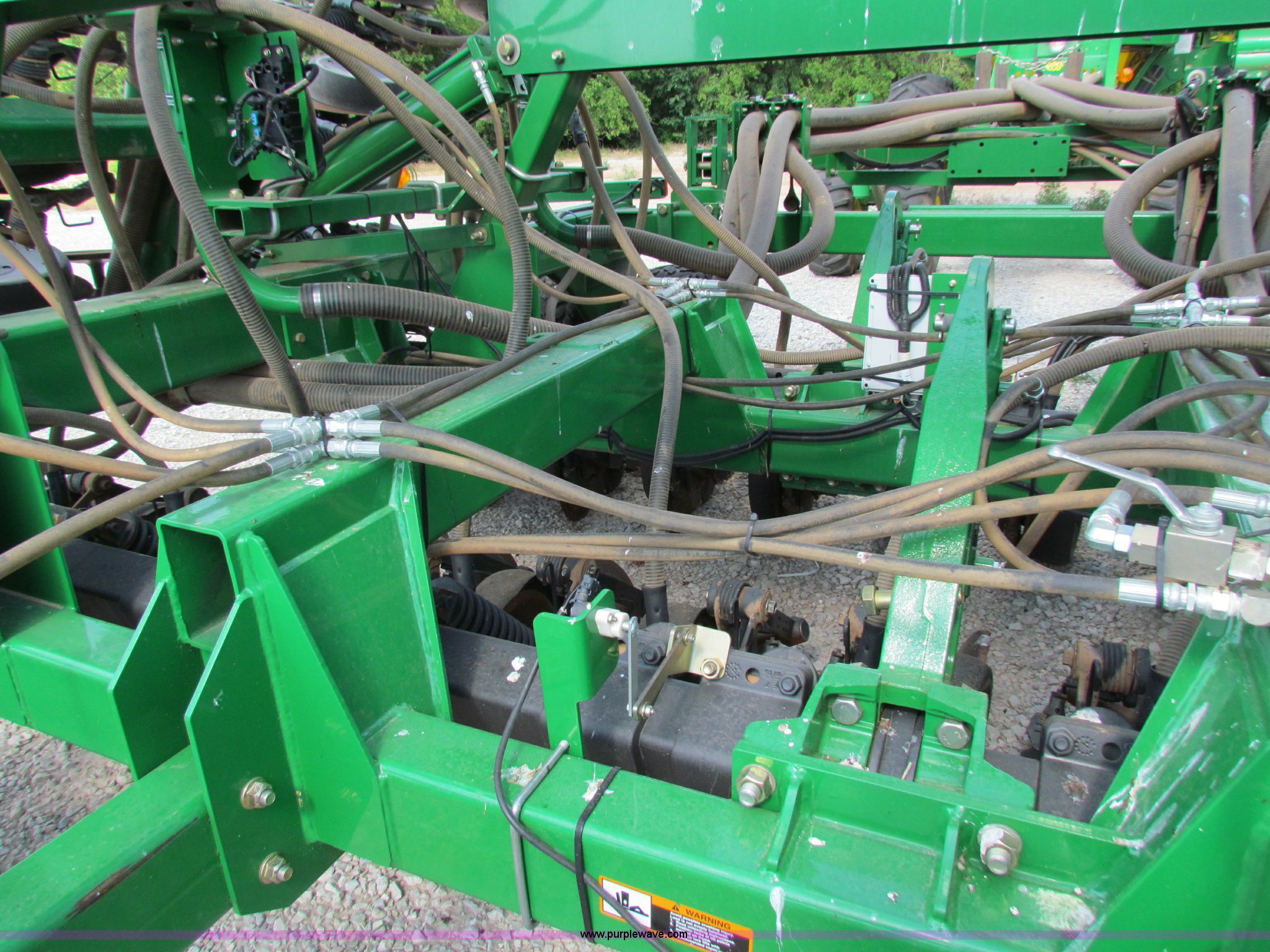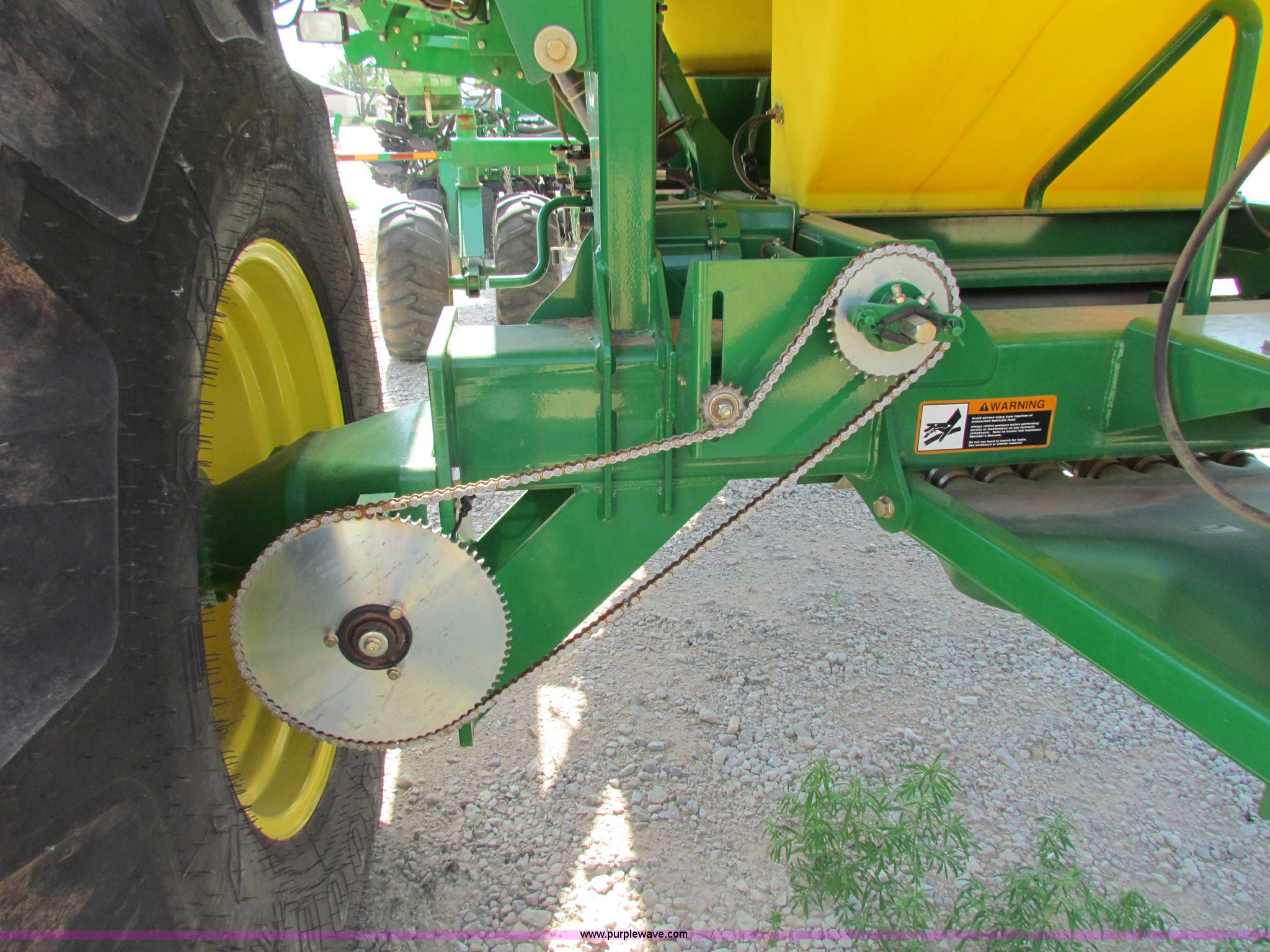 Purple Wave is selling a used Air Seeder in Kansas. This item is a 2008 John Deere 1890 drill with 2008 John Deere 1910 Air Cart with the following: 40', 7.5" spacing, Dual row spacing capable, 7.5"/15"/30",, Primary blockage, 2008 air cart 1910, 430 bushel tow behind, (3) tank variable rate, Conveyor auger, Single shoot eight runs, Walking duals on front, 30.5-32 tires on rear, Stored inside, Recently replaced closing wheel bushings, blades, some gauge wheel rubbers, and some bearings, $8,900 of parts installed in November 2010, Stock# 67447, 67534