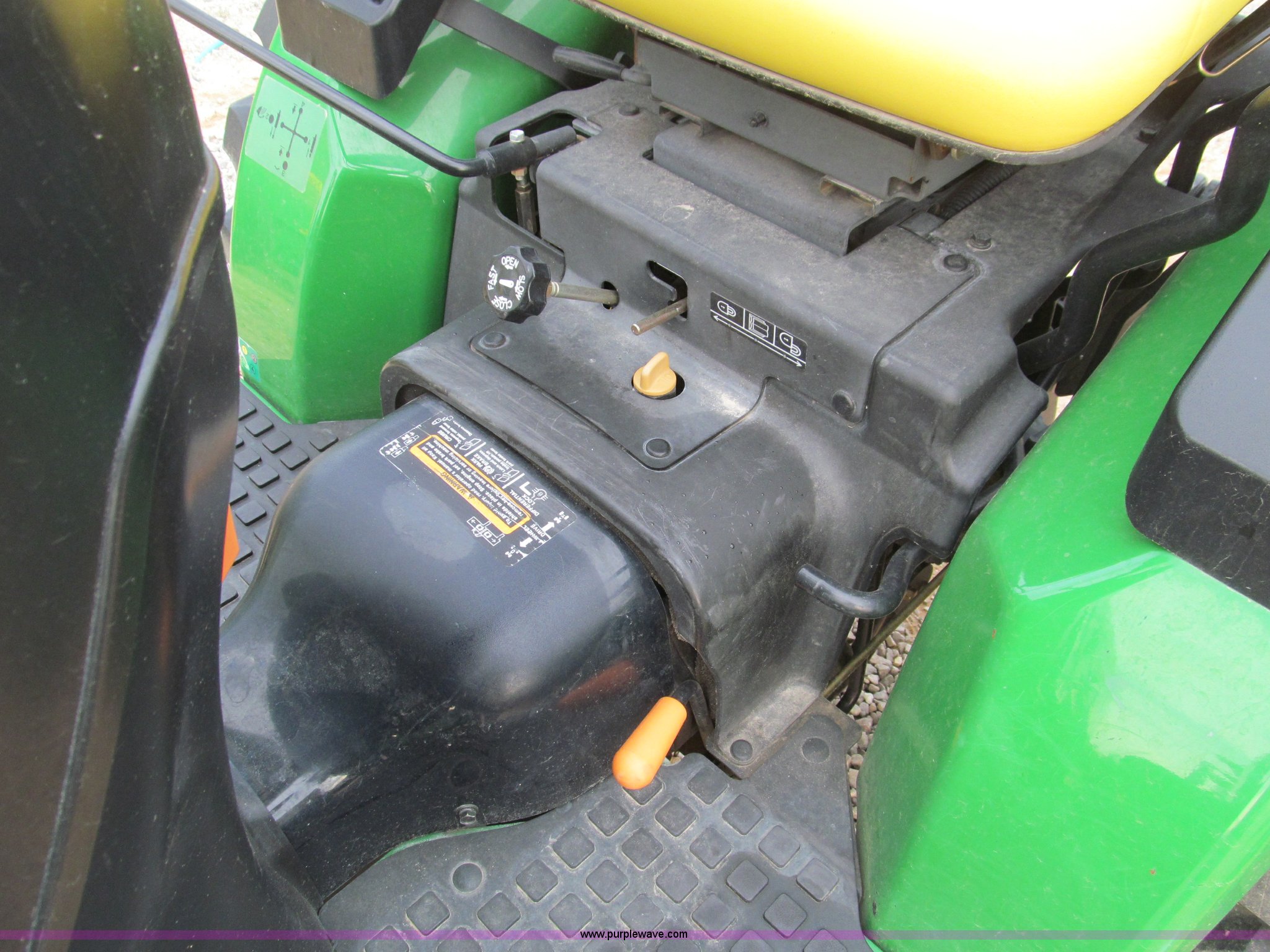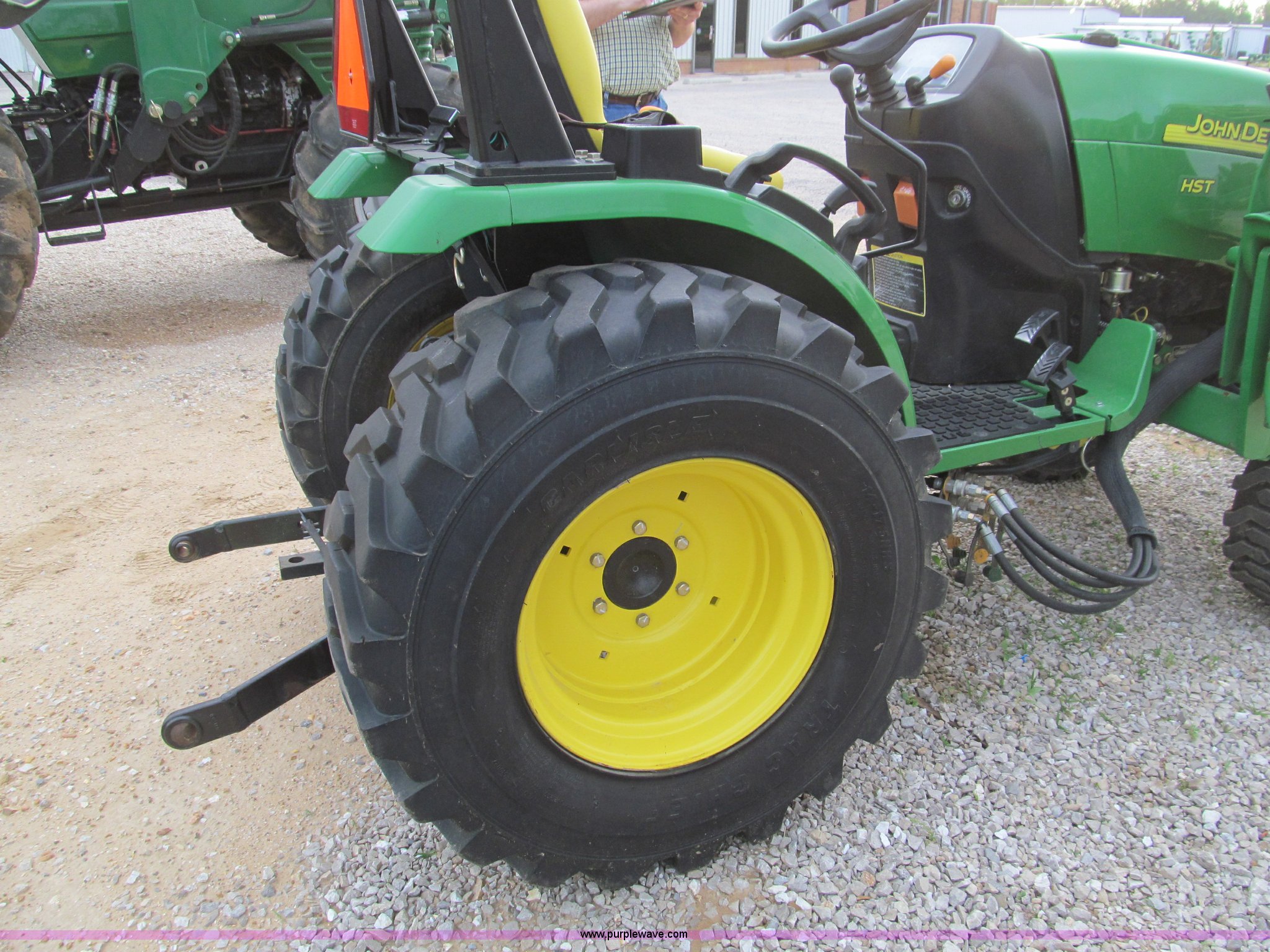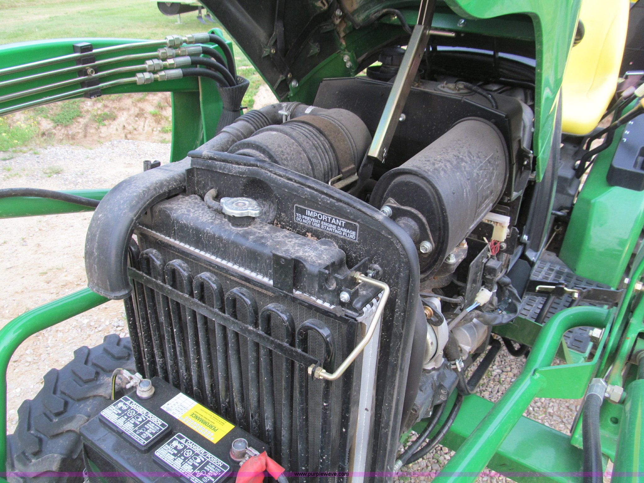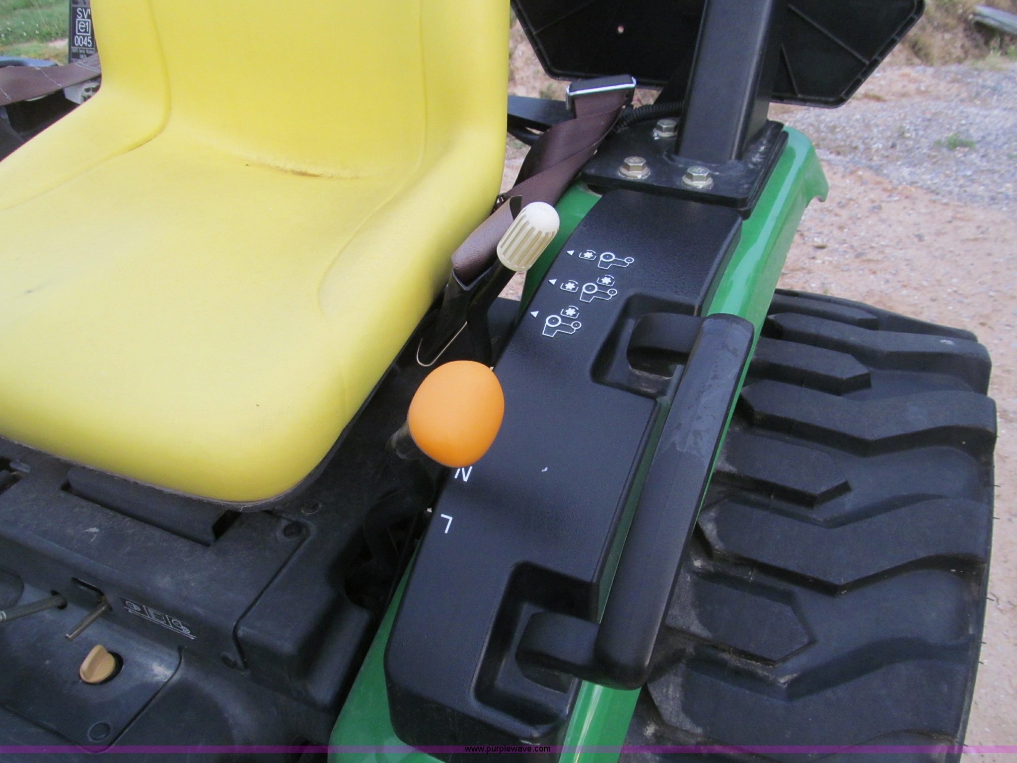 Purple Wave is selling a used Tractor in Missouri. This item is a 2007 John Deere 2520 MFWD tractor with the following: 222 hours on meter, Yanmar three cylinder diesel engine, Model 3TNV82A-MJK, Hydrostatic transmission, Front wheel assist, Spring ride seat, John Deere 200CX loader, 50" smooth edge bucket, Joystick control, Three point, 540 PTO, Mid-mount and rear PTO, (2) mid-mount SCV, 23x8.5-12SS front tires, 14-17.5 rear tires, 67" wheelbase, Recently replaced oil filter, Serial LV2520H307595