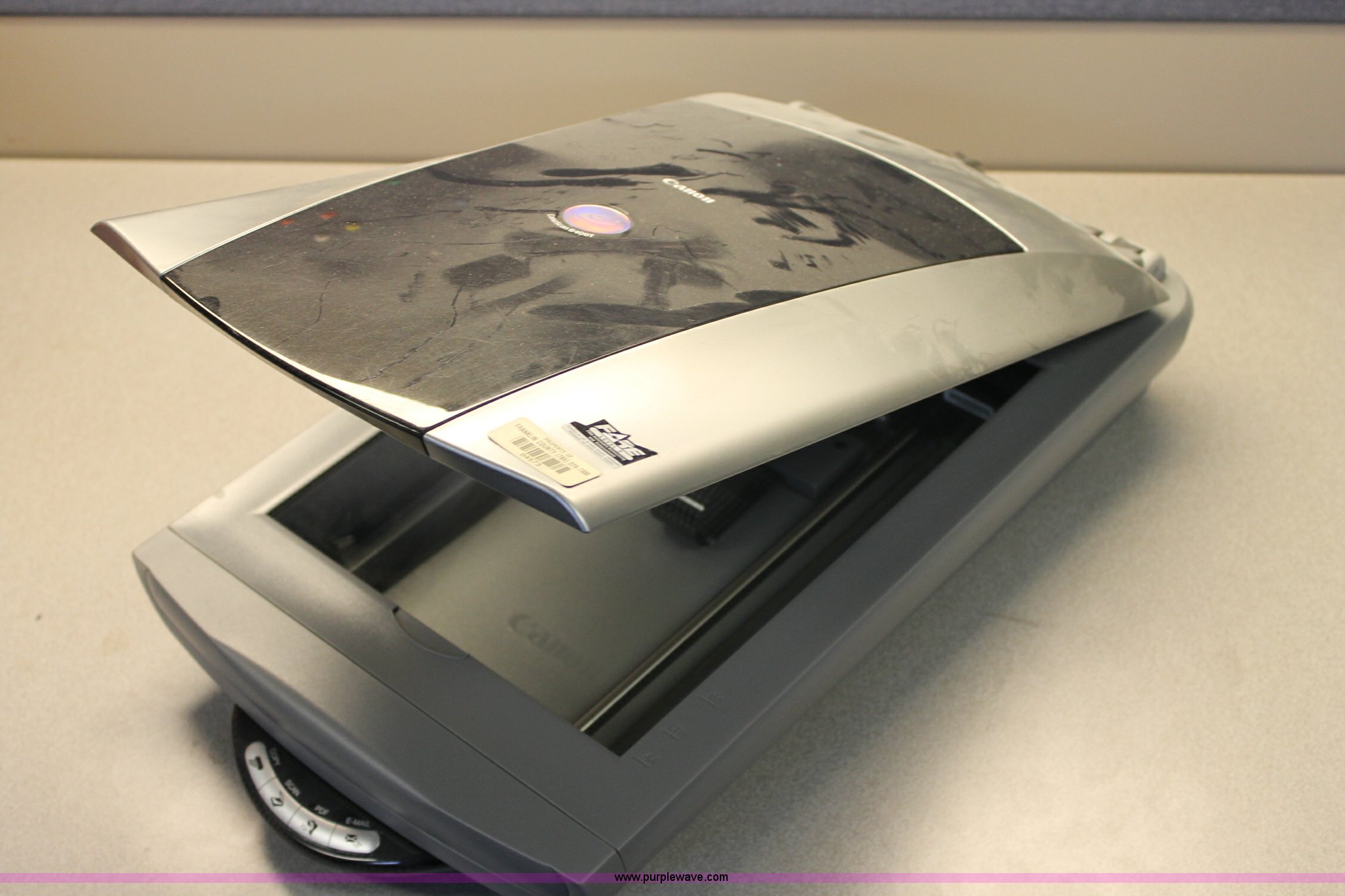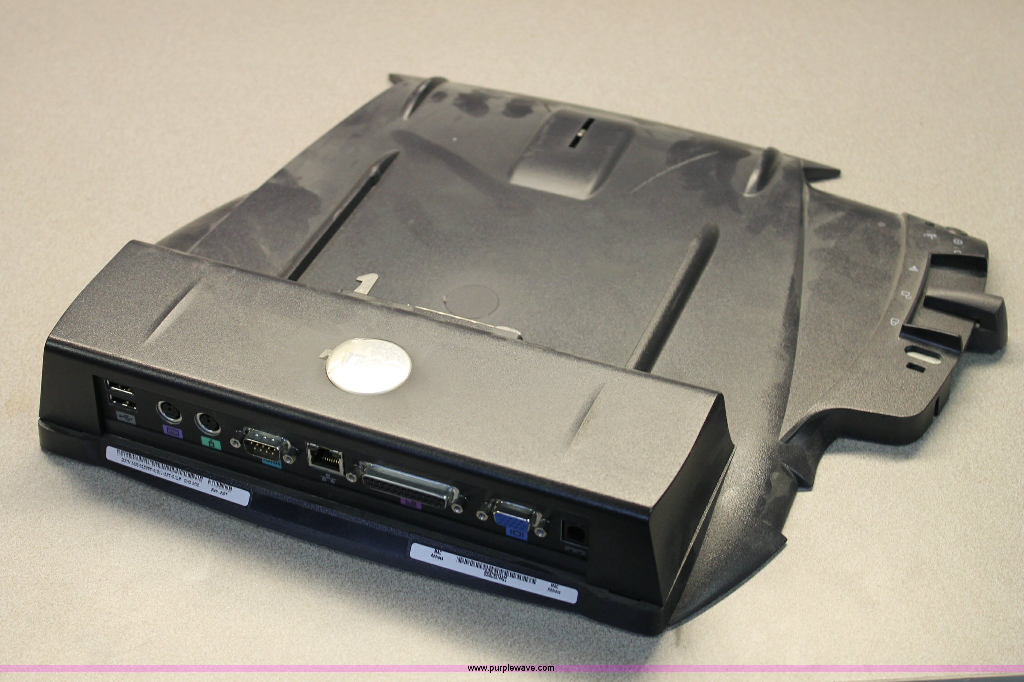 Purple Wave is selling a used Electronics in Kansas. This item is a Assorted equipment with the following: Dell dock PRX station, Cano Scan 8400F scanner, VCR, (2) video processors, ID# 046,047,051,052,053
