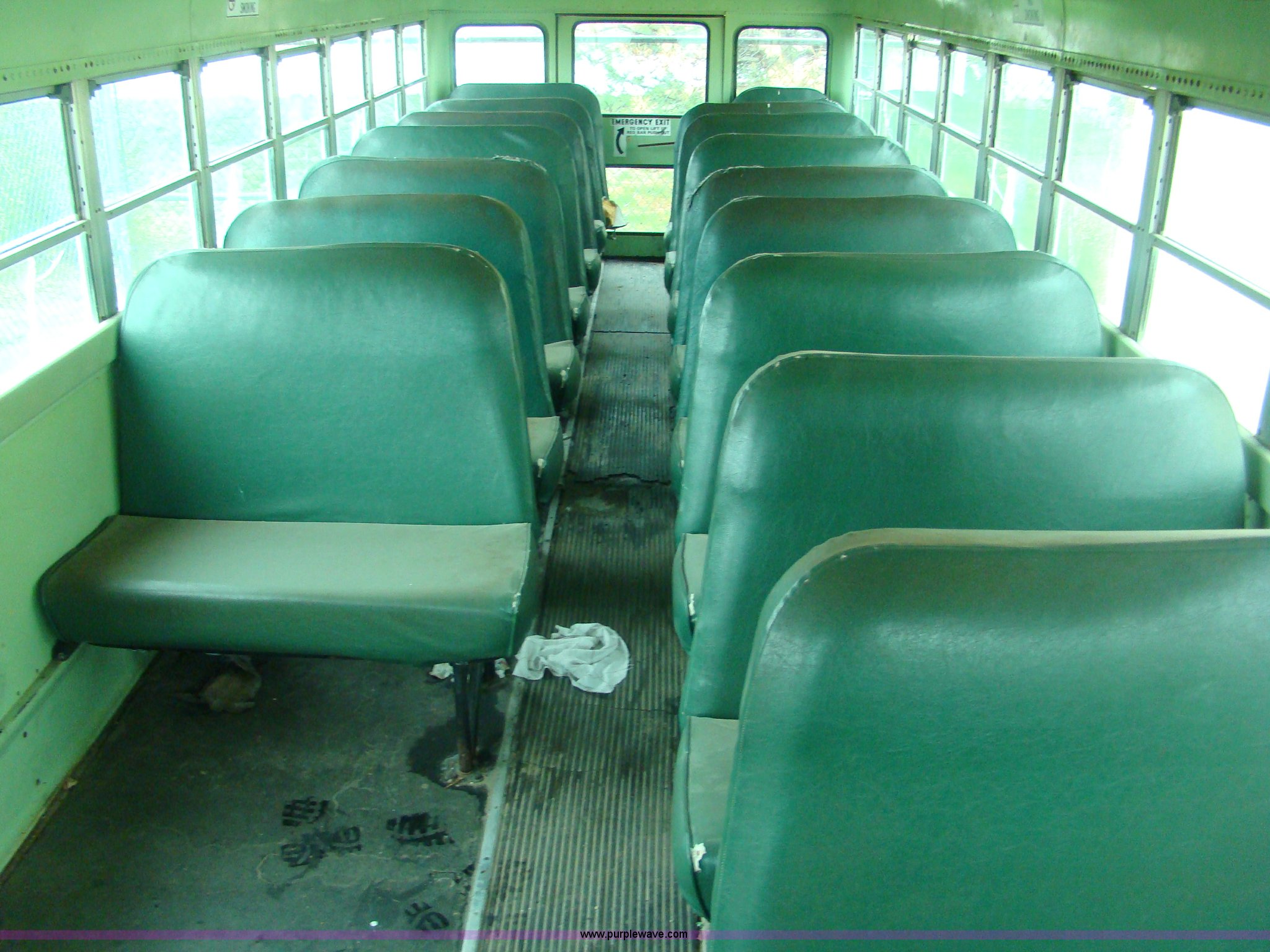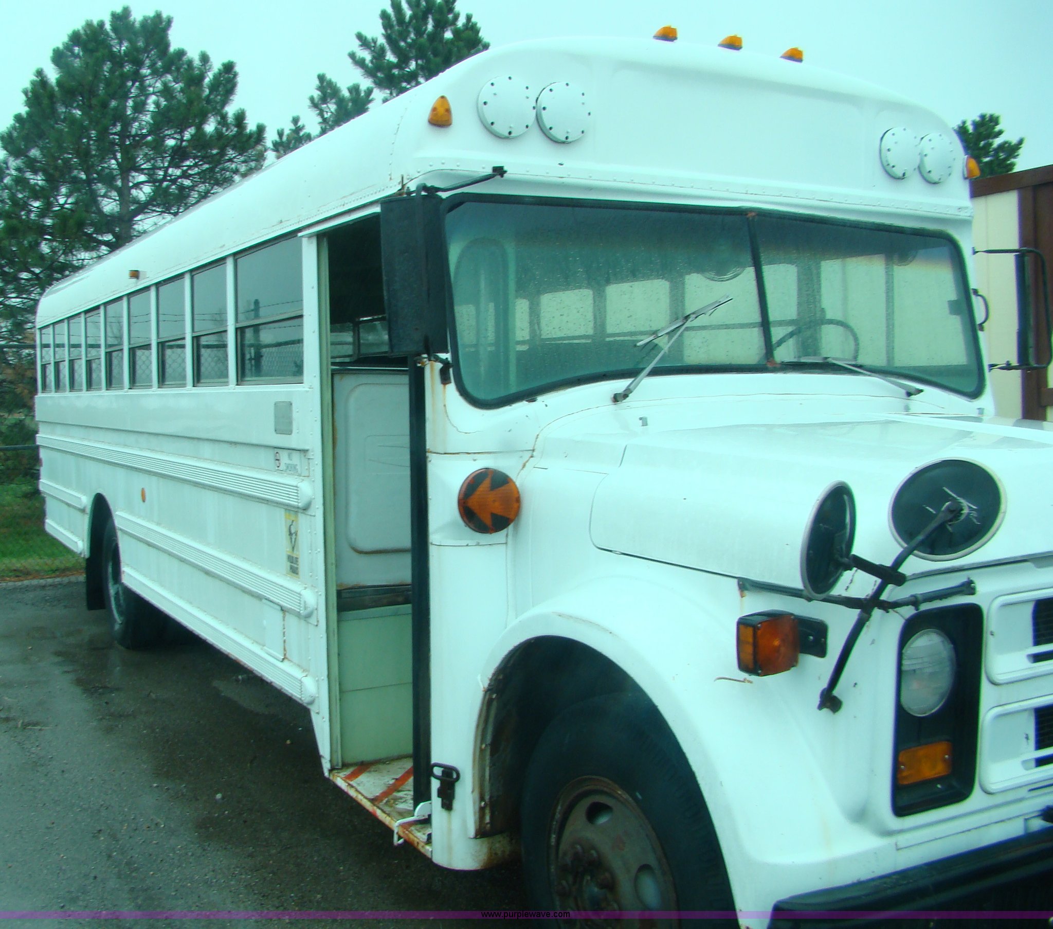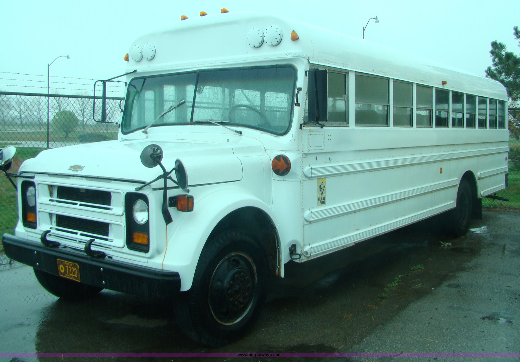 Purple Wave is selling a used Bus in Kansas. This item is a 1980 Chevrolet SS24 school bus with the following: 42,769 miles on odometer, Approx. 142,769 actual miles, 53 Passenger, Automatic transmission, 8.25-20 tires, Ran when parked four years ago, Cracked windows and torn seats, Serial 92247