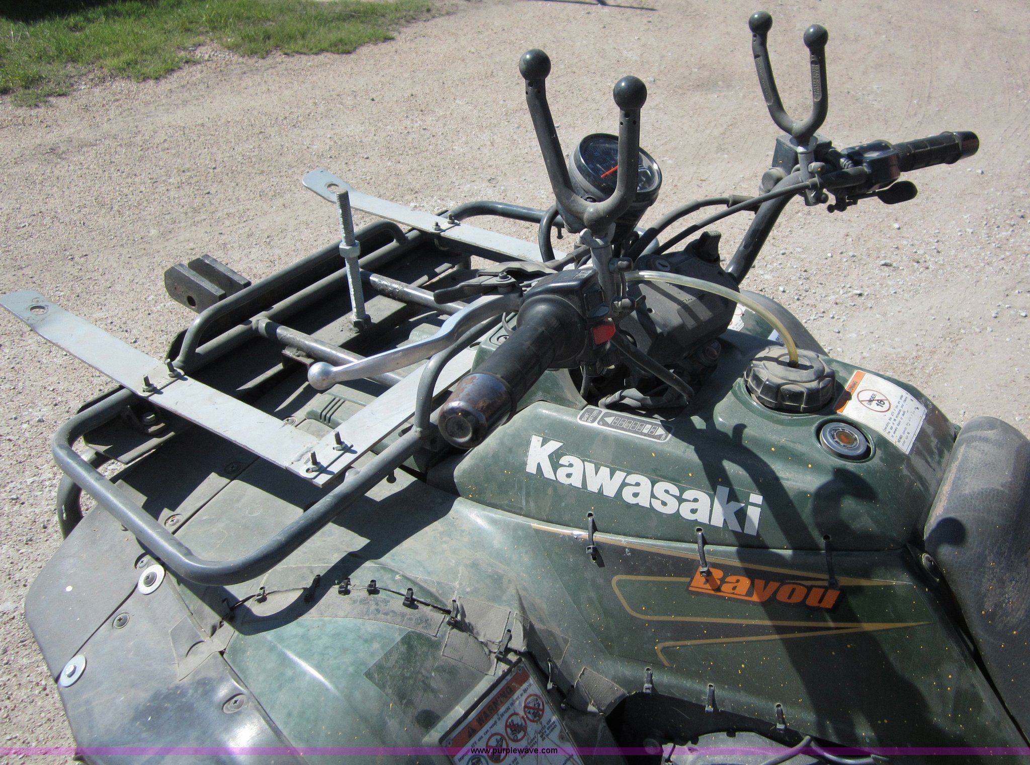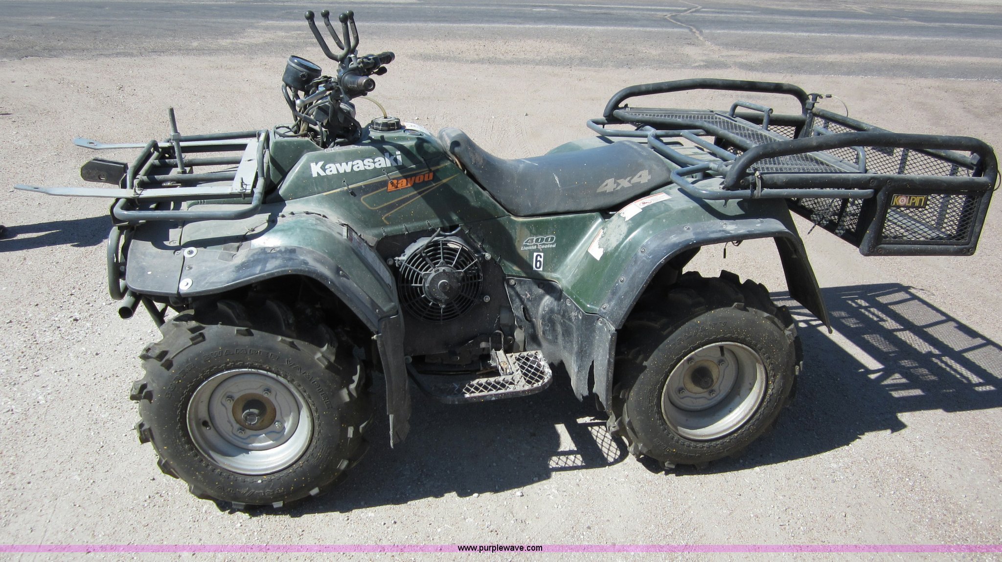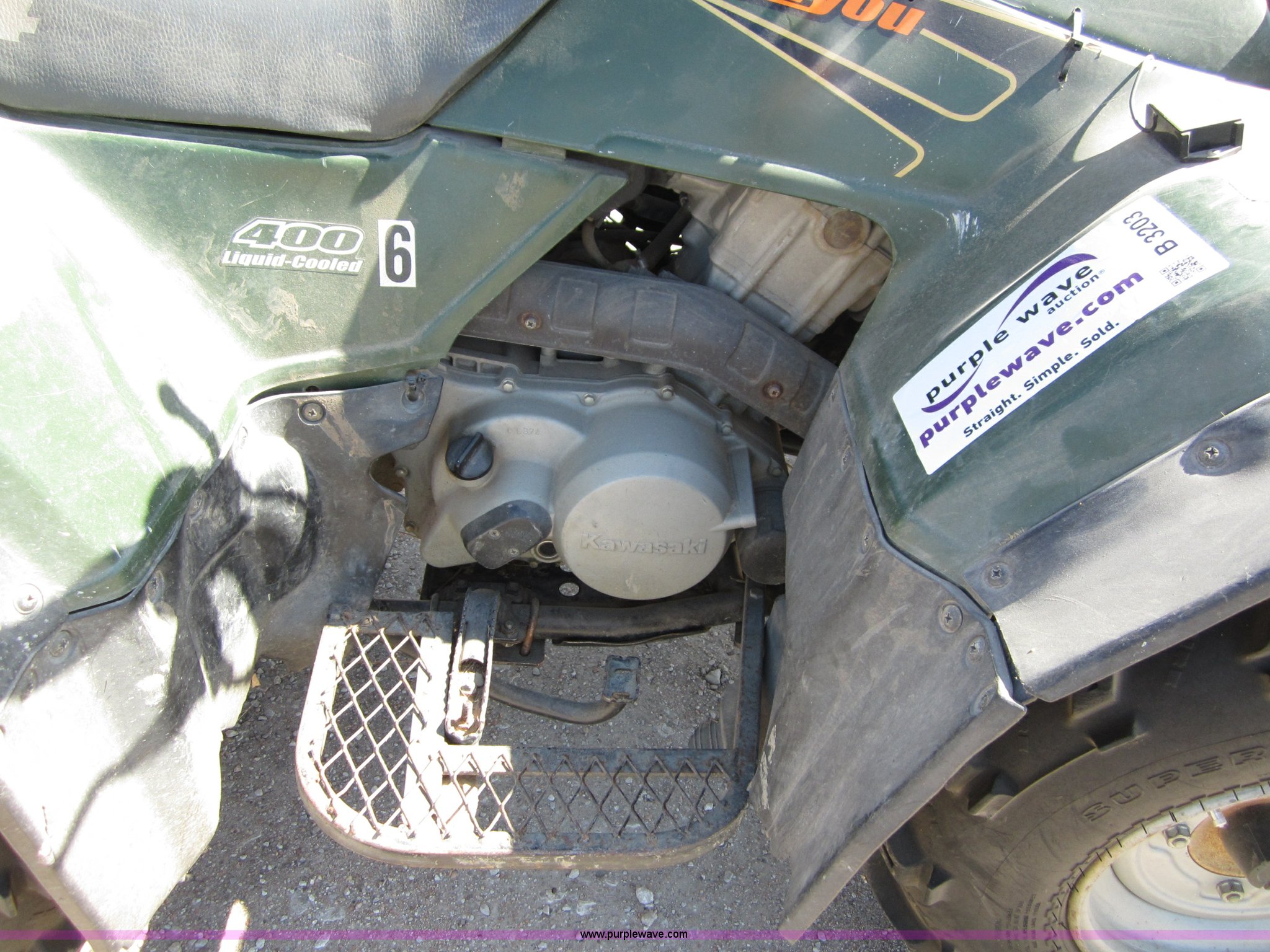 Purple Wave is selling a used ATV in Kansas. This item is a 1999 Kawasaki Bayou ATV with the following: 2,990 miles on odometer, 400 cc liquid cooled engine, Four wheel drive, Speedometer, 24x9x11 tires