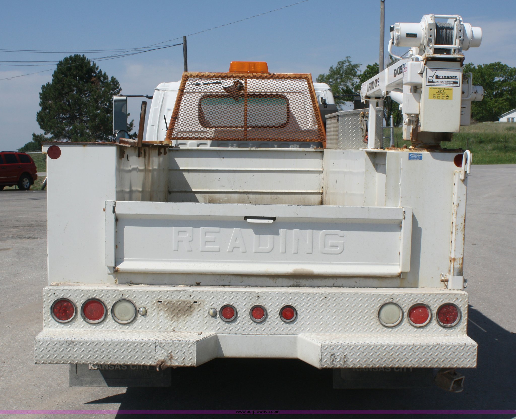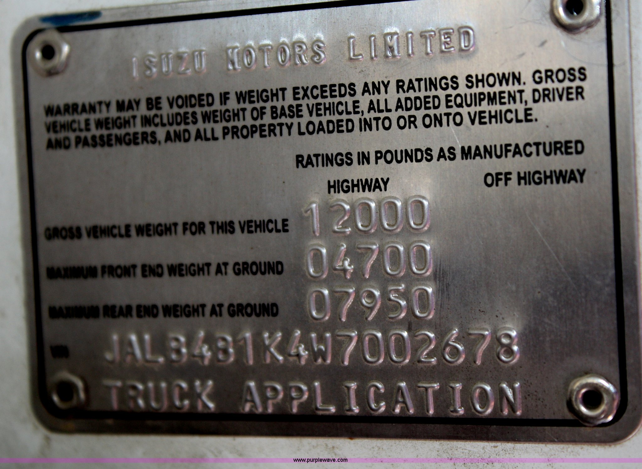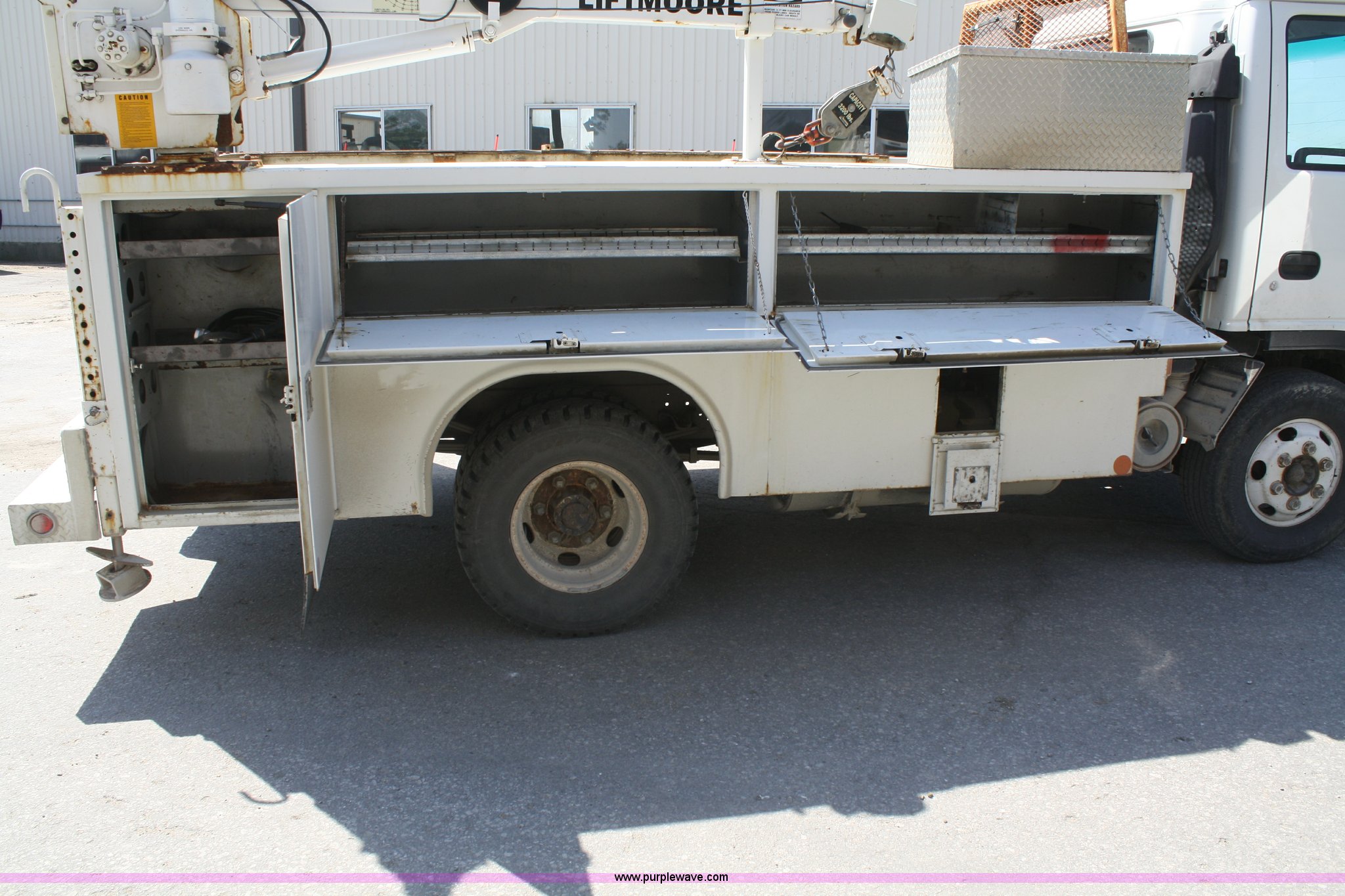 Purple Wave is selling a used Service Truck in Kansas. This item is a 1998 Isuzu service truck with the following: 191,710 miles on odometer, Isuzu 3.9L turbo diesel engine, Automatic transmission, Reading 11'L utility bed, Lift Moore 32000REF crane, Serial U297W58, 3,200 lb capacity, 15' maximum reach, 3,200 lb capacity block, 235/85R16 tires, AM/FM does not work, AC needs recharged, Muffler is bad, Intermittent transmission light, Crane is rough, Engine runs rough