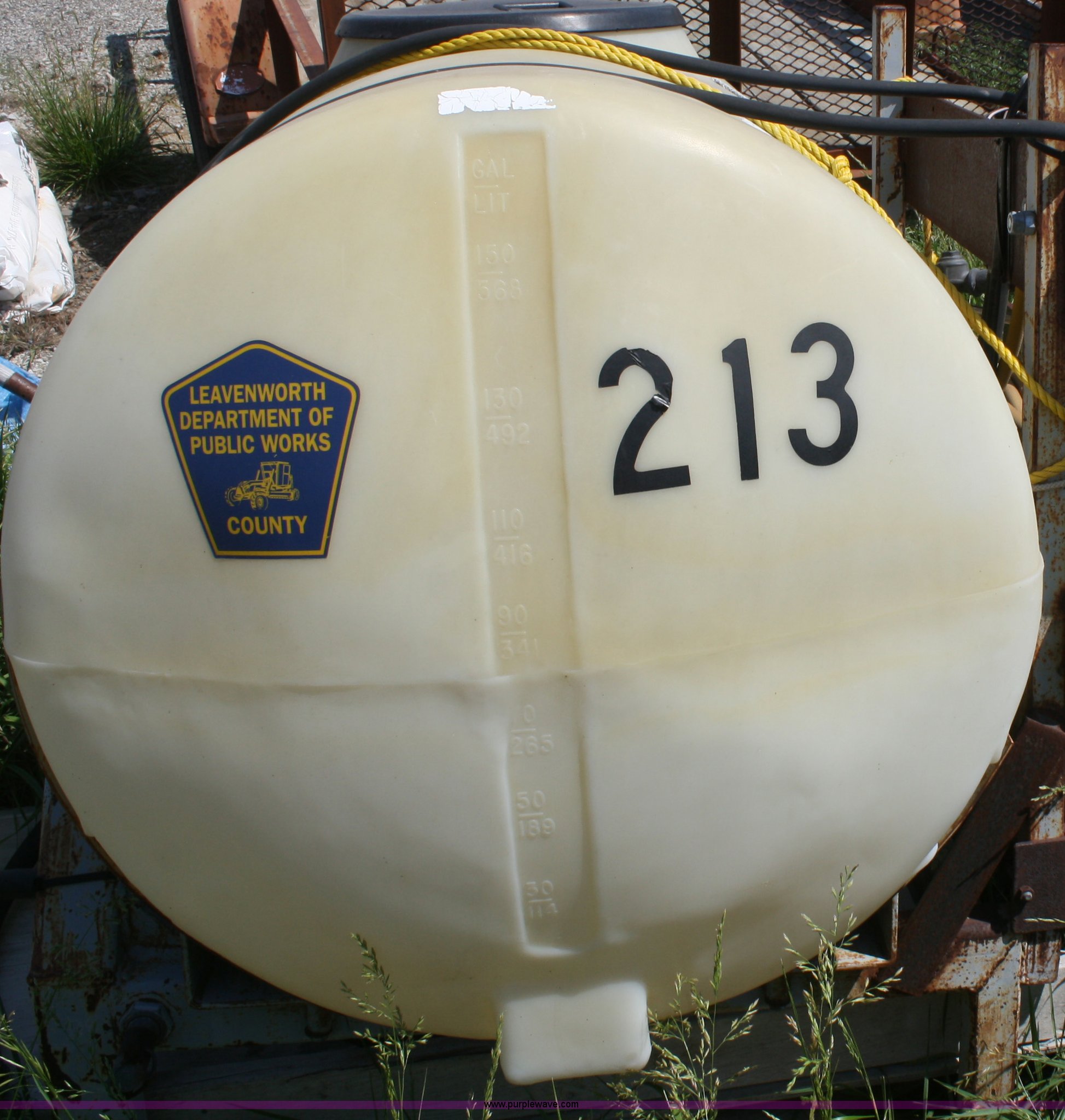 Three point sprayer. Hand boom, 150 gallon poly tank, (2) broad jet nozzles, Foam marker with five gallon tank, No pump. Leavenworth County Public Works. 23690 187th Street. Leavenworth, KS 66048
