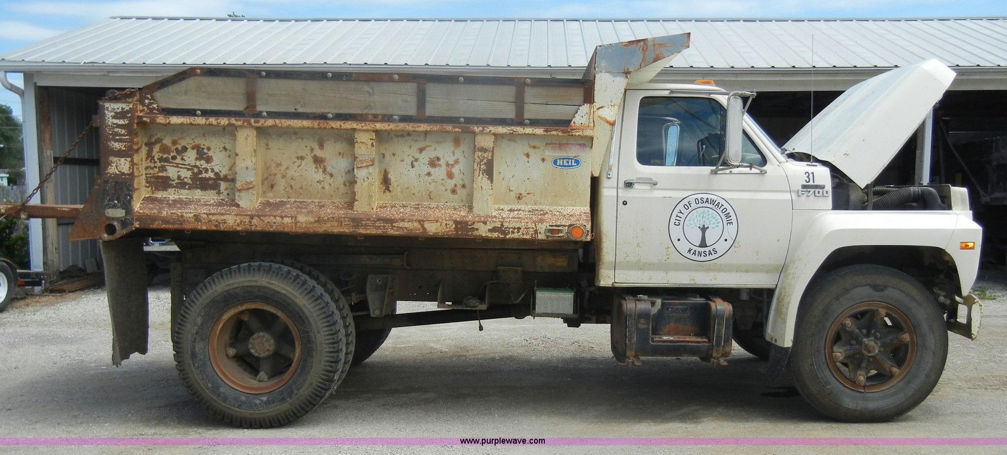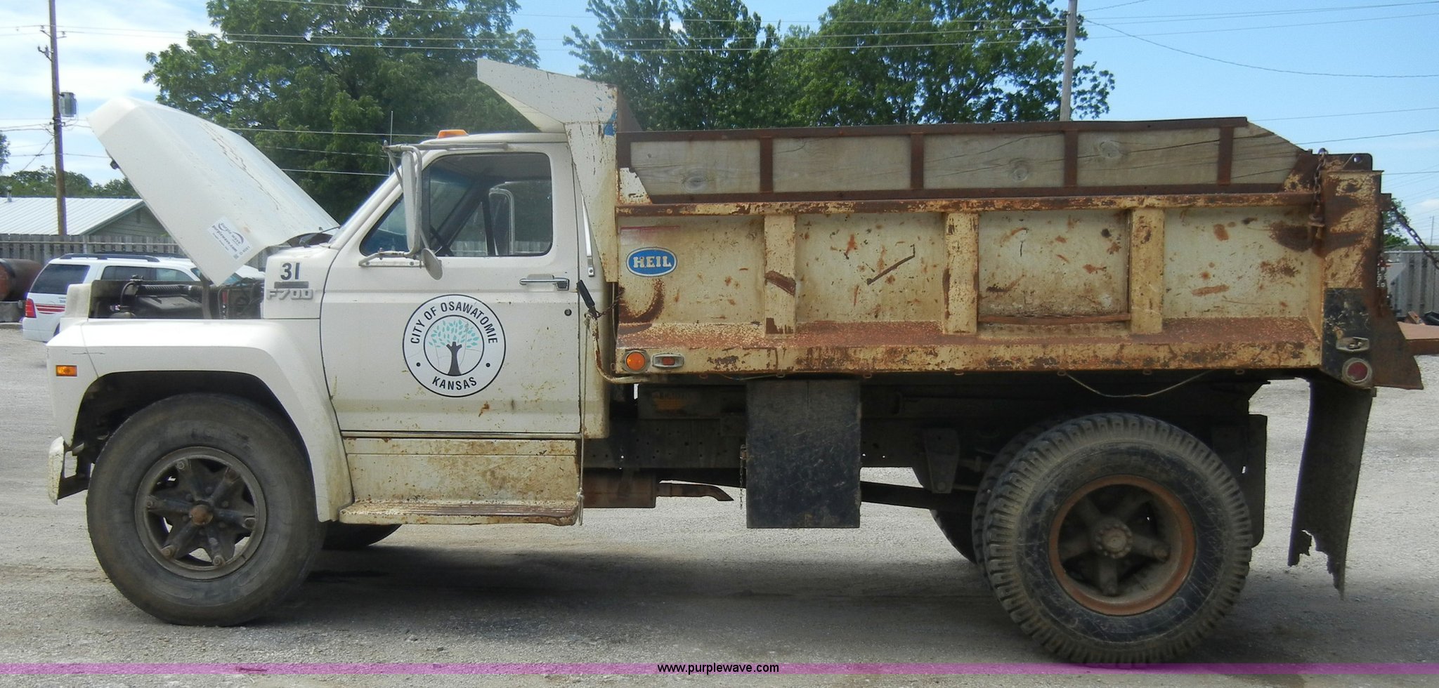 1987 Ford F700 dump truck has sold in Osawatomie , Kansas for $2640. Item D4081 sold on June 5th, 2012.