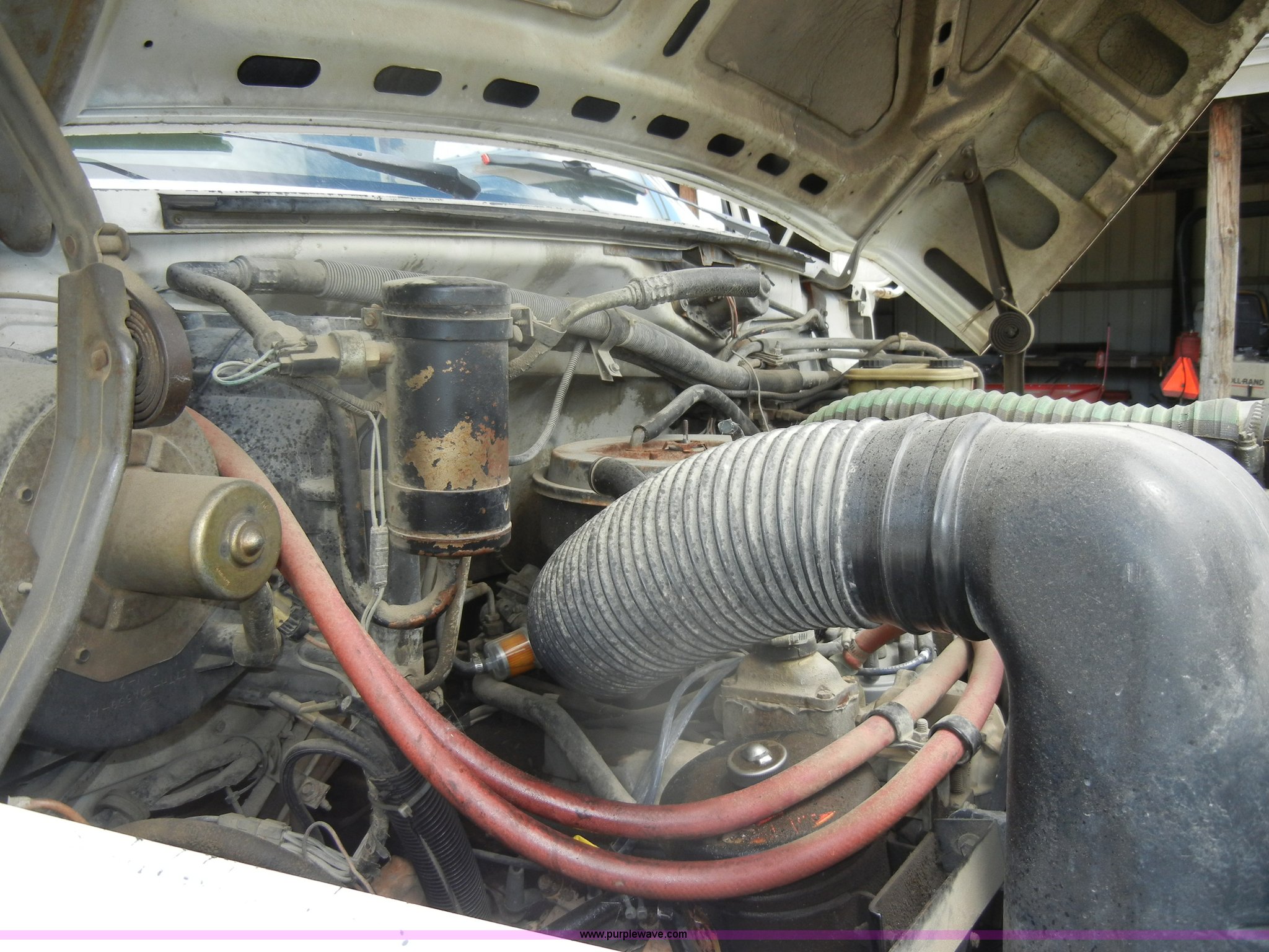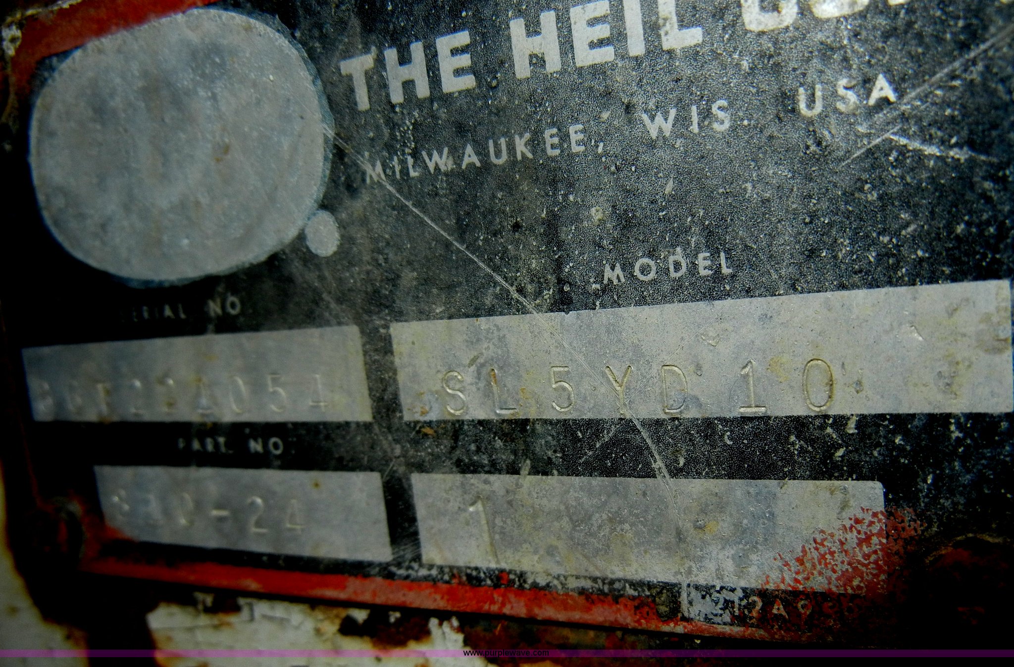 Purple Wave is selling a used Construction Dump Truck in Kansas. This item is a 1987 Ford F700 dump truck with the following: 18,576 miles on odometer, Ford 350 6.1L V8 gas engine, Four speed manual transmission, Heat, AM/FM, Vinyl bench seat, Damaged, Bumper, Toolboxes, Heil 5 cu. yd. bed, 10' x 95", Model SL5YD10, Serial 86T221054, 35 gallon fuel tank, Spring suspension, PTO, Hydraulic brakes, 10.00R20 tires, Engine has oil leak, Interior/exterior cosmetic damage, Dents and scratches