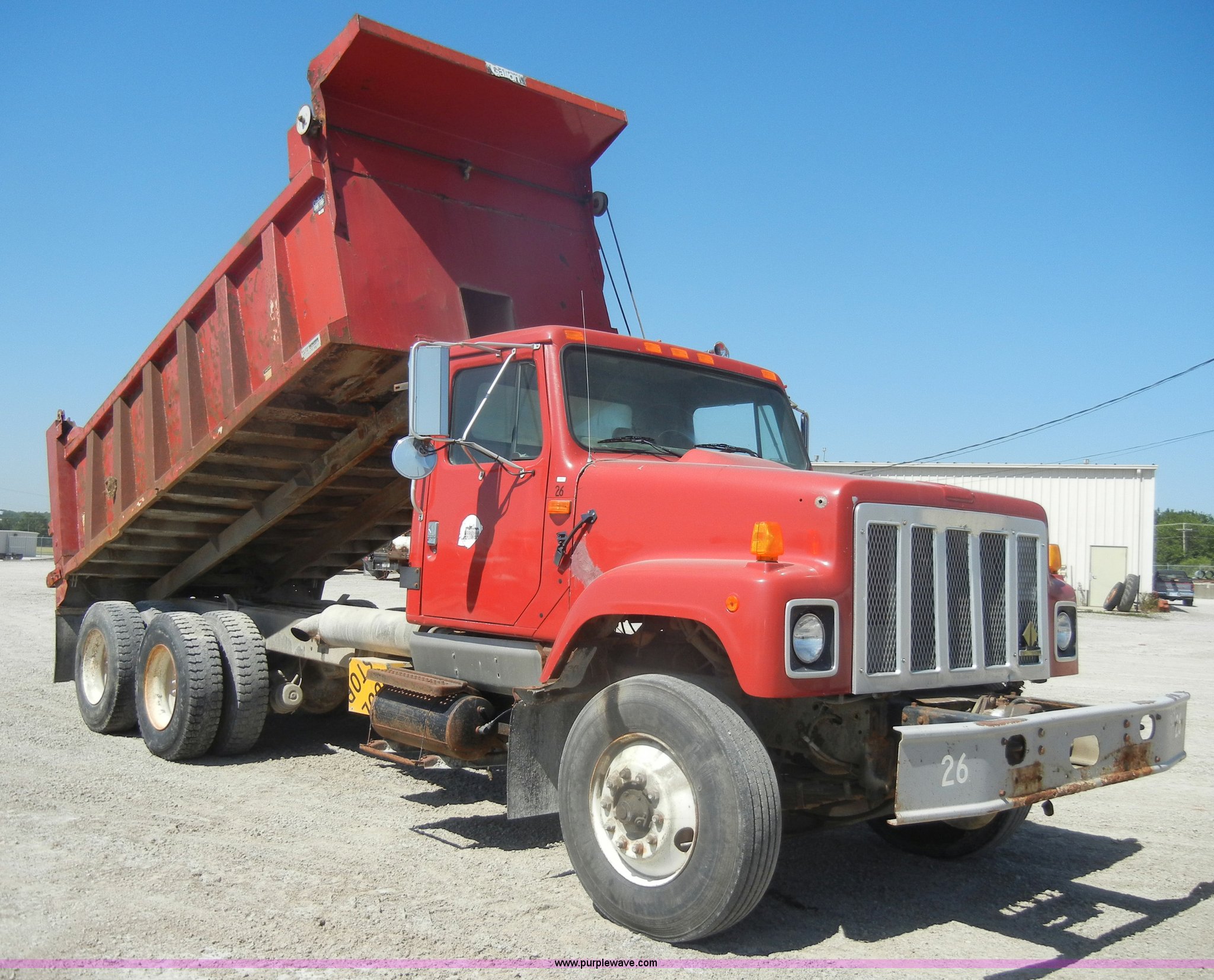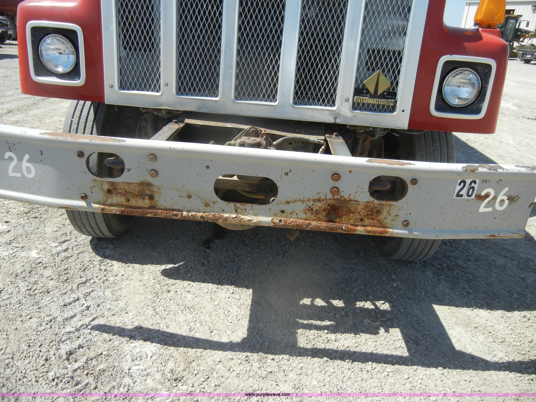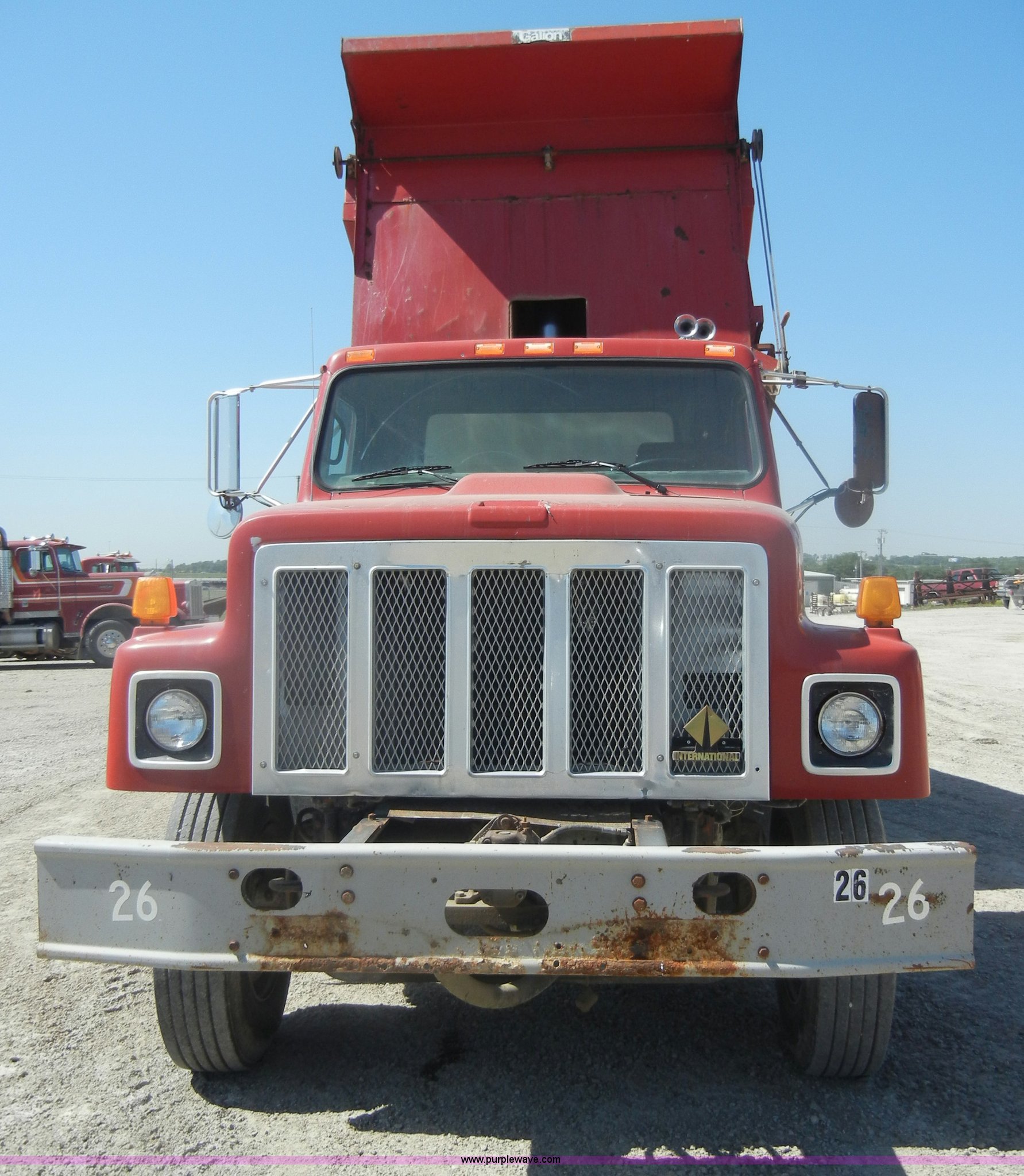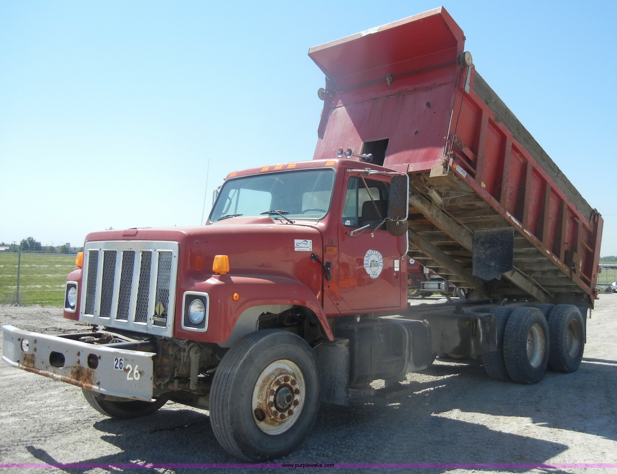 Purple Wave is selling a used Construction Dump Truck in Kansas. This item is a 1994 International 2574 dump truck with the following: 322,074 miles on odometer, Caterpillar 3176 10.3L diesel engine, Spicer 10 speed manual transmission, AM/FM, Air suspension seat, Heated mirrors, Bumper, Rusted, Block heater, STE dump bed, Damaged underside, Air end gate, 104 gallon fuel tank, Spring suspension, Wet kit, Rear hydraulic hookups, Force front PTO mount, Air brakes, Spreader and plow controls, 11R22.5 tires, AC needs charged, Cruise control inoperable, Cosmetic damage to hood, Unit# 26