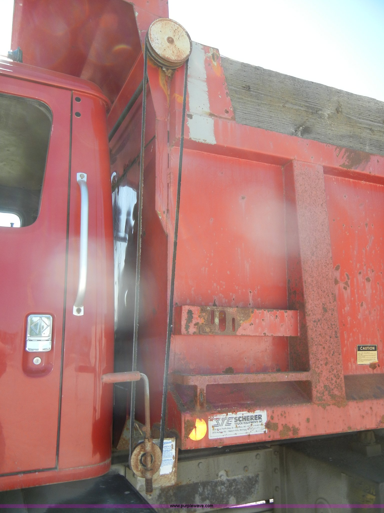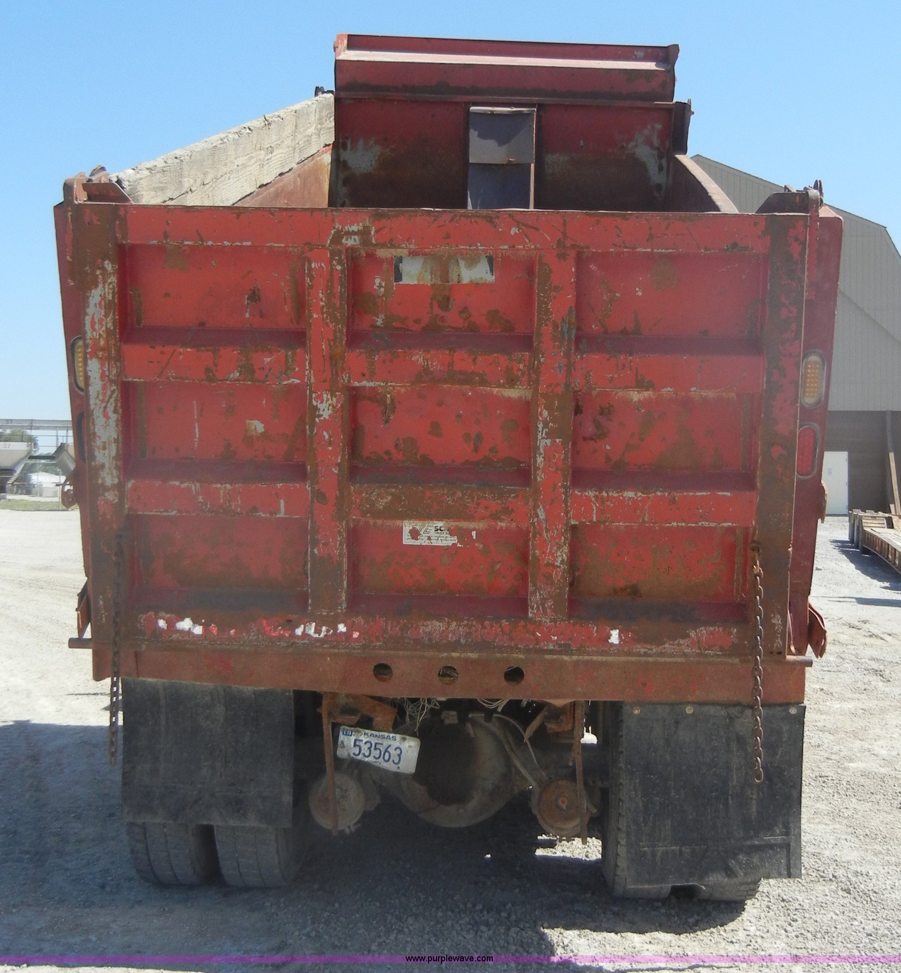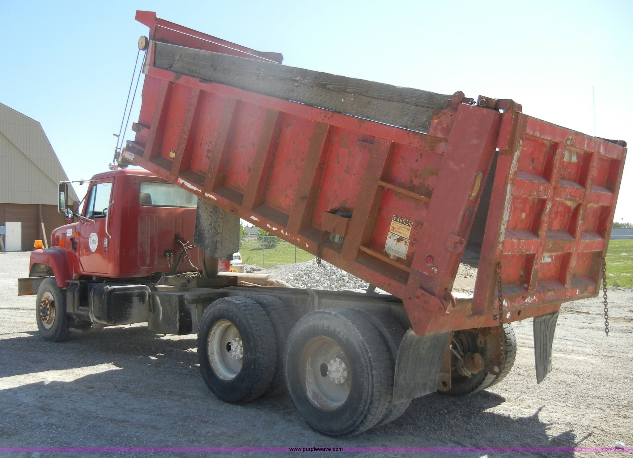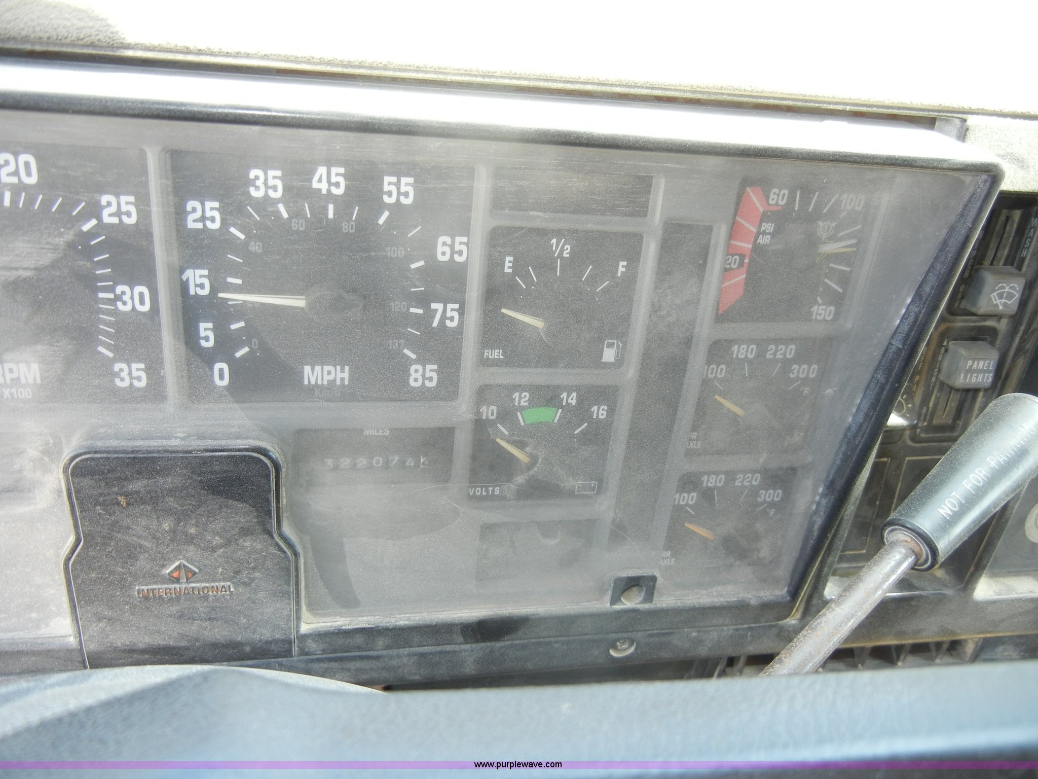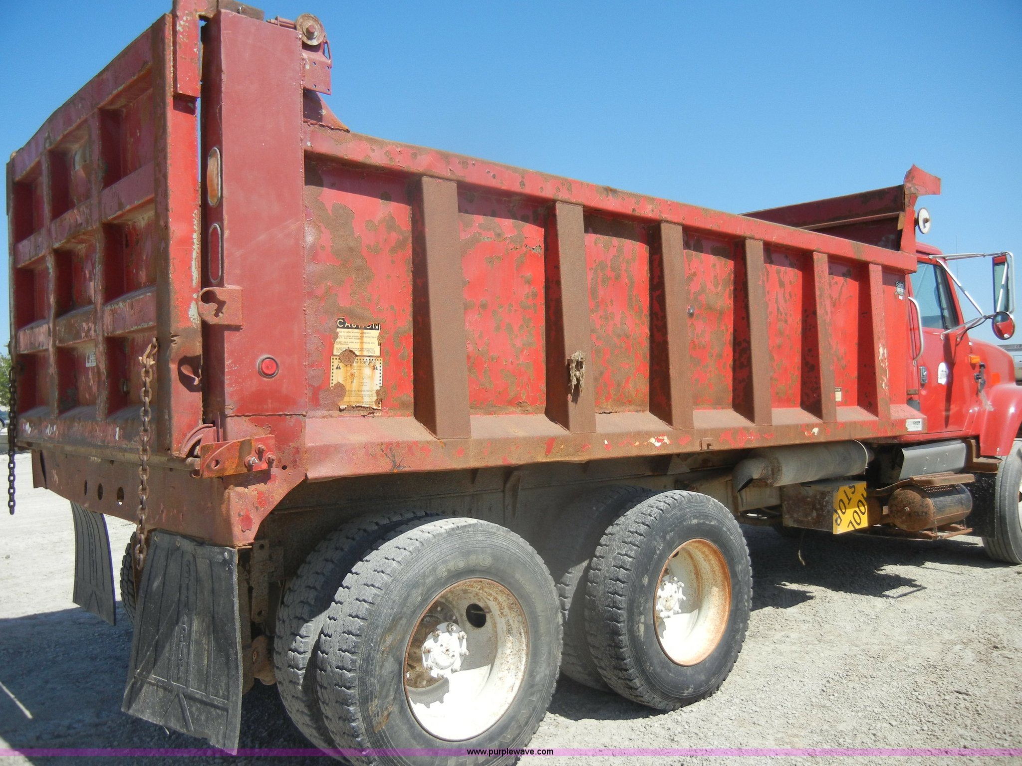 Purple Wave is selling a used Construction Dump Truck in Kansas. This item is a 1994 International 2574 dump truck with the following: 322,074 miles on odometer, Caterpillar 3176 10.3L diesel engine, Spicer 10 speed manual transmission, AM/FM, Air suspension seat, Heated mirrors, Bumper, Rusted, Block heater, STE dump bed, Damaged underside, Air end gate, 104 gallon fuel tank, Spring suspension, Wet kit, Rear hydraulic hookups, Force front PTO mount, Air brakes, Spreader and plow controls, 11R22.5 tires, AC needs charged, Cruise control inoperable, Cosmetic damage to hood, Unit# 26