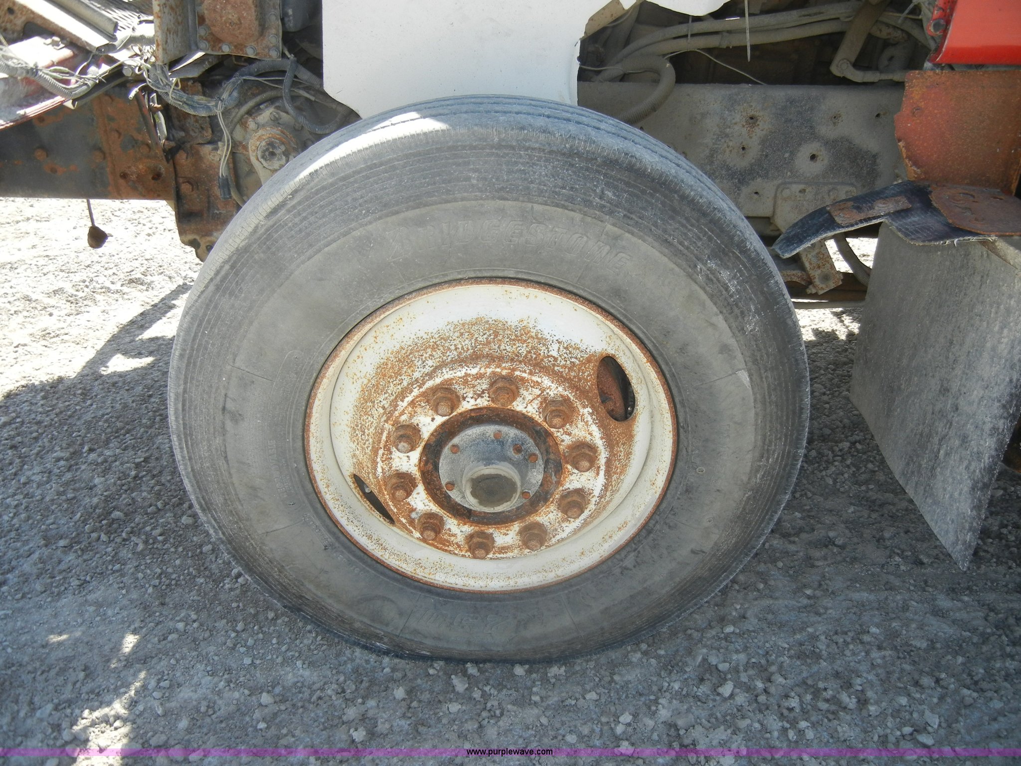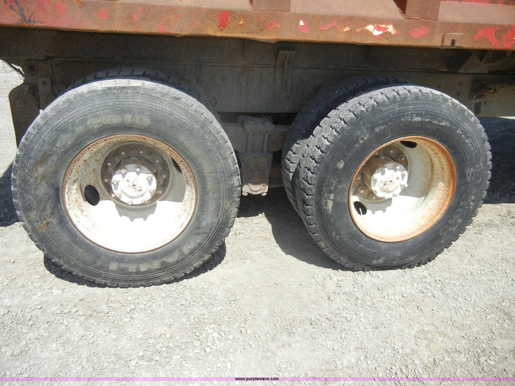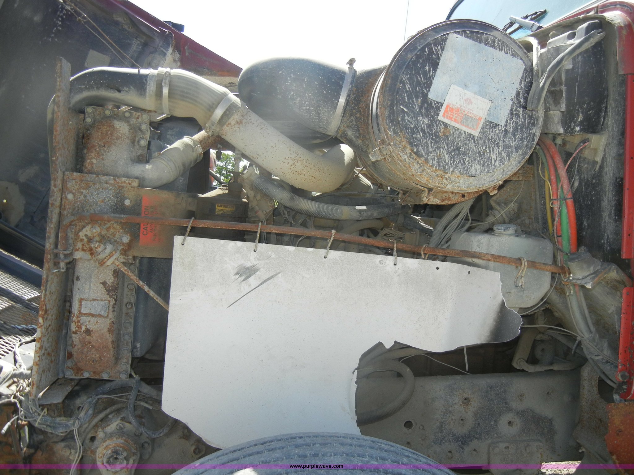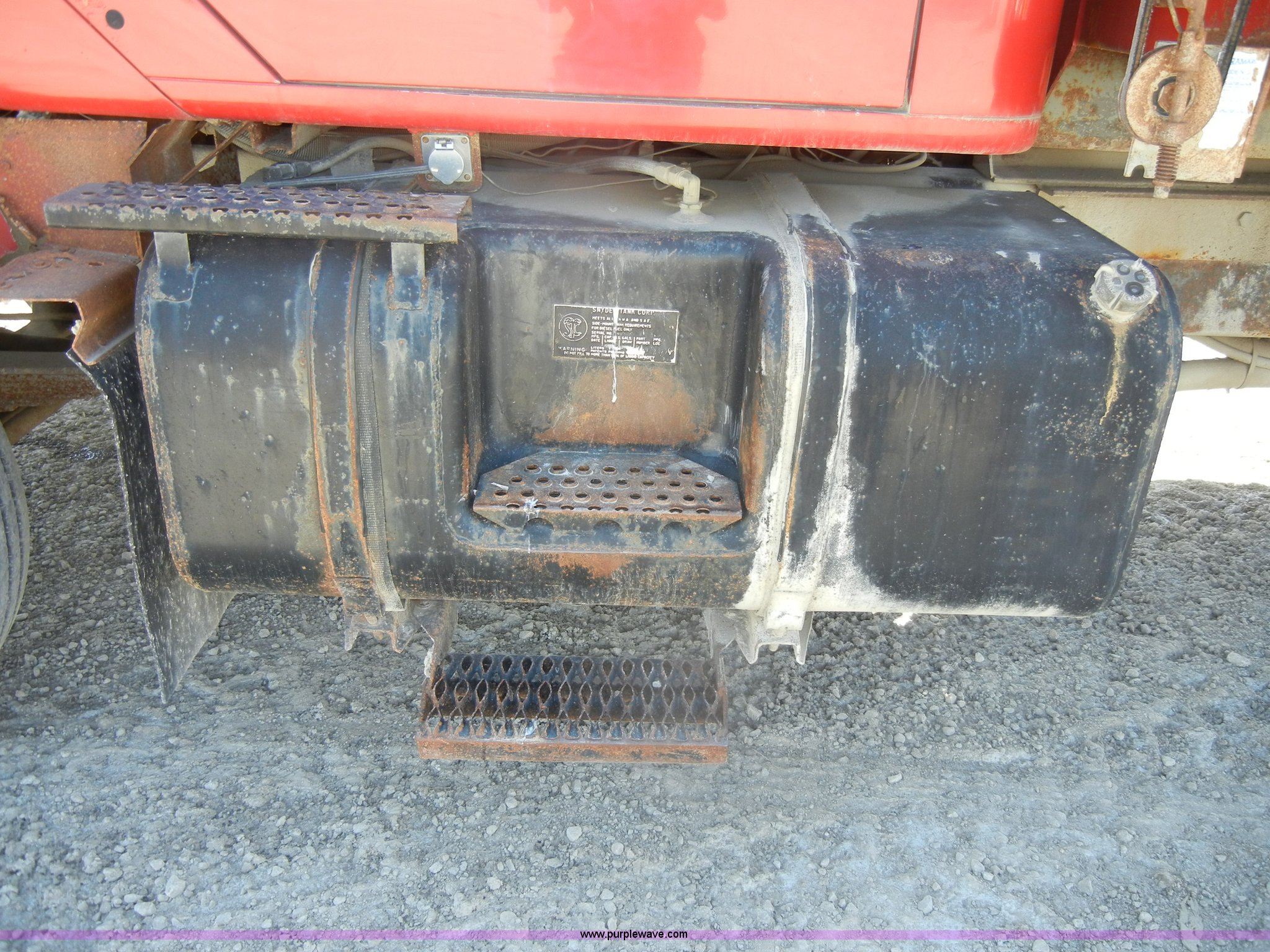 Purple Wave is selling a used Construction Dump Truck in Kansas. This item is a 1994 International 2574 dump truck with the following: 322,074 miles on odometer, Caterpillar 3176 10.3L diesel engine, Spicer 10 speed manual transmission, AM/FM, Air suspension seat, Heated mirrors, Bumper, Rusted, Block heater, STE dump bed, Damaged underside, Air end gate, 104 gallon fuel tank, Spring suspension, Wet kit, Rear hydraulic hookups, Force front PTO mount, Air brakes, Spreader and plow controls, 11R22.5 tires, AC needs charged, Cruise control inoperable, Cosmetic damage to hood, Unit# 26