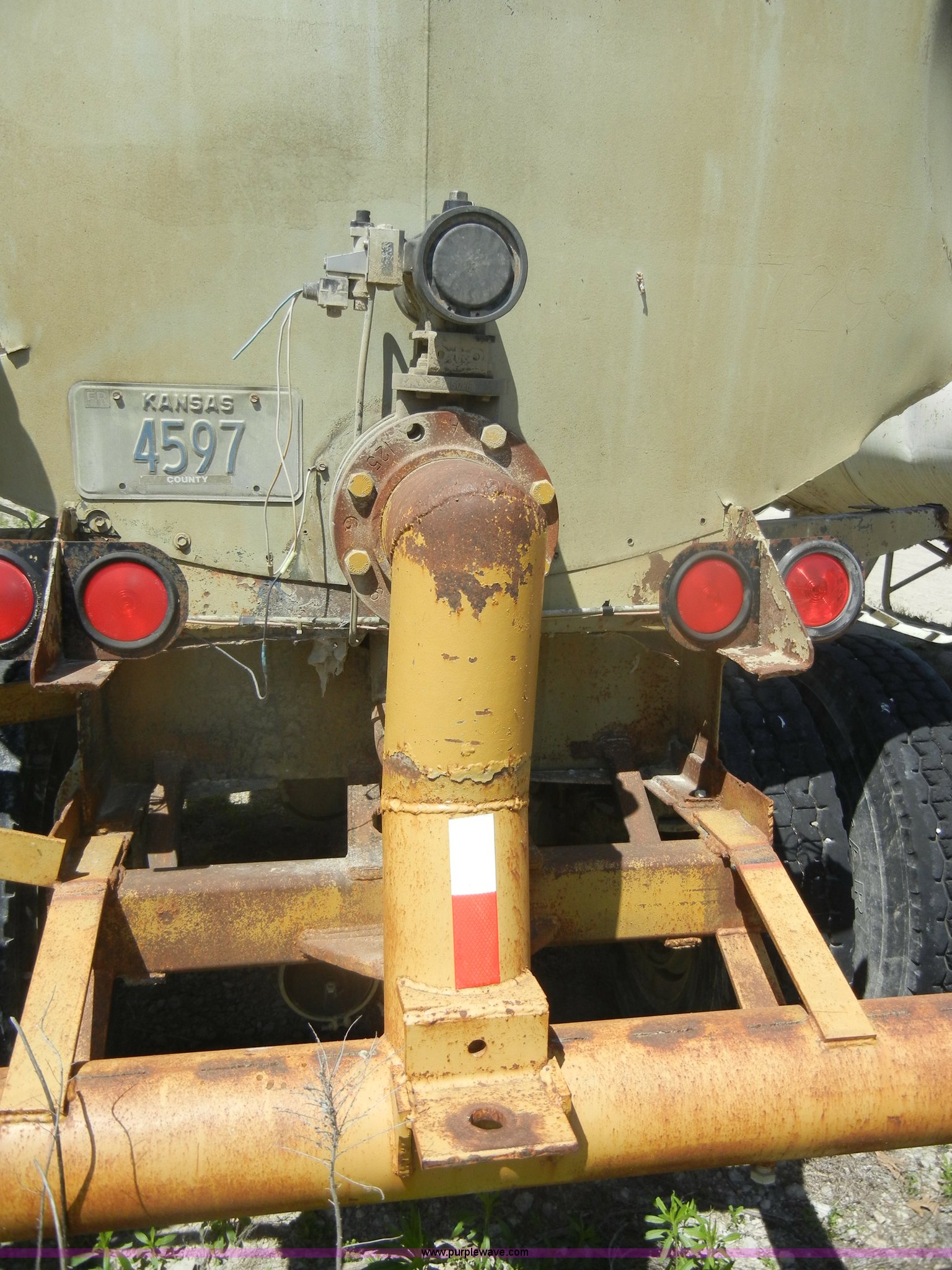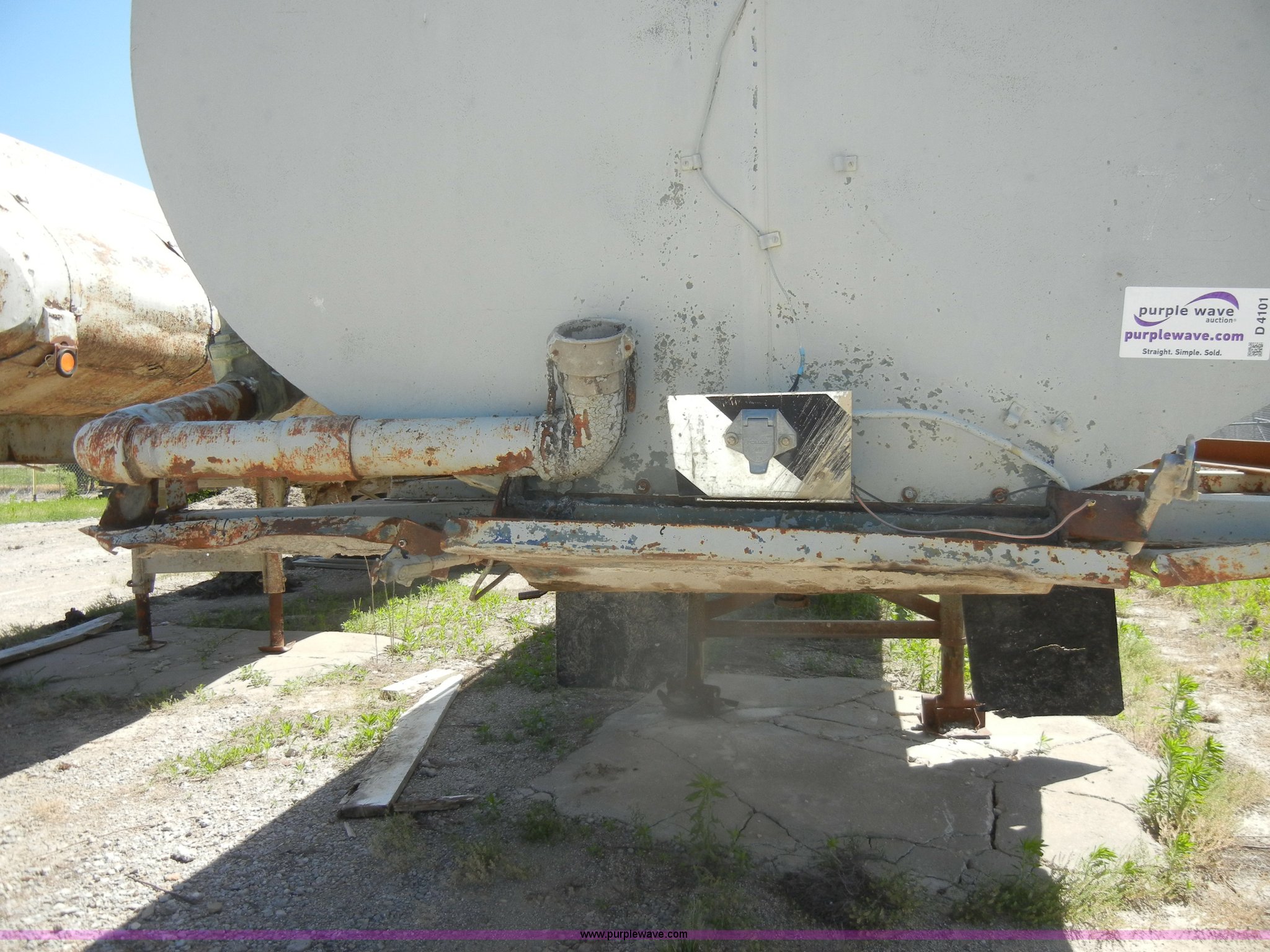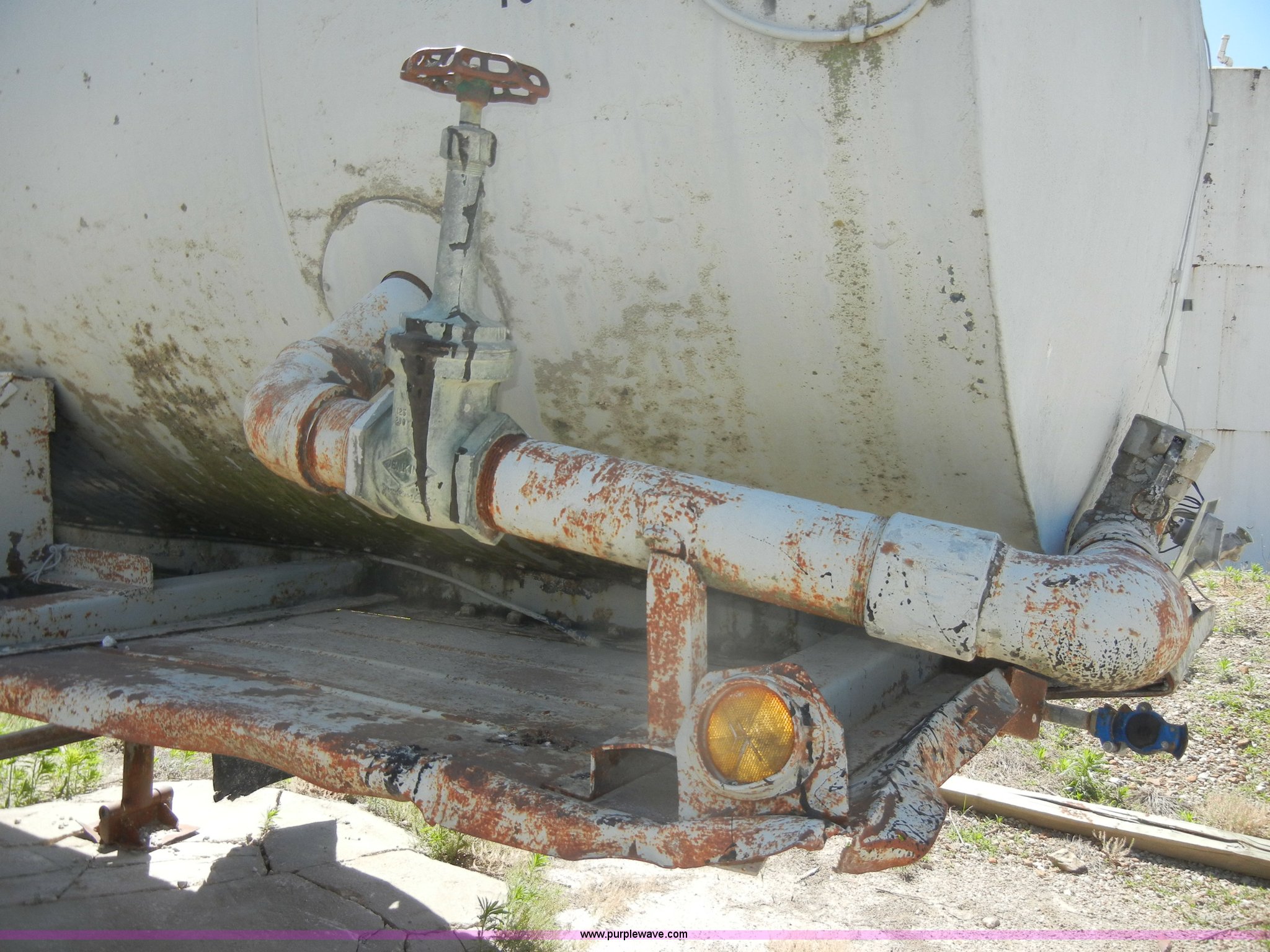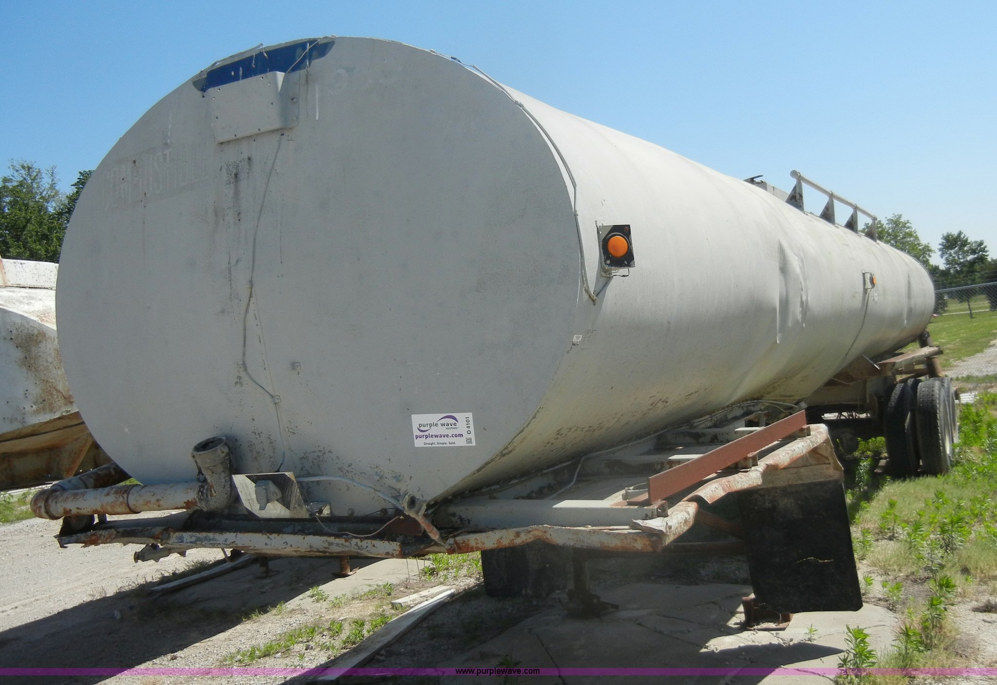 Purple Wave is selling a used Tank Trailer in Kansas. This item is a 1966 Standard Steel Works water tanker with the following: 6,500 gallon capacity, 10 gauge material, Spring suspension, 8" spray bar, Pump driven, 10.00R20 tires, Worn, Dents, Body rust, Will not hold water overnight