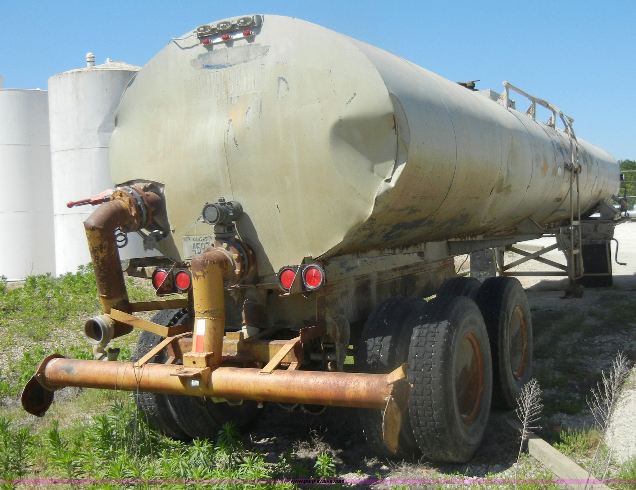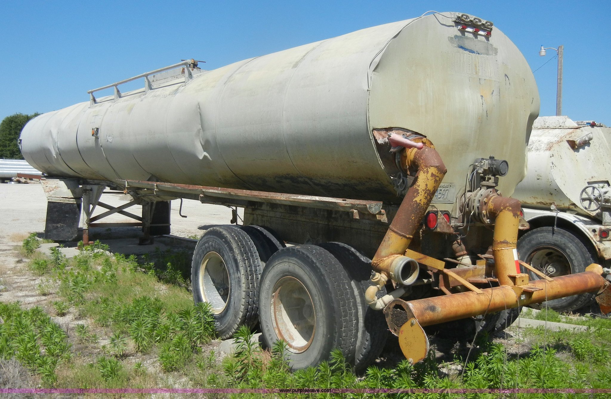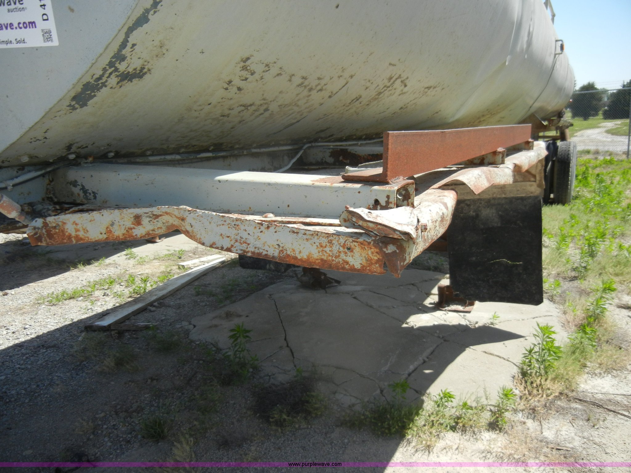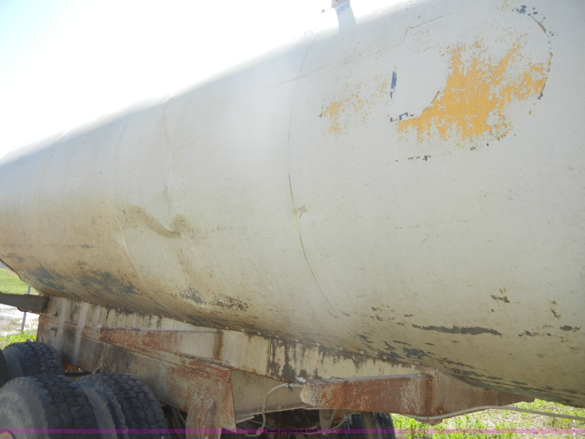 Purple Wave is selling a used Tank Trailer in Kansas. This item is a 1966 Standard Steel Works water tanker with the following: 6,500 gallon capacity, 10 gauge material, Spring suspension, 8" spray bar, Pump driven, 10.00R20 tires, Worn, Dents, Body rust, Will not hold water overnight