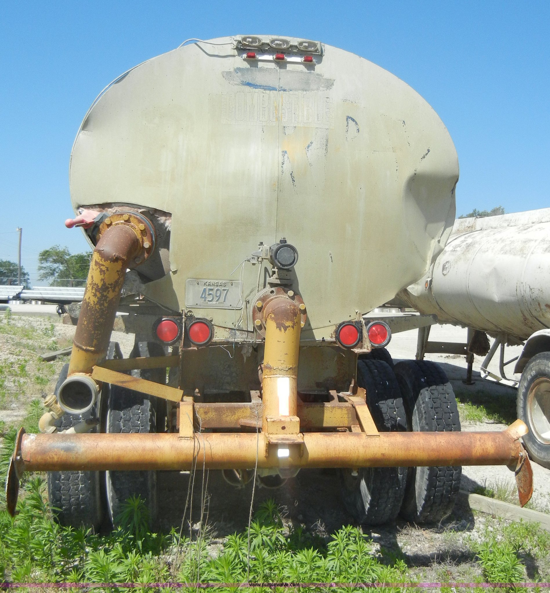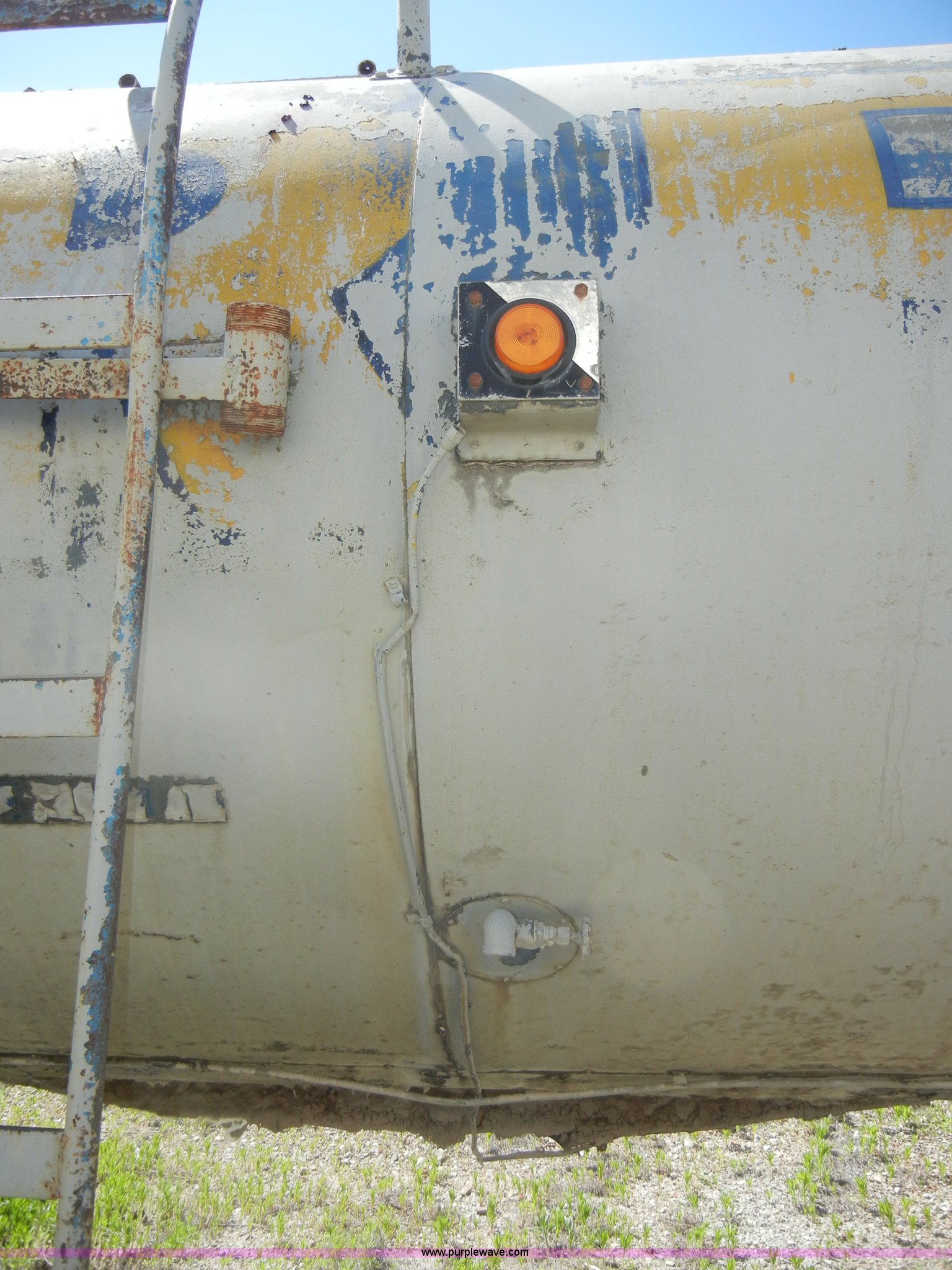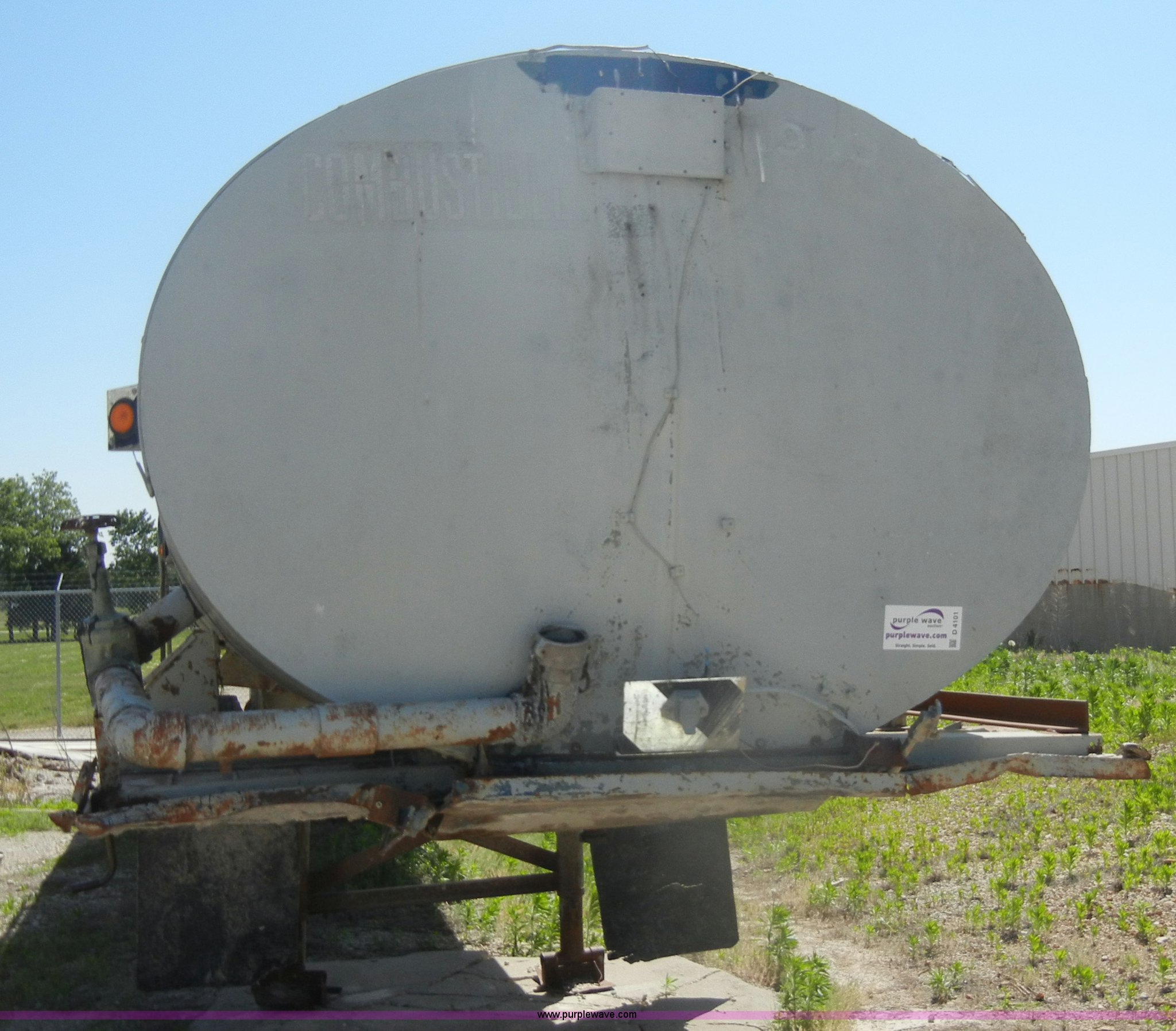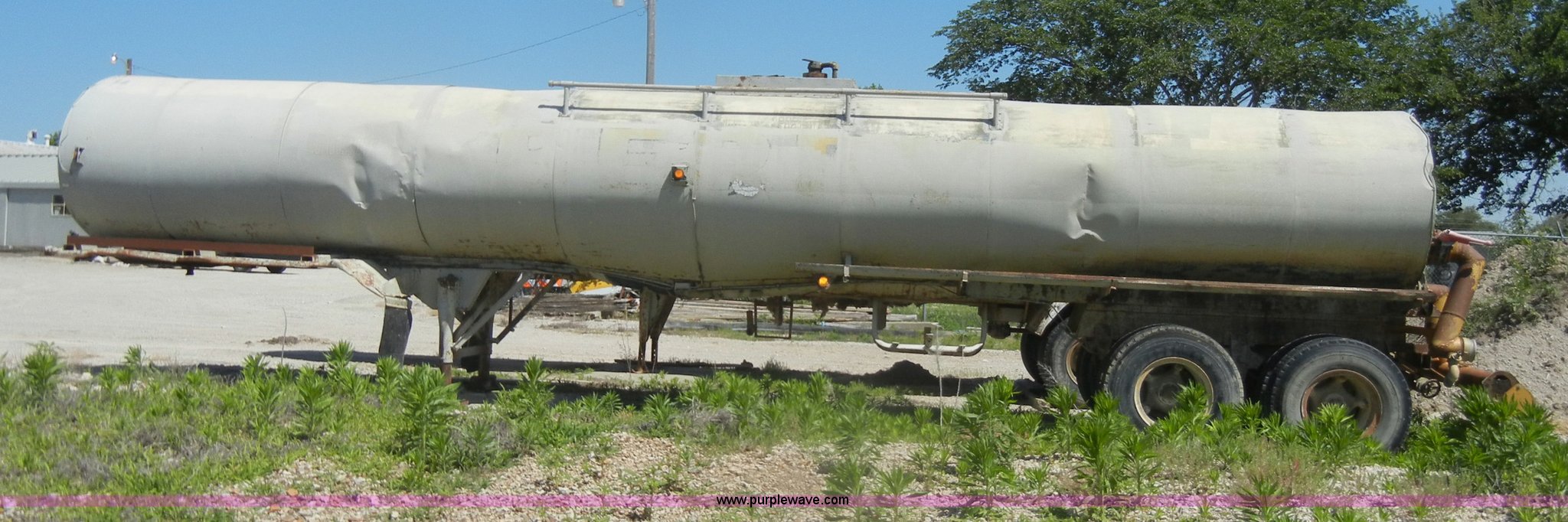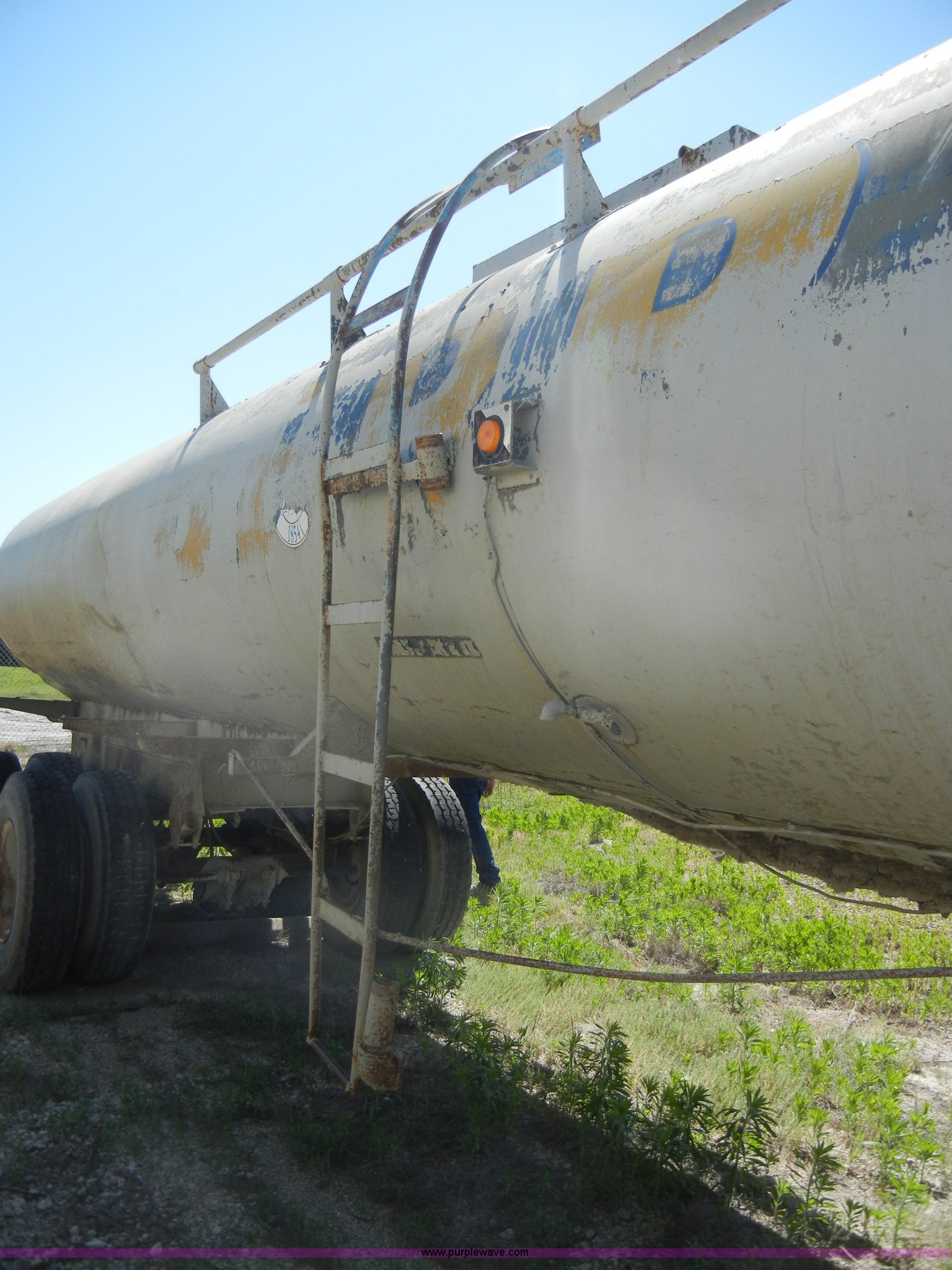 Purple Wave is selling a used Tank Trailer in Kansas. This item is a 1966 Standard Steel Works water tanker with the following: 6,500 gallon capacity, 10 gauge material, Spring suspension, 8" spray bar, Pump driven, 10.00R20 tires, Worn, Dents, Body rust, Will not hold water overnight