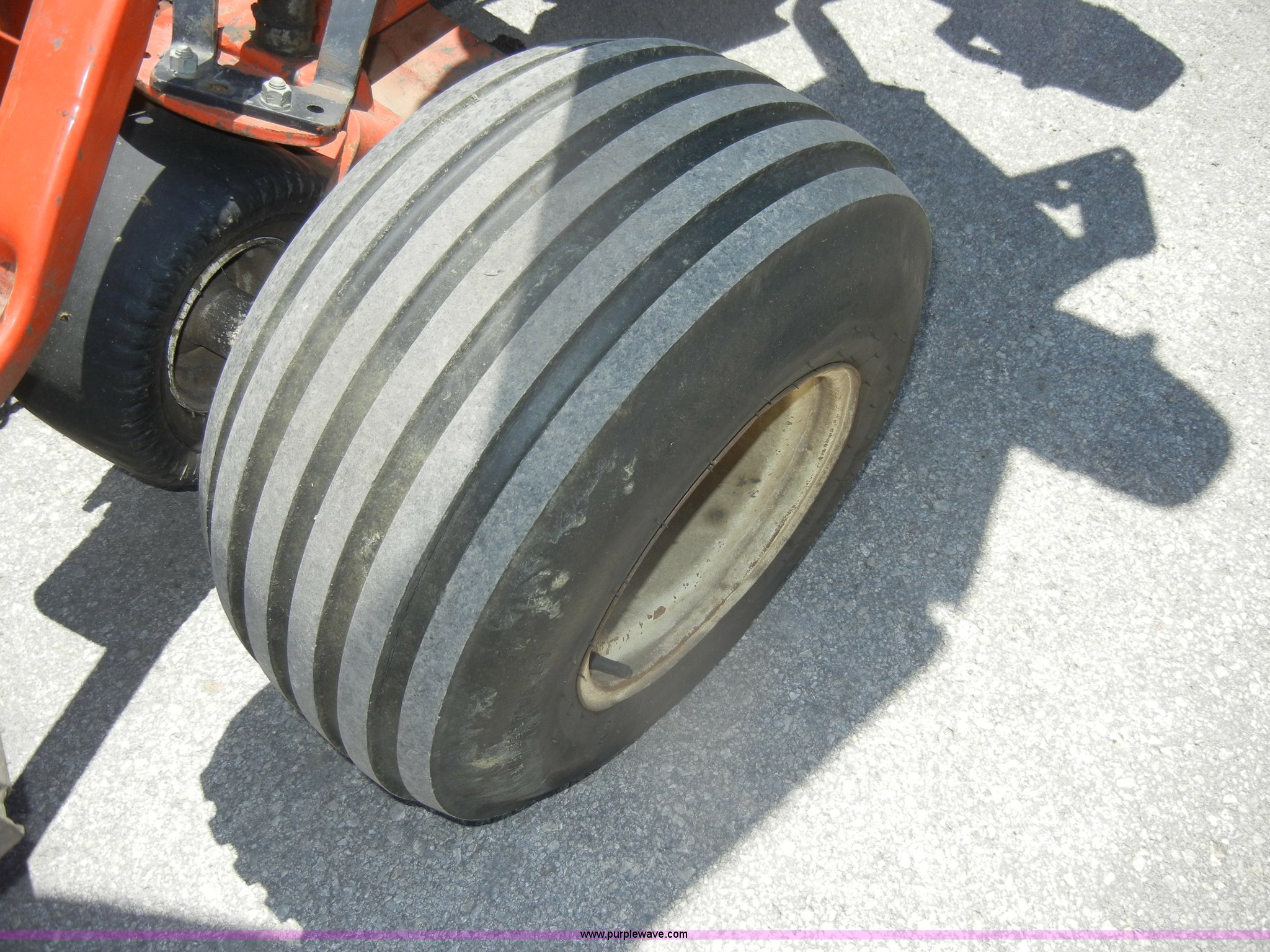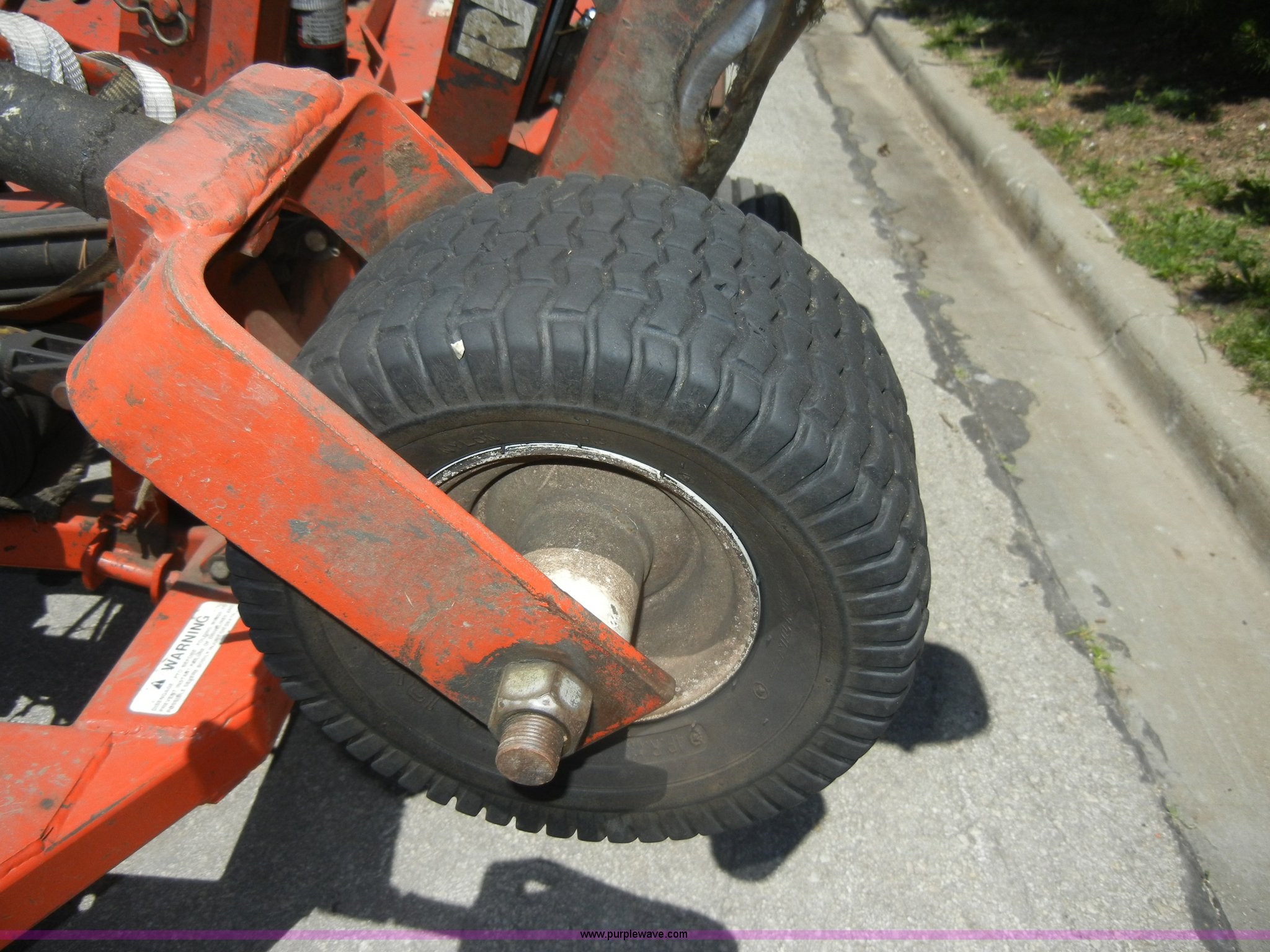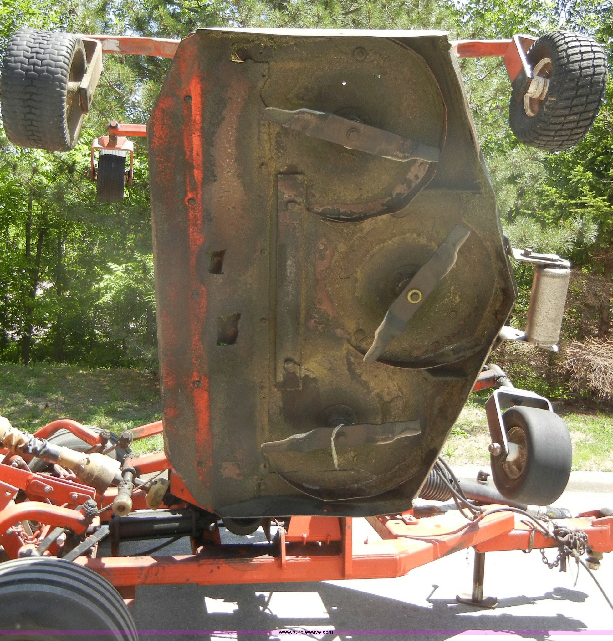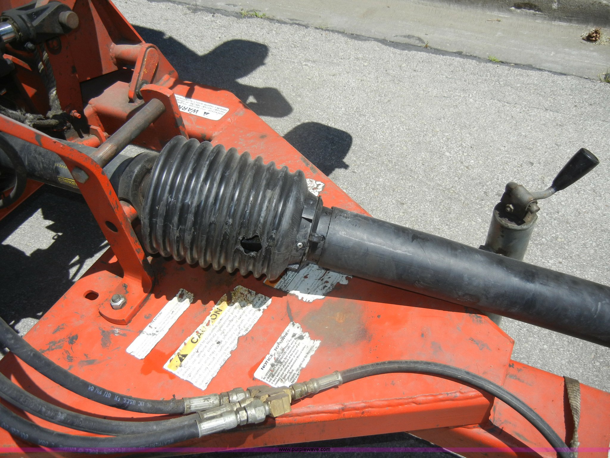 Purple Wave is selling a used Mower, Cutter, Shredder in Kansas. This item is a Rhino TX145 grounds keeper mower with the following: 14.5' cut, (2) 5' side wings, Serials 10530C, 10530A, One PTO shaft broken, 6' rear mower, Serial 10530B, Pin hitch, Hydraulics, 540 PTO, 13.6.50-6 deck tires, Foam filled, 26x12.00-12 main tires, Serial 10530