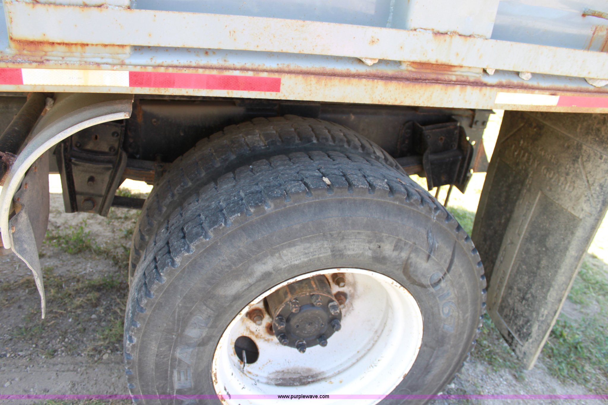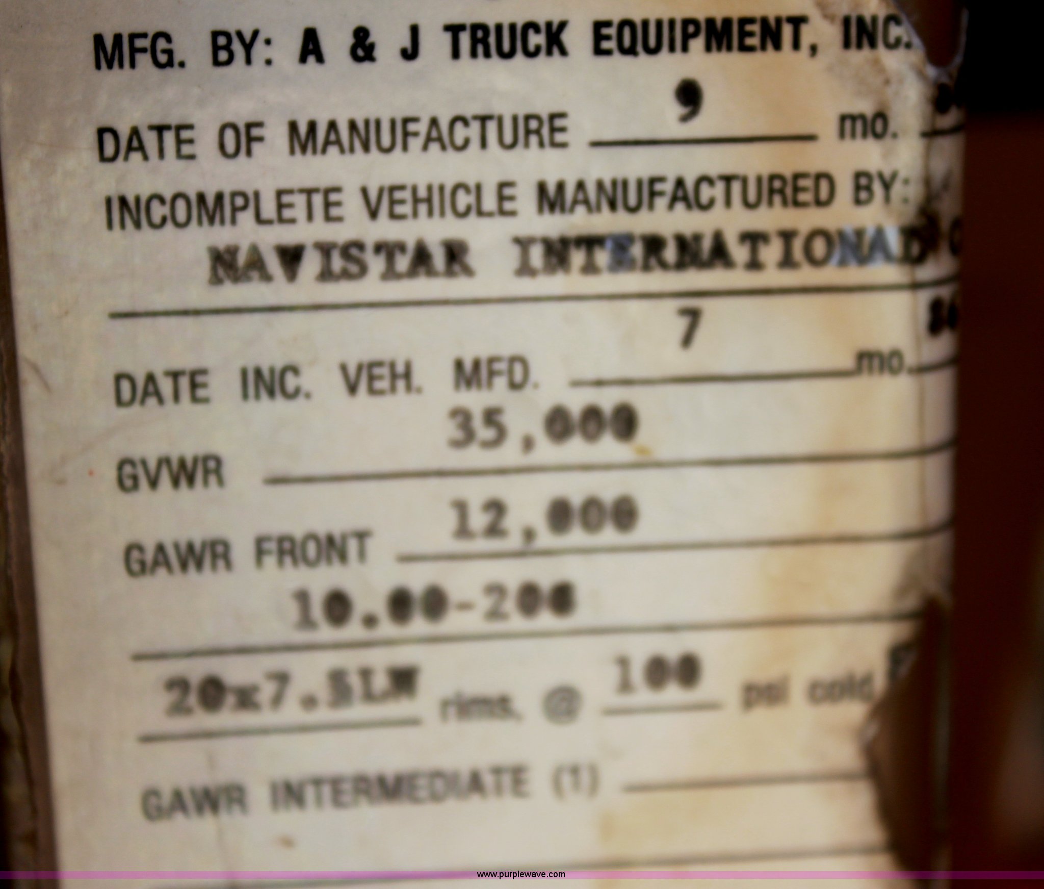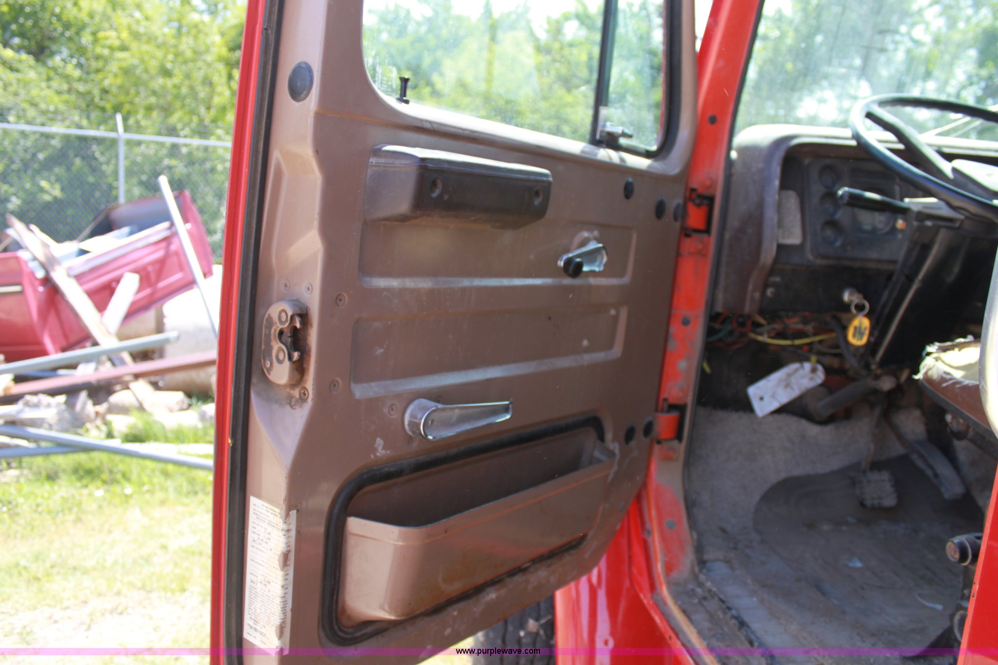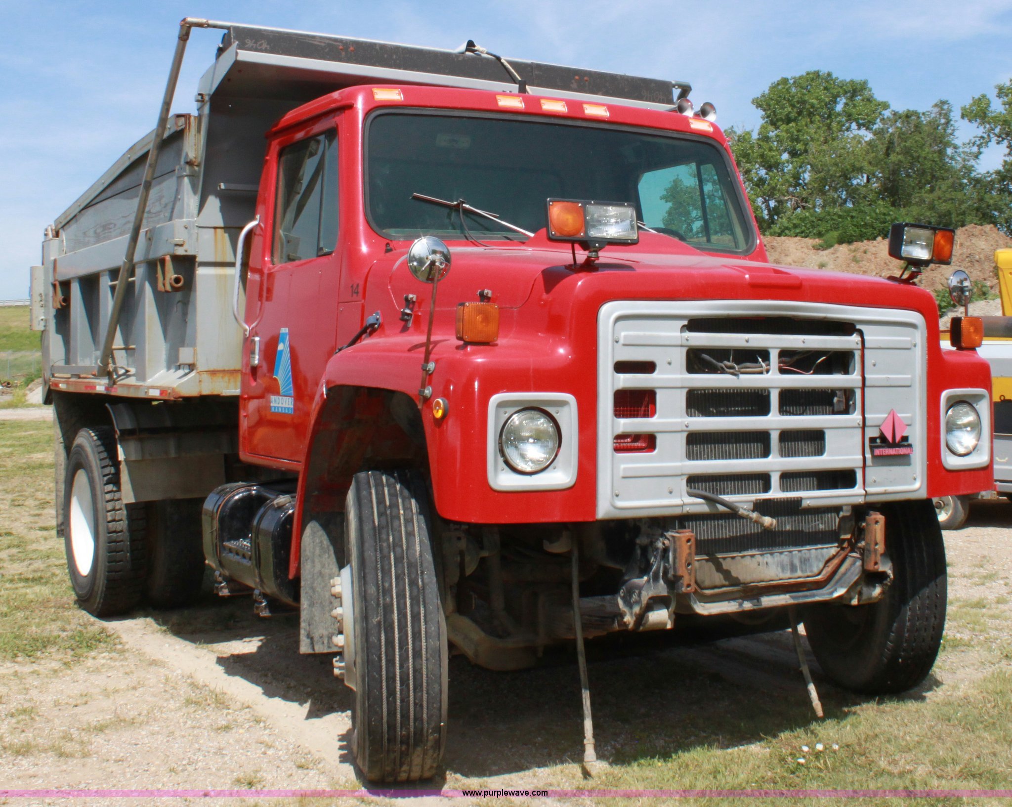 Purple Wave is selling a used Construction Dump Truck in Kansas. This item is a 1986 International 1754 dump truck with the following: 142,699 miles on odometer, Detroit 9.0L V8 diesel engine, Locked up, Morse automatic transmission, Heat, Spring suspension seat, Block heater, Pintle hitch, Hydraulic air assist brakes, Chelsea PTO, In cab spreader and plow controls, Throttle lock, Manual end gate release, Manual roll over tarp, Rear hydraulic remotes, 50 gallon fuel tank, 152" wheelbase, 11R22.5 tires, Engine locked up