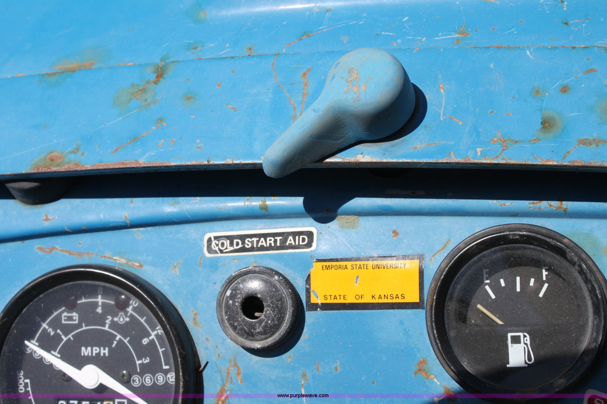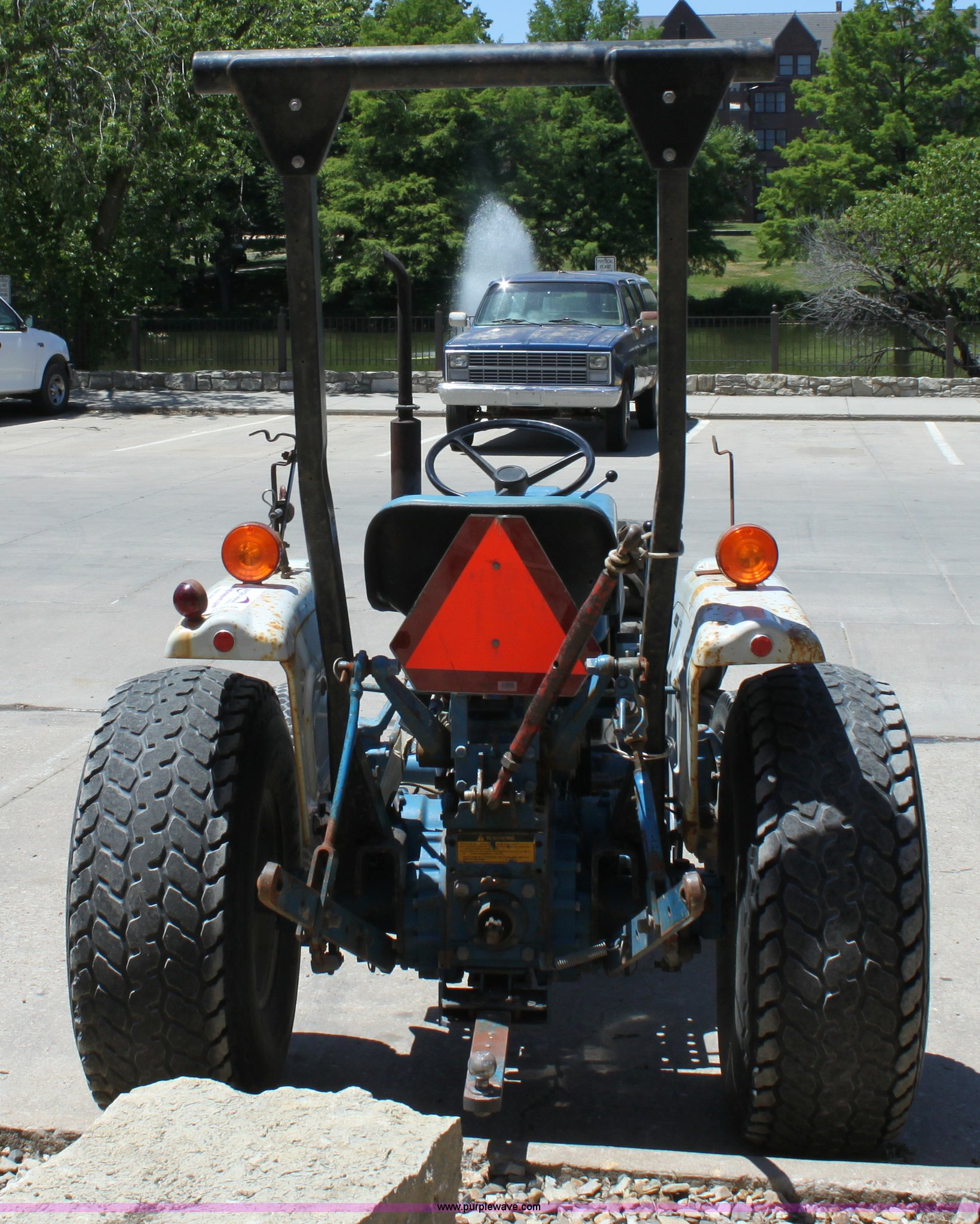 Ford 1710 tractor. 2,754 hours on meter, Ford three cylinder diesel engine, 12F-4R gears, Four wheel drive, Three point, 540 PTO, Draw bar, Joystick control for auxiliary hydraulics, Front weights, Comfort cover included, New Holland 702C 7' snow plow included, 27x8.50-15NHS front tires, 13.6-16 rear tires, Extra set of front and rear tires included Casting is cracked, Serial UL17465. Emporia State University. 1200 Commercial. Emporia, KS 66801