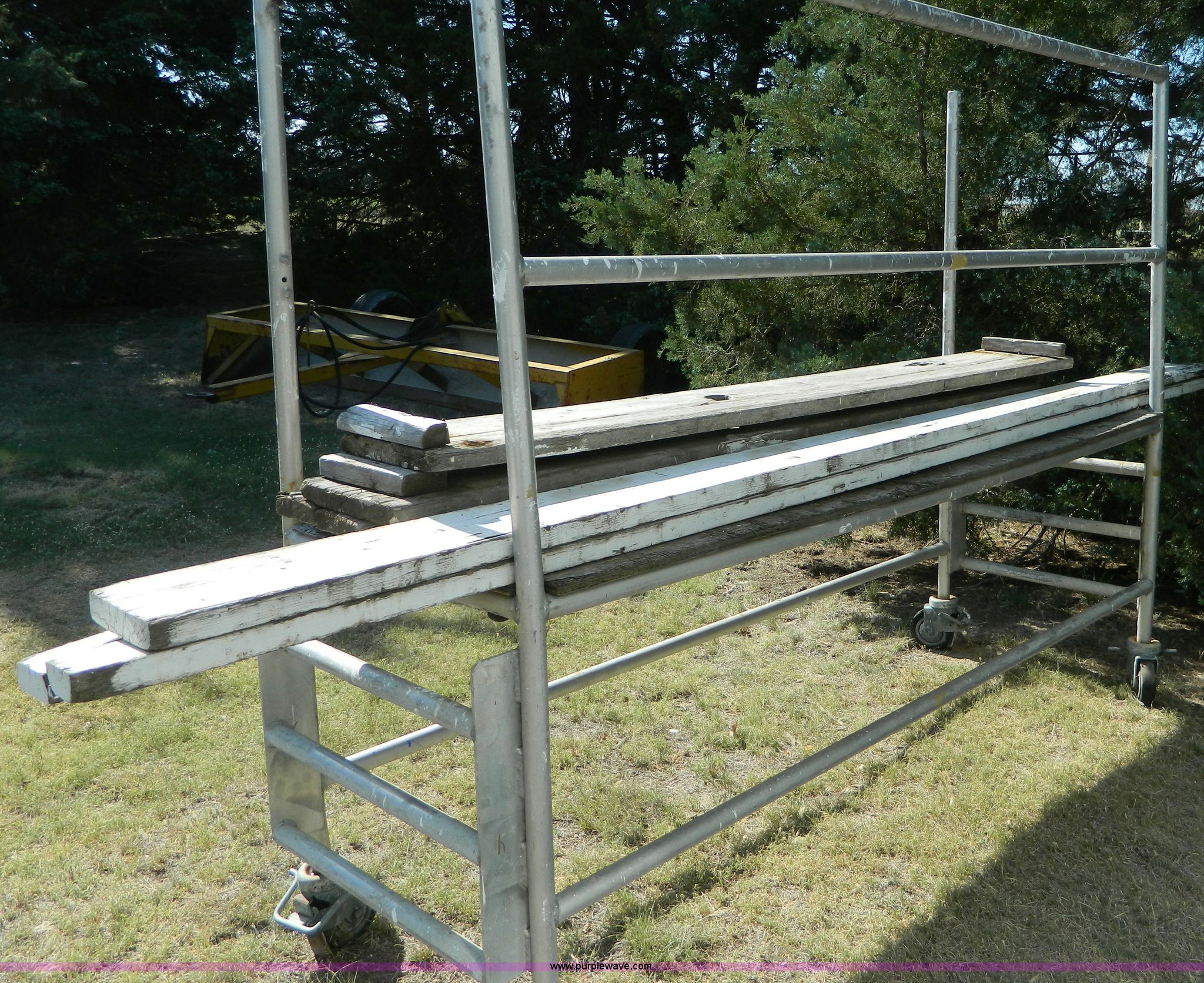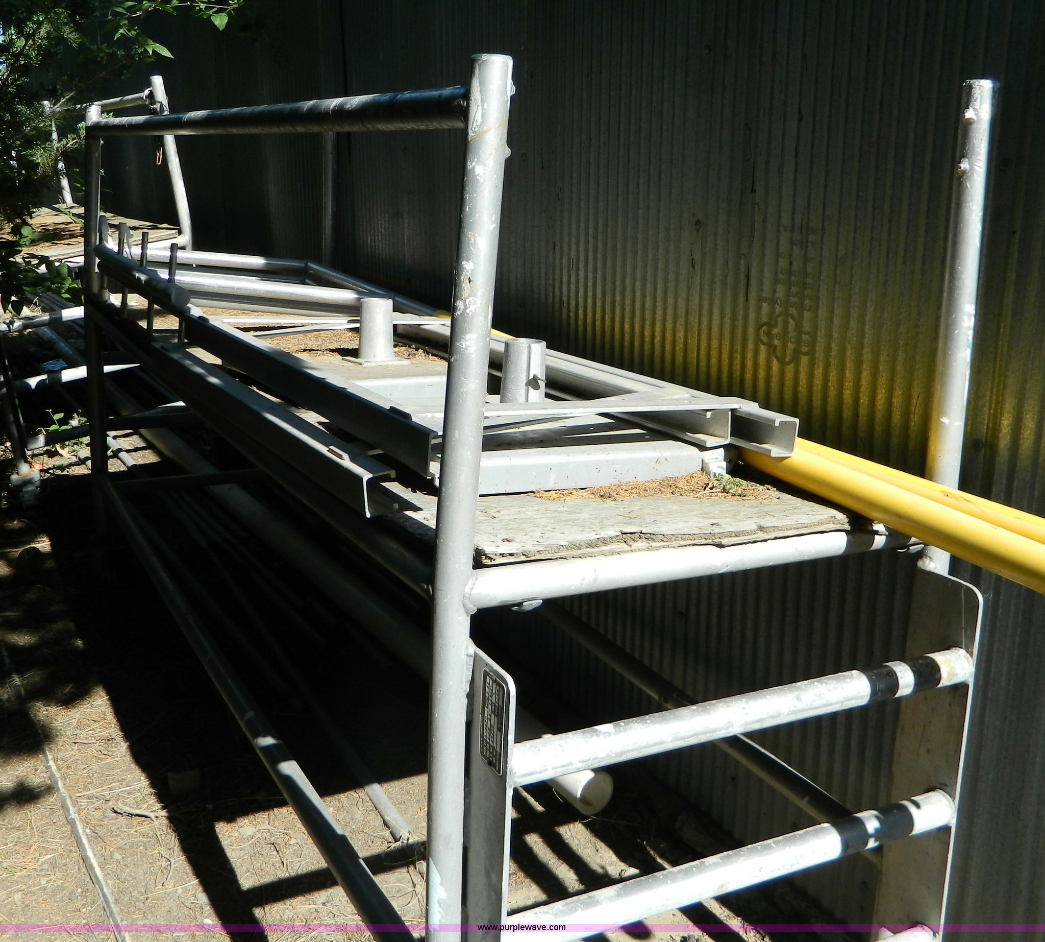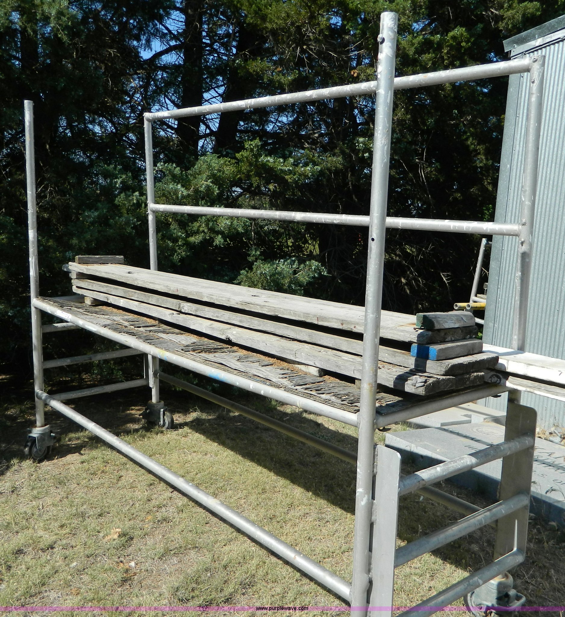 Purple Wave is selling a used Tools in Kansas. This item is a (3) 8'L aluminum scaffolds with the following: Planks not included, Caster wheel broken