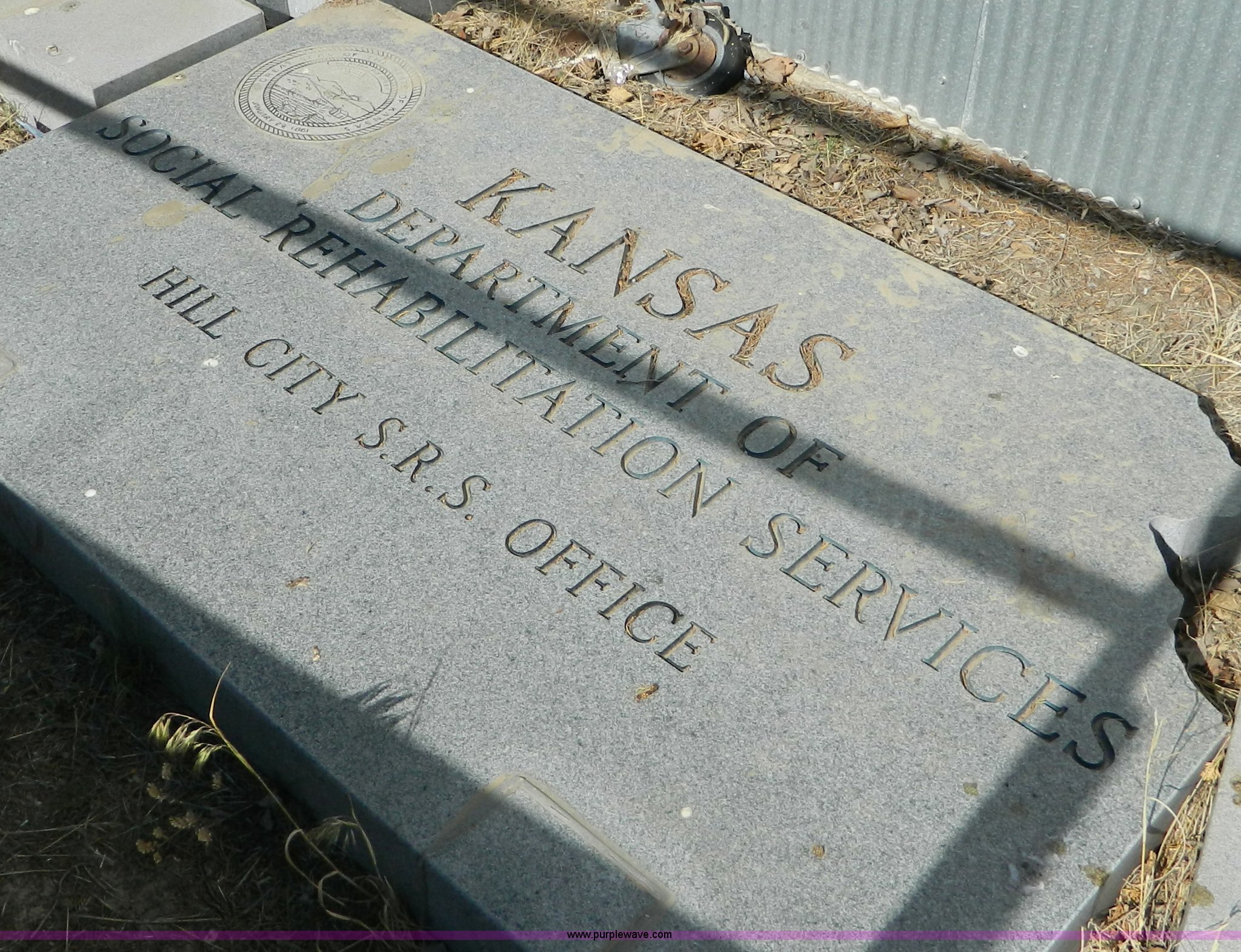 Granite stone sign. 5'L x 3'H x 4.5" thick. USD 281. 117 W 3rd. Hill City, KS 67642