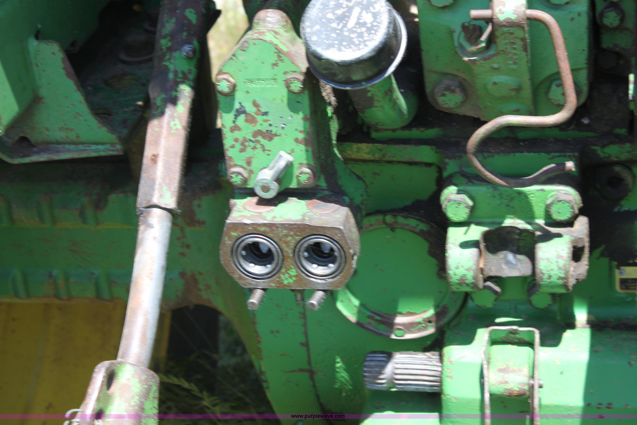 Purple Wave is selling a used Tractor in Kansas. This item is a 1973 John Deere 4430 tractor with the following: 9,021 hours on meter, Six cylinder diesel engine, Serial 6404TR-07534026RG, Manual transmission, 8F-1R, Differential lock, Spring seat, Tilt steering wheel, Front and rear work lights, 84" loader bucket, Joystick loader control, Three point hitch, Top link included, Draw bar, 540/1000 PTO, (2) sets of rear hydraulic remotes, Wheel weights, 11-16SL front tires, 18.4-30 rear tires, Serial 4430P06758SR