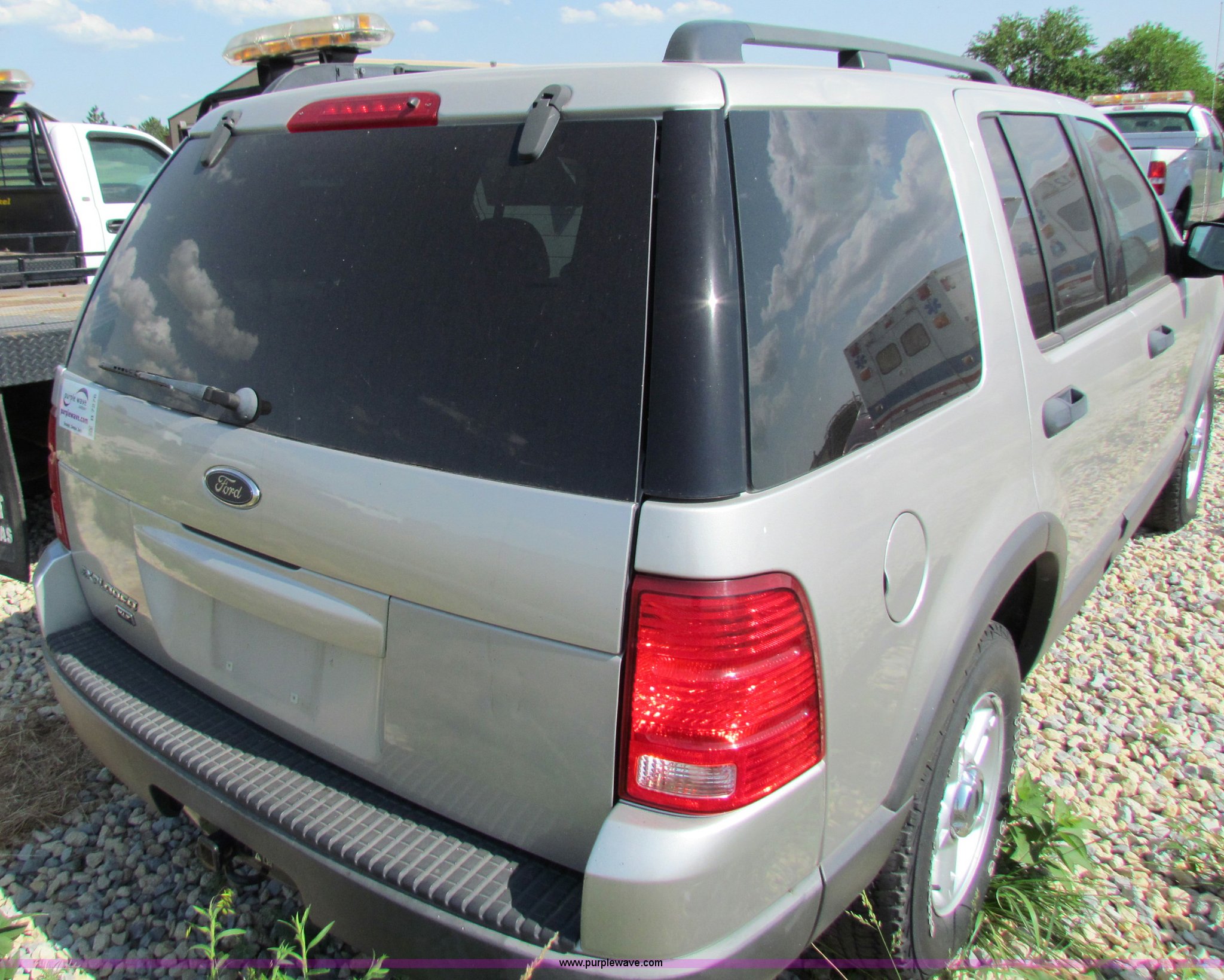 Purple Wave is selling a used Passenger Vehicle in Kansas. This item is a 2003 Ford Explorer XLT SUV with the following: 143,407 miles on odometer, 4.0L V6 EFI gas engine, Automatic transmission, Four wheel drive, Tilt, Cruise, AM/FM/CD, Power windows and locks, 235/70R16 tires, No battery, Will not start, Interior/exterior cosmetic damage