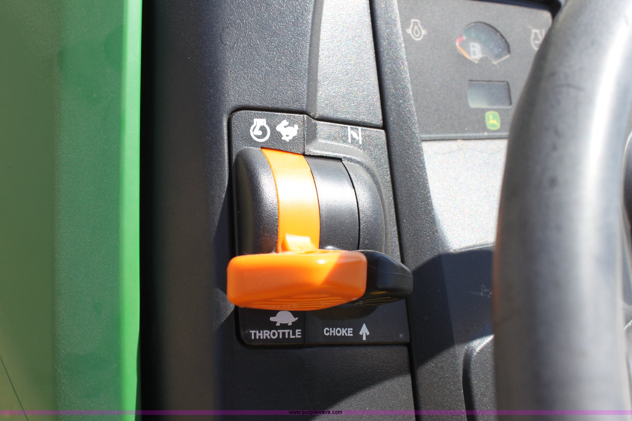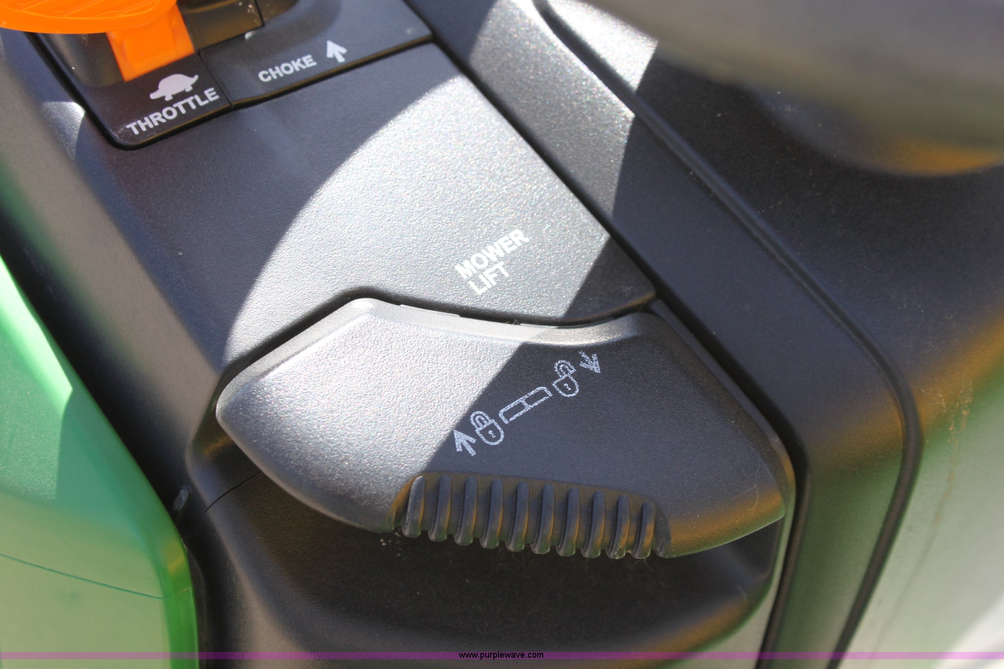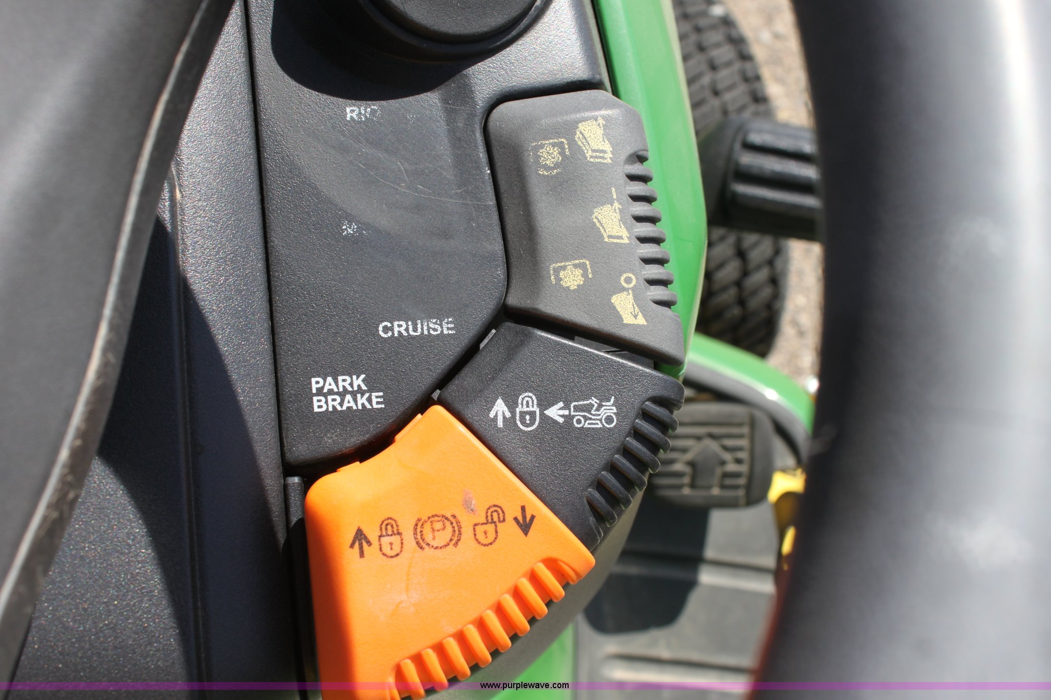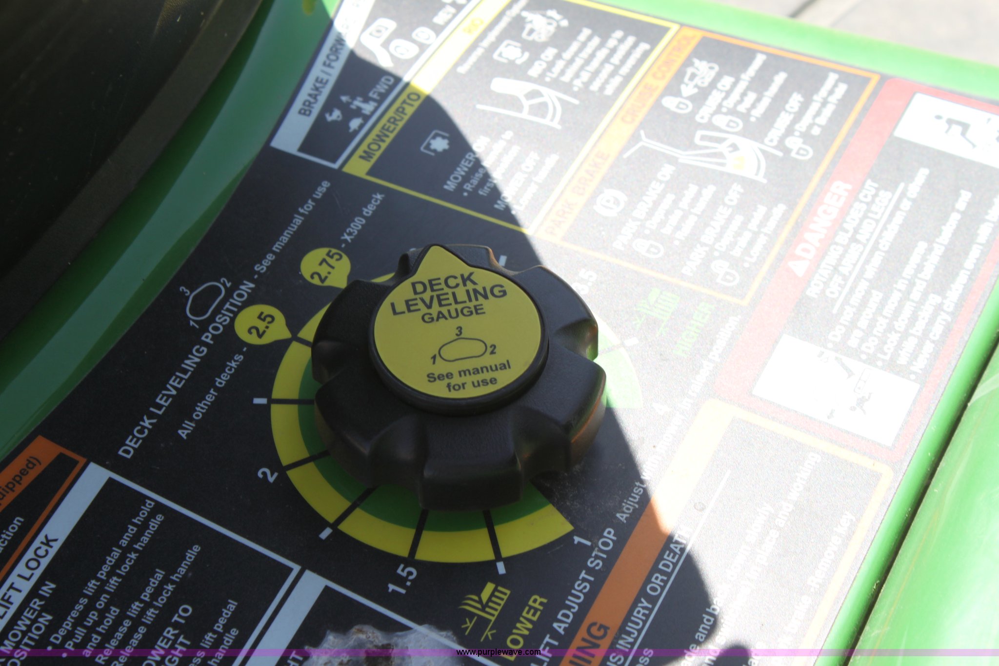 Purple Wave is selling a used Lawn Mower in Kansas. This item is a 2008 John Deere X500 mower with the following: 455 hours on meter, 48" cut, Kawasaki gas engine, Hydrostatic transmission, Deck leveling gauge, Locking differential, Hydraulic deck height adjustment, Front work lights, Cup holder, Hood is cracked, PIN M0X500A033507, Stock# 68561