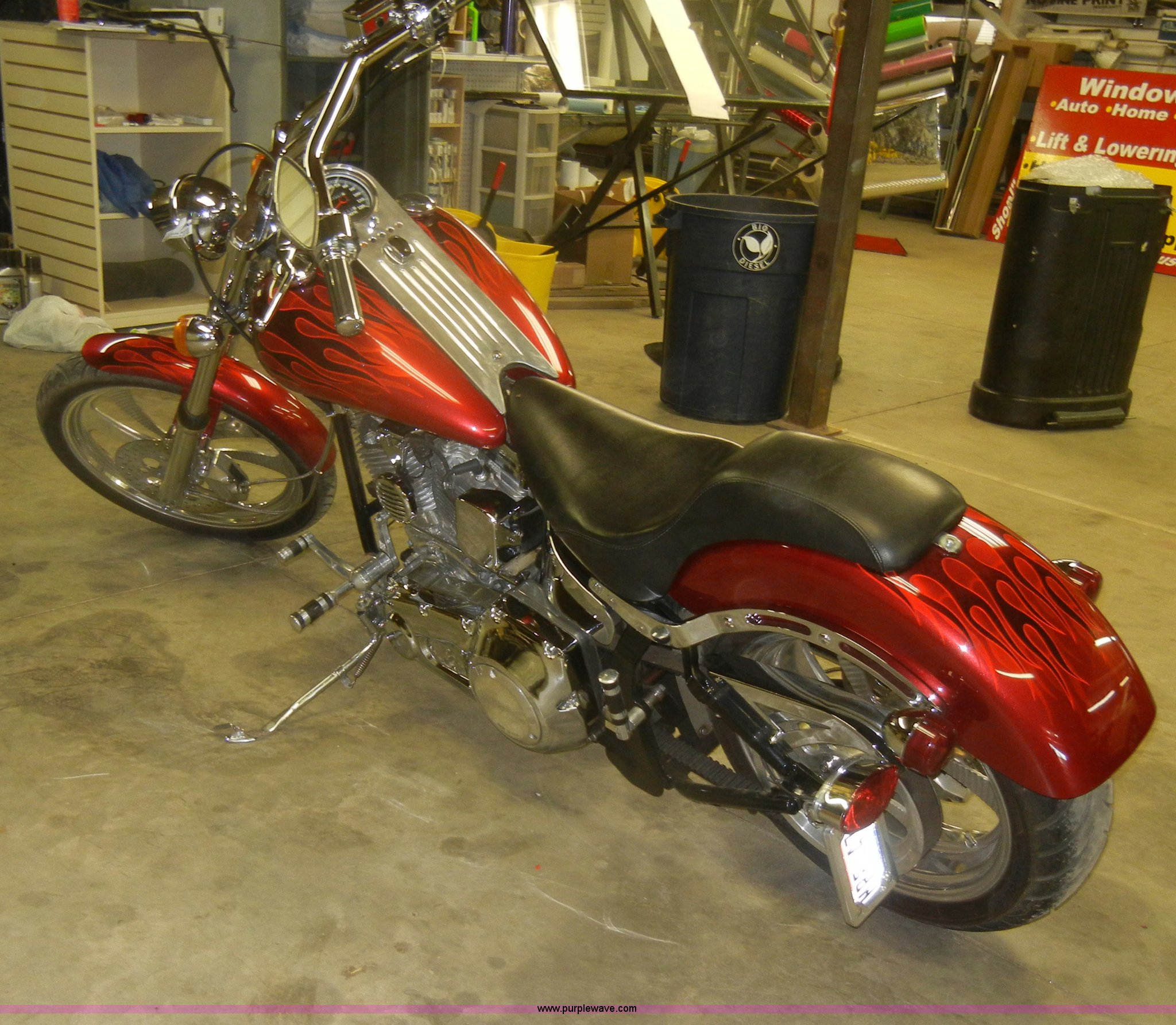 Purple Wave is selling a used Motorcycle in Kansas. This item is a 1999 Ultra Wide Drive One custom motorcycle with the following: 7,001 miles on odometer, S&S 113 CID engine, 1,852 cc, Five speed S&S transmission, Belt driven, 4.2 gallon dual fuel tanks, Arlen Ness 2" double chrome slasher exhaust, Custom flame paint job, Disk brakes, Custom billet wheels, 90/90-21 front tire, 180/55R18 rear tire, Owners manual
