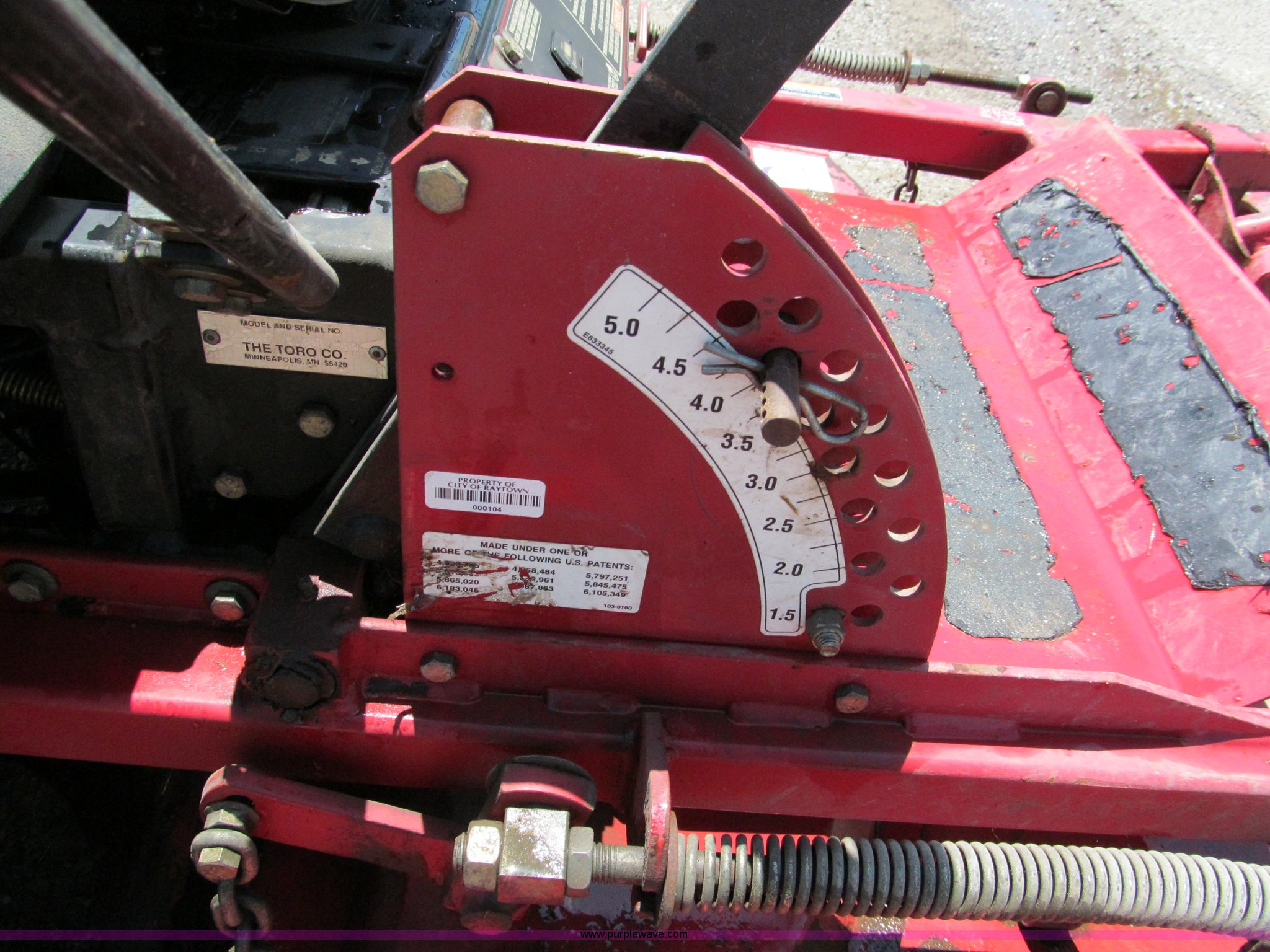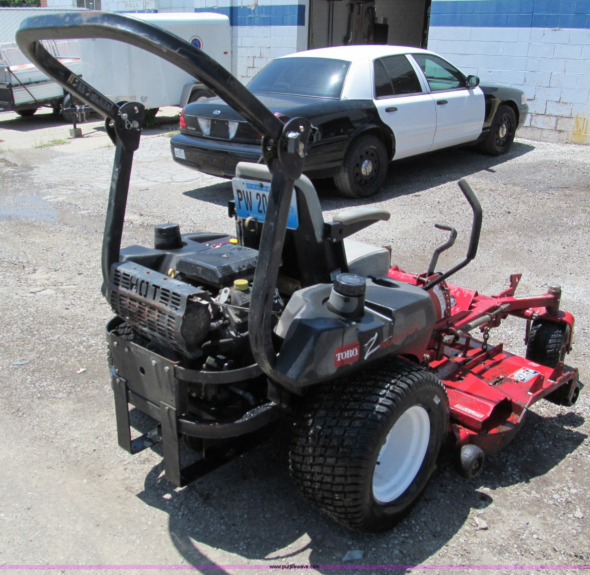 Purple Wave is selling a used Commercial Turf Mower in Missouri. This item is a Toro Z Master 253 ZTR commercial lawn mower with the following: 819 hours on meter, 62" cut, Kohler 25 HP gas engine, 674cc, Serial 3109100651, 12v electric start, ROPS, Side discharge, 13x6.5 front tires, 24x12 rear tires, One recently replaced, Serial 210001480, Cust# 206