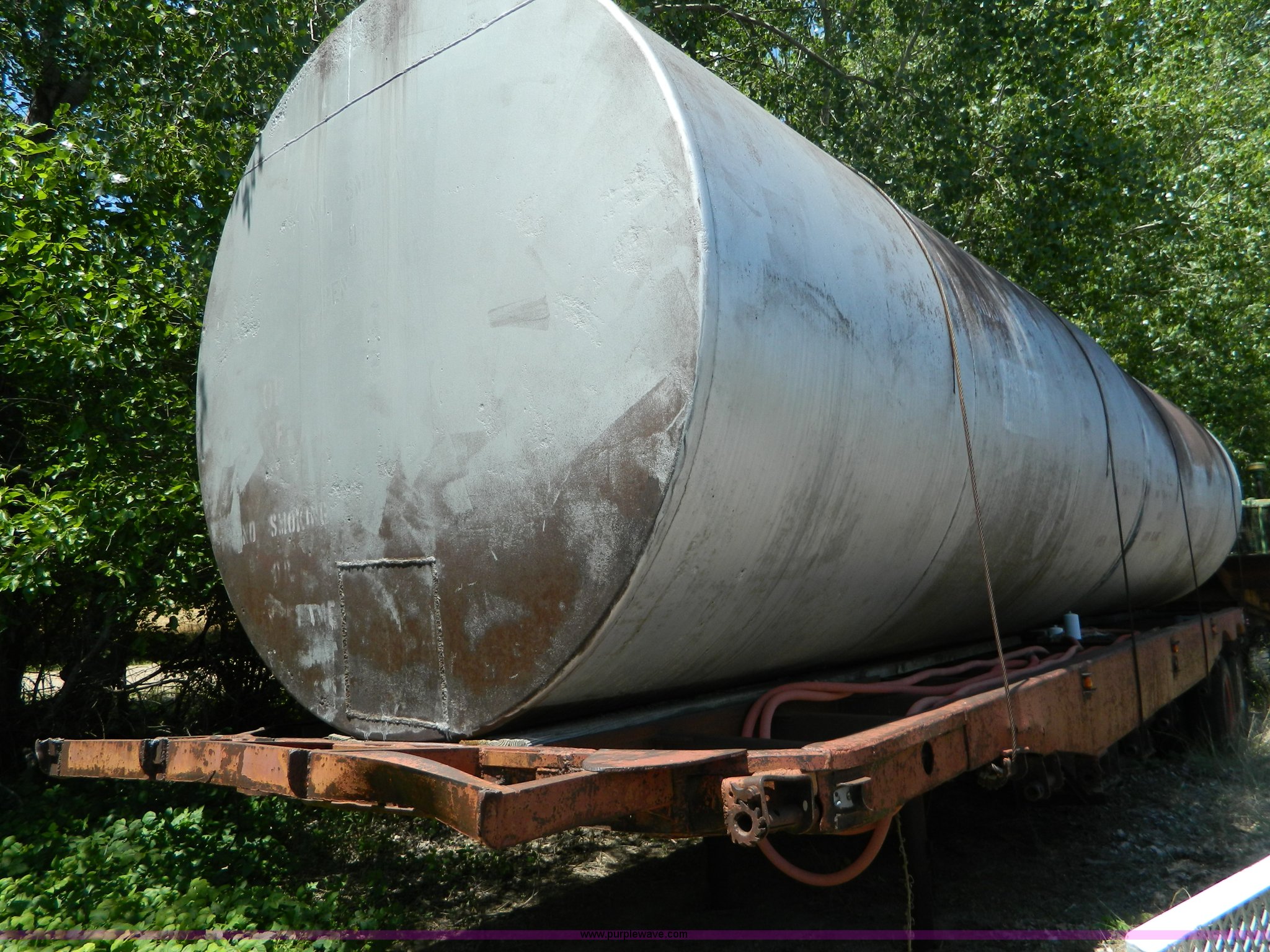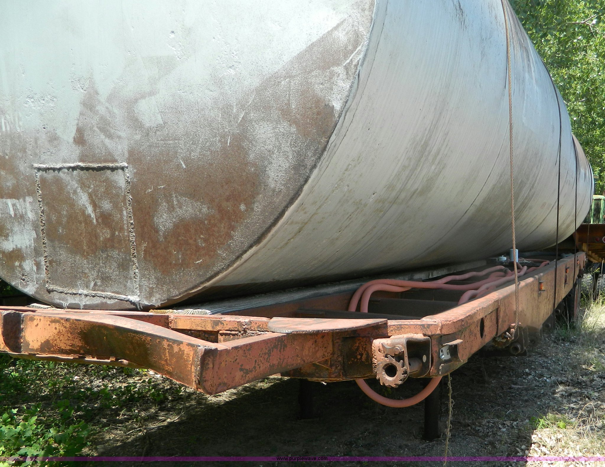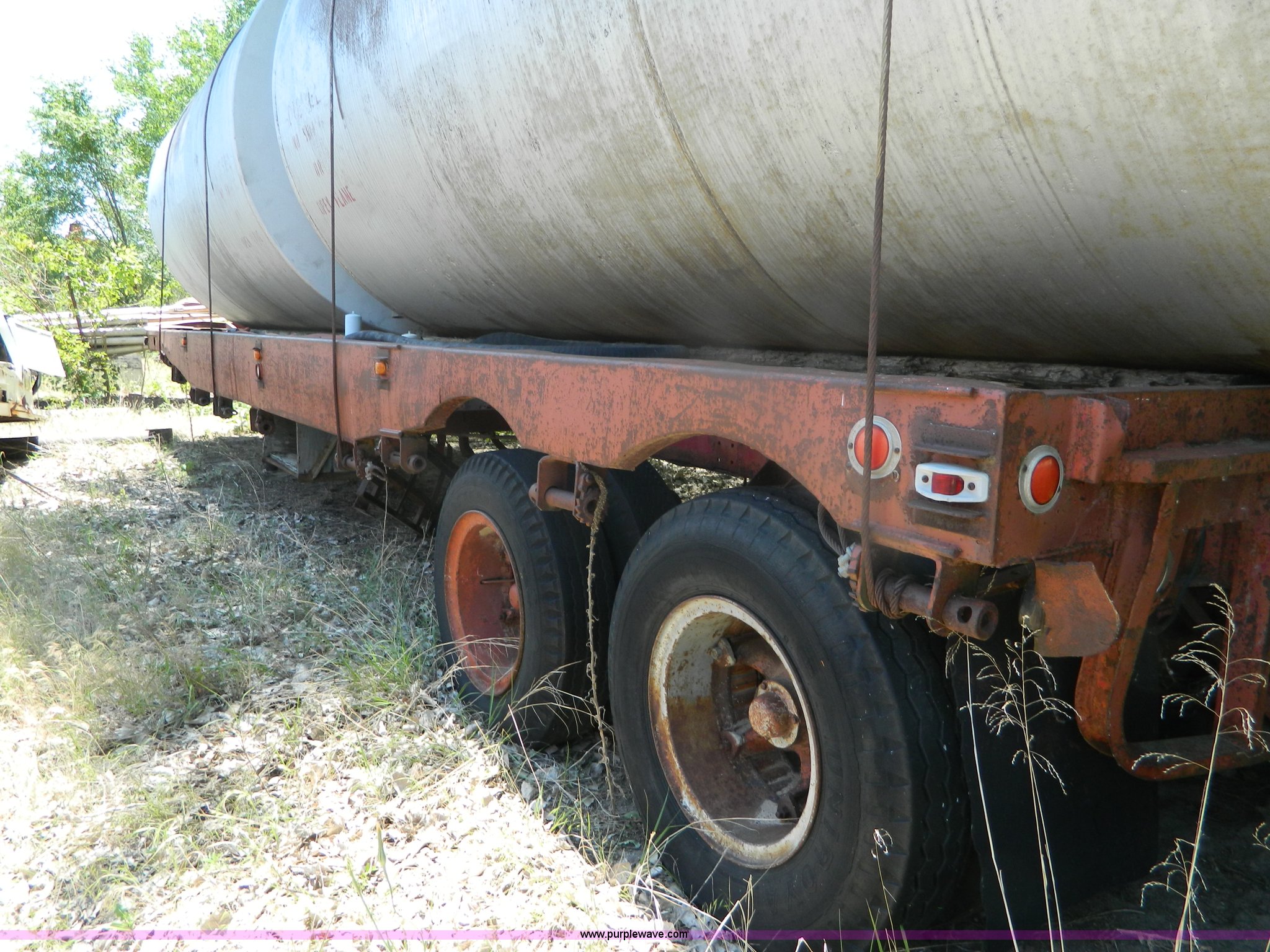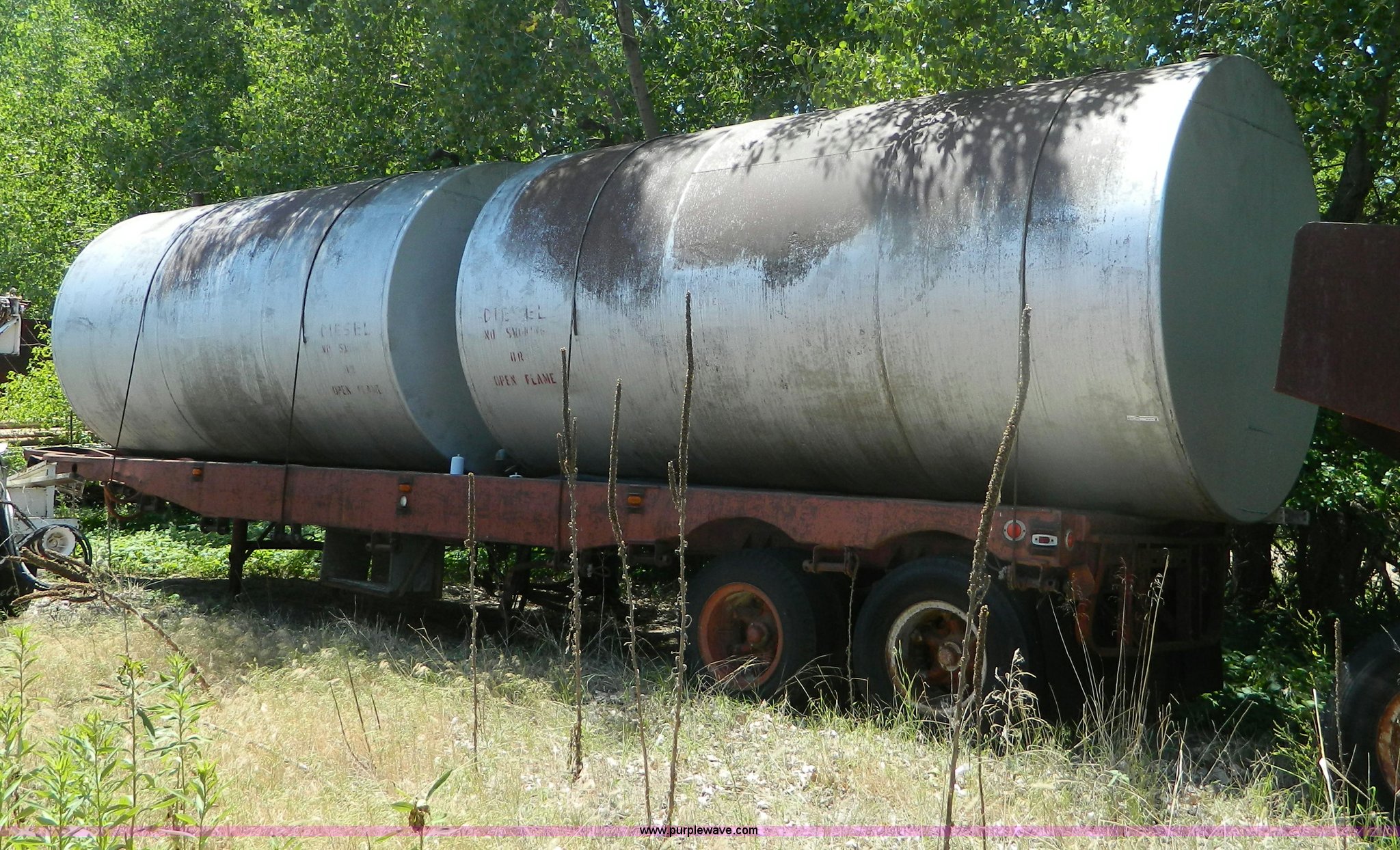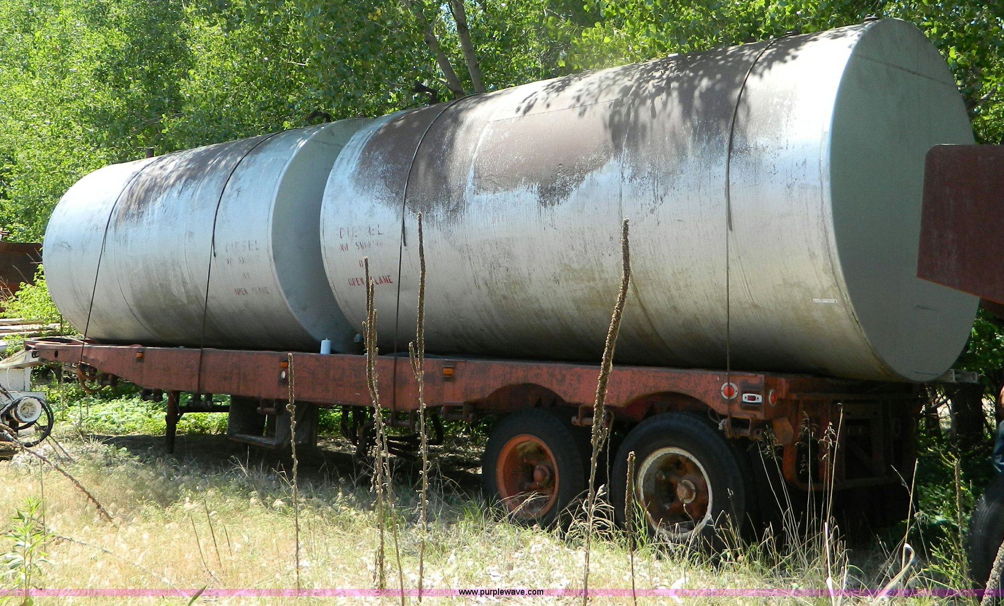 Purple Wave is selling a used Tank Trailer in Kansas. This item is a 1953 Fruehauf trailer with the following: 33' x 96", (2) 6,000 gallon fuel tanks, Tanks may contain fuel residue, 16' x 8', Unknown working condition