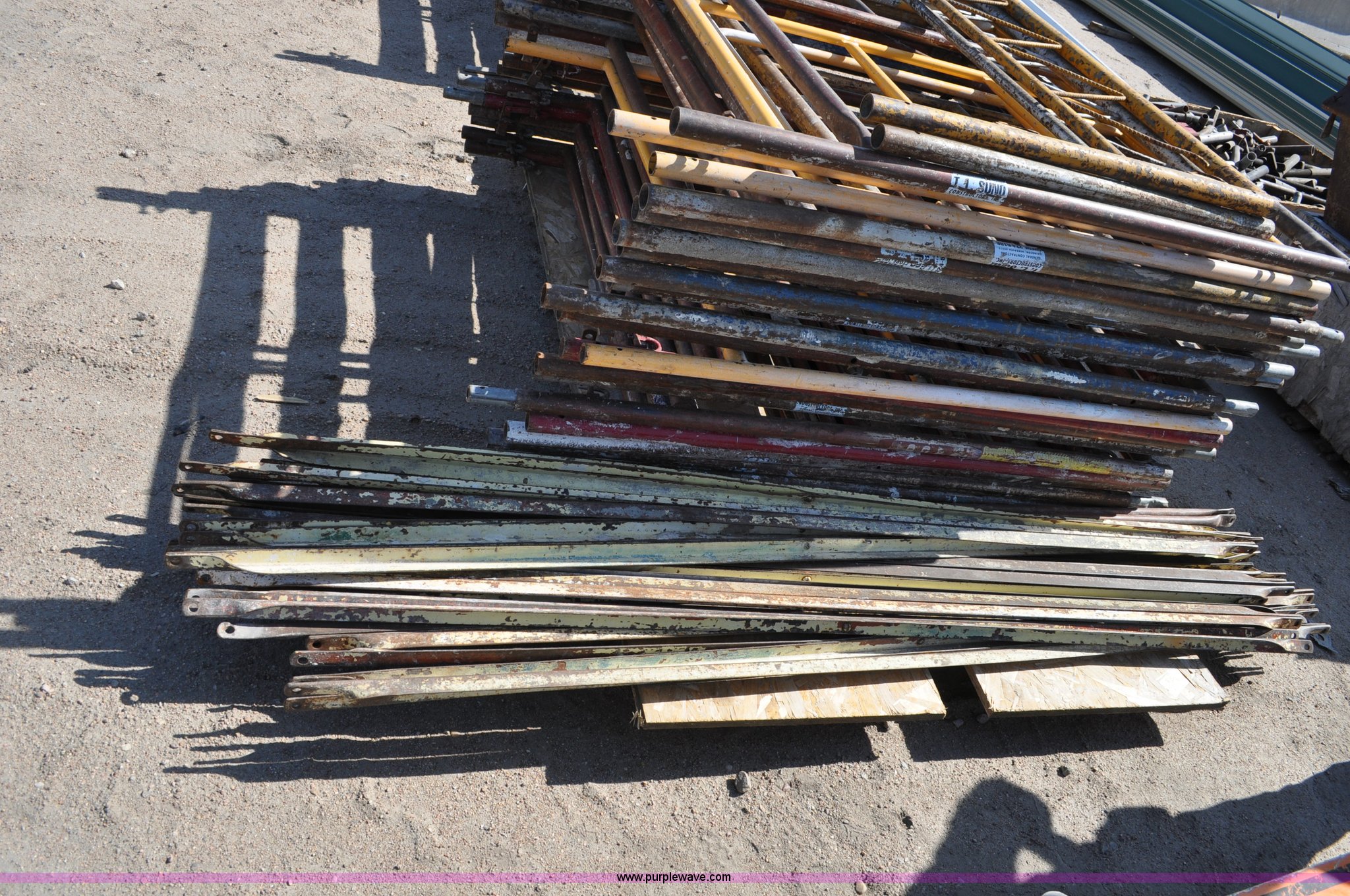 Assorted scaffolding. (18) 4' scaffolding, (21) 5' scaffolding, (2) 3' scaffolding, (39) braces 91.5" hole centers, (9) braces 98" hole centers, (6) braces 88" hole centers, (11) braces 77" hole centers, (11) 60" single braces, (11) 89" single braces , 79" single brace, (30) wheels, Other assorted scaffolding equipment. Shipping quotes available. TL Sund Constructors, Inc.. 707 N Ontario. Lexington, NE 68850