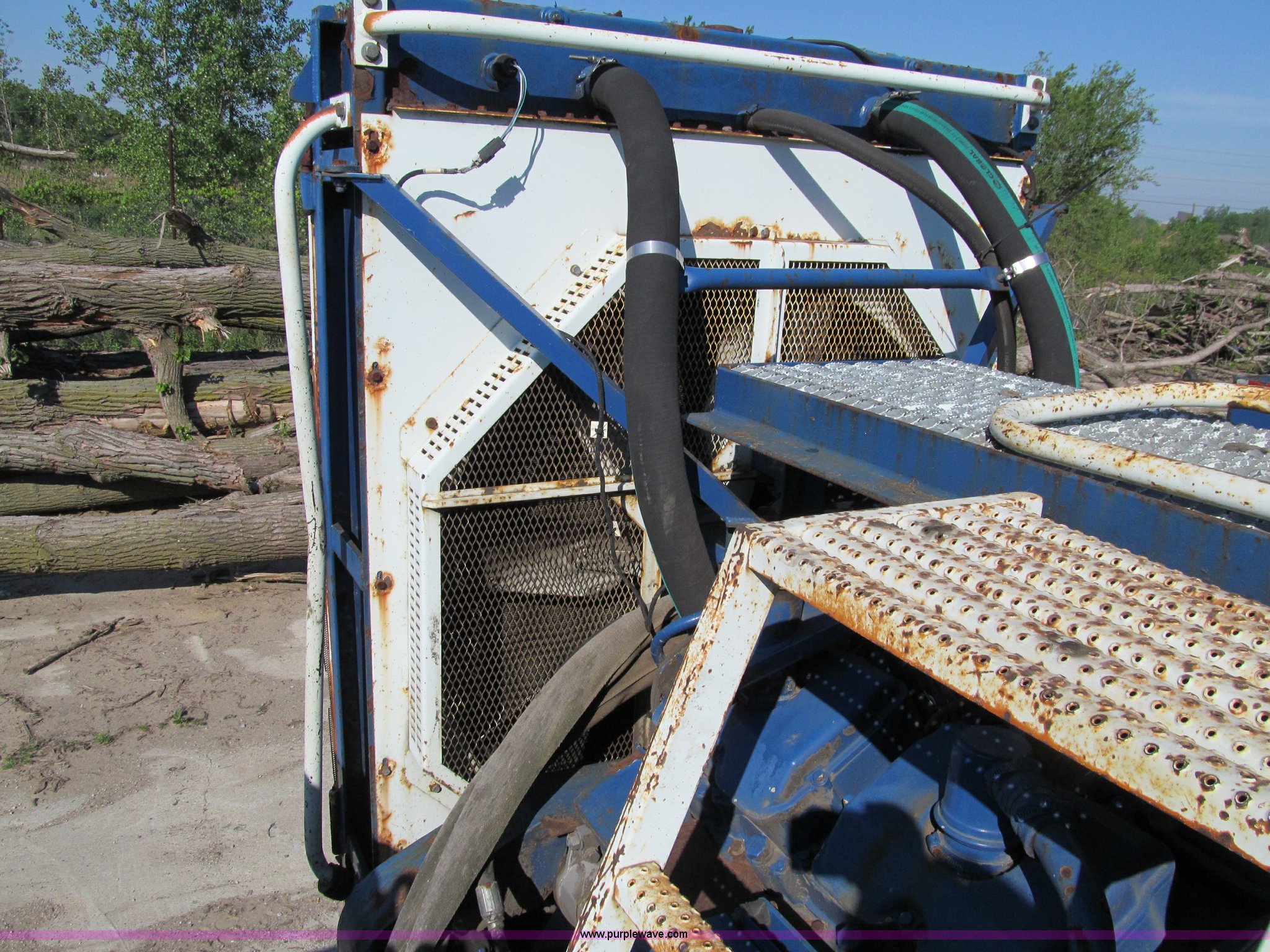 Purple Wave is selling a used Wood Grinder in Indiana. This item is a 2002 Peterson Pacific HC5400 portable horizontal recycler grinder with the following: 2,562 original hours, Caterpillar 3412 diesel engine, 860 HP, Twin disk SP318SBO clutch, American Industries heat exchanger, Radio remote control, 8' x 13' feed hopper with 5' x 16' feed floor with chain feeder, Feed/compression wheel, horizontal grinder wheel, 56" x 20' underslung transfer conveyor, Air compressor with Kohler Command 12.5 HP engine, 36" x 25' rear discharge conveyor, Hydraulic raise/lower, Mid-length hydraulic fold, Magnetic head pulley on rear discharge conveyor, Dust suppression manifold on discharge conveyor, Mounted on tri-axle carrier, Hydraulic front landing gear, Spring suspension, Air brakes, 295/75R22.5 tires, Owner purchased new in September 2002, Serial 19-42-770