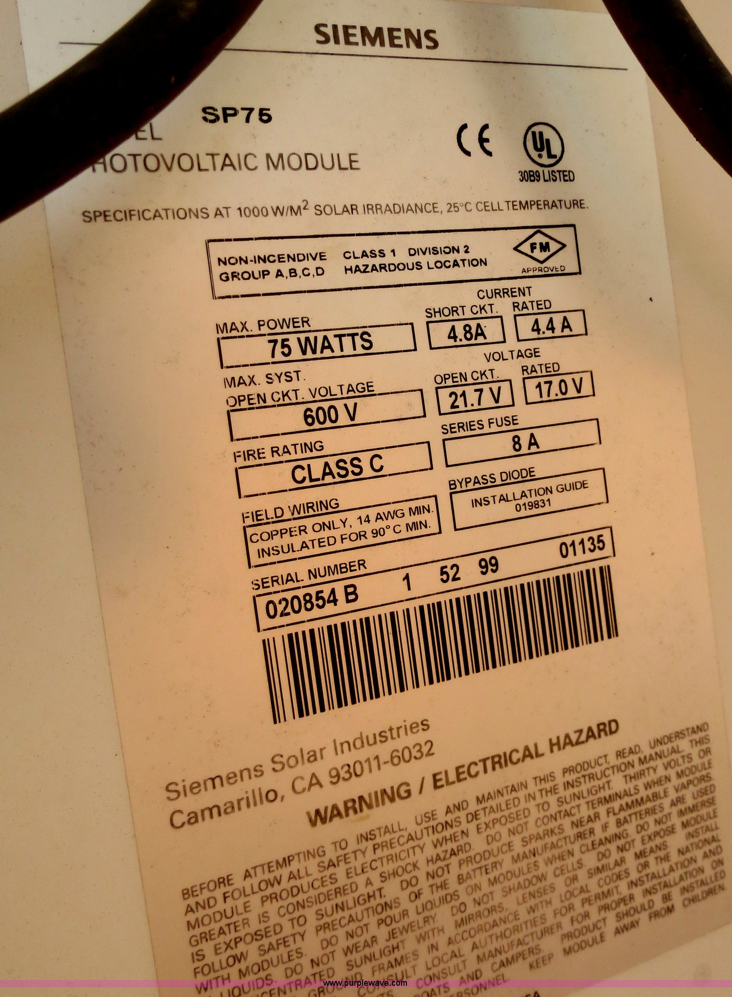 - (3) Siemens SP75 solar panels