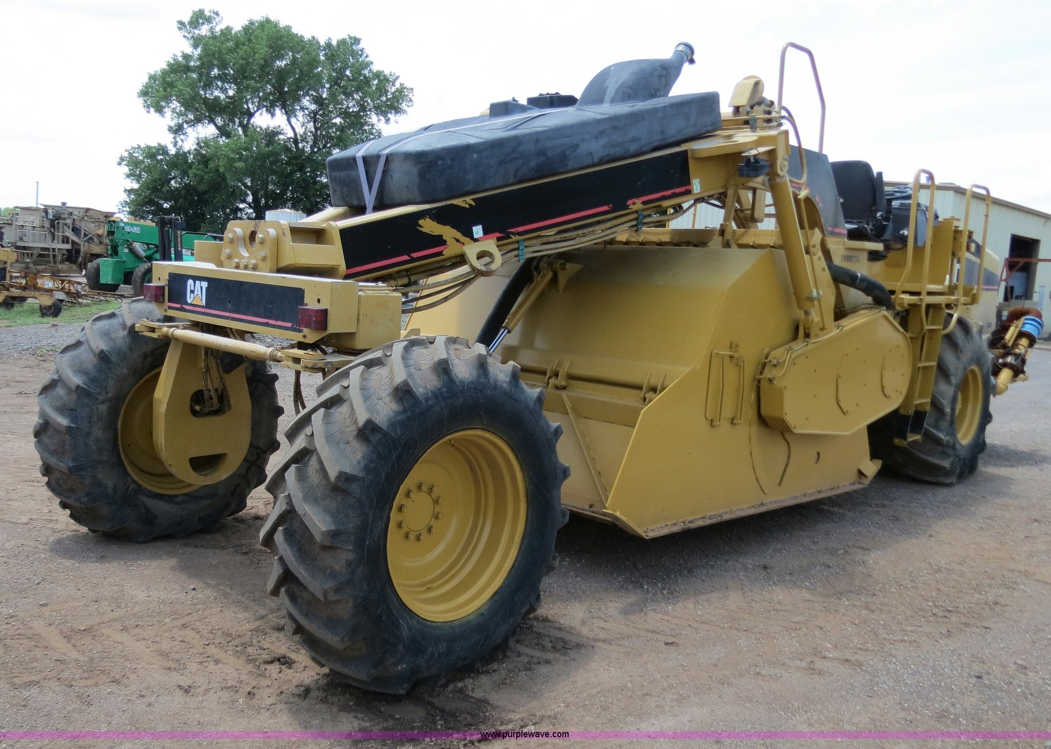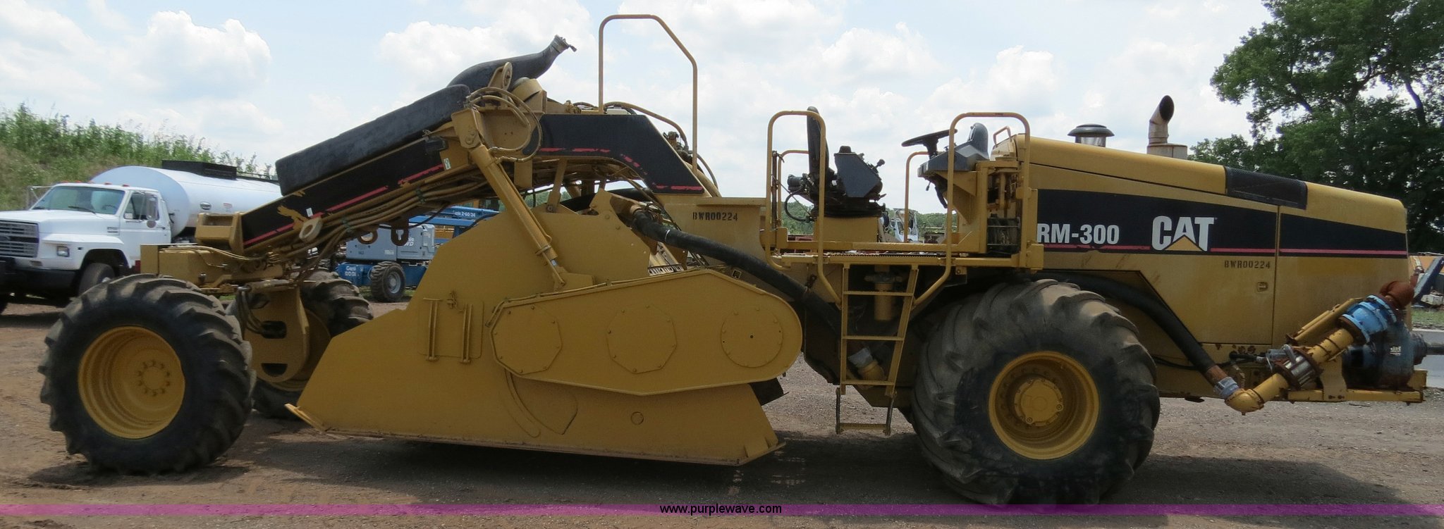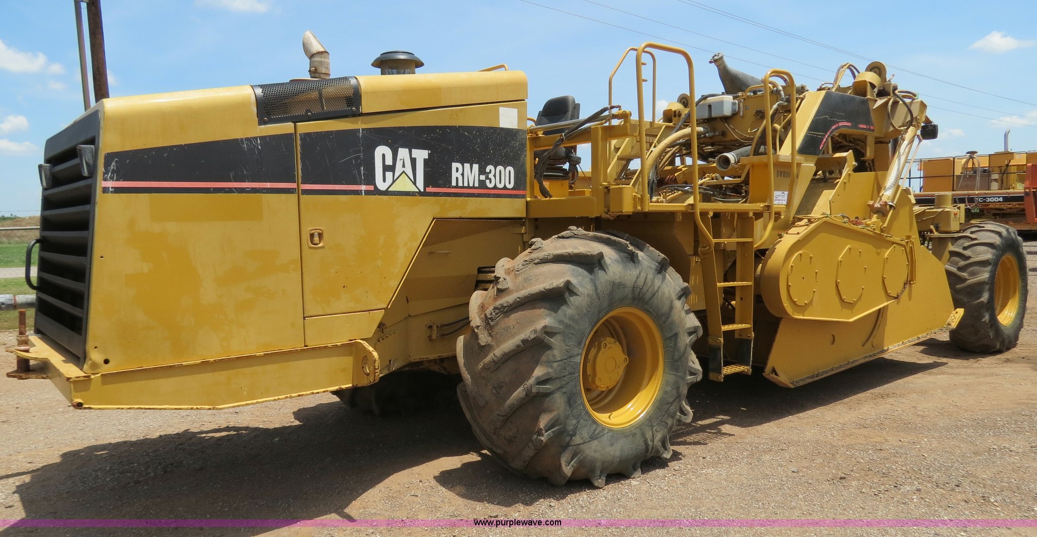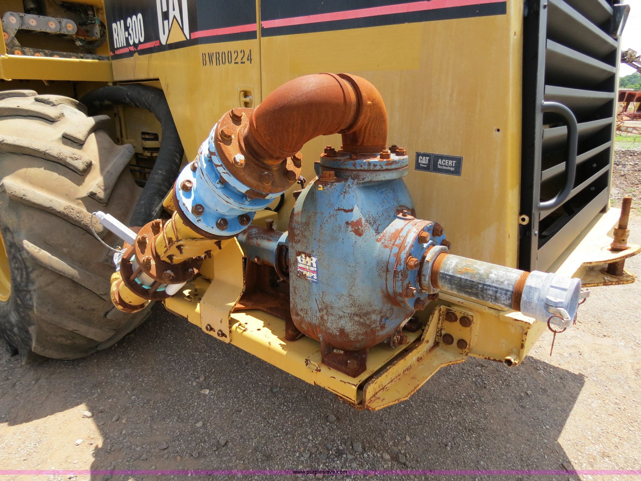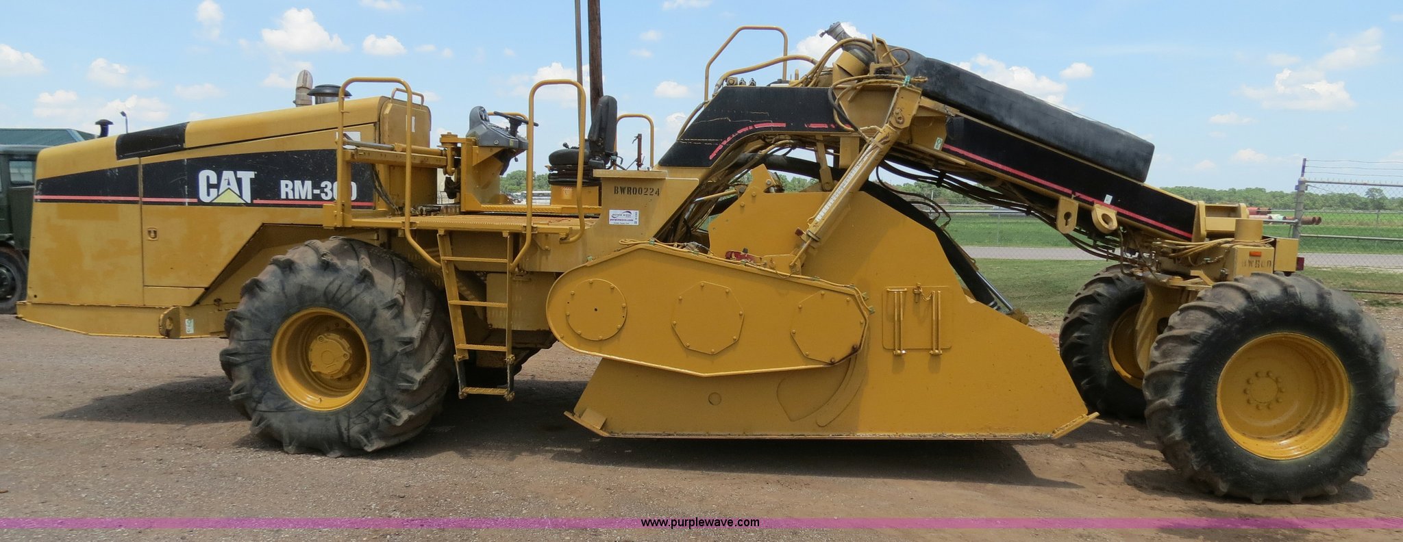 Purple Wave is selling a used Reclaimer or Stabilizer in Oklahoma. This item is a 2006 Caterpillar RM-300 rotary mill recycler/reclaimer with the following: 3,599 hours on meter, Caterpillar C11 Acert 11.1L six cylinder diesel engine, 350 HP, Hydrostatic transmission, Rear wheel assist, Four mode steering, Universal rotor, 8'W cut, 5' drum diameter, (200) bolt-on carbide tipped tools, 18" maximum cutting depth, Water spray system, 100-500 gpm, Gorman Rupp centrifugal pump, Hydraulic front door, Hydraulic adjustable rear door, Hydraulic sliding operator station, Working light package, 53,911 lbs. base operating weight, 28.1-26 front tires, 18.4-30 rear tires, Serial BWR00224