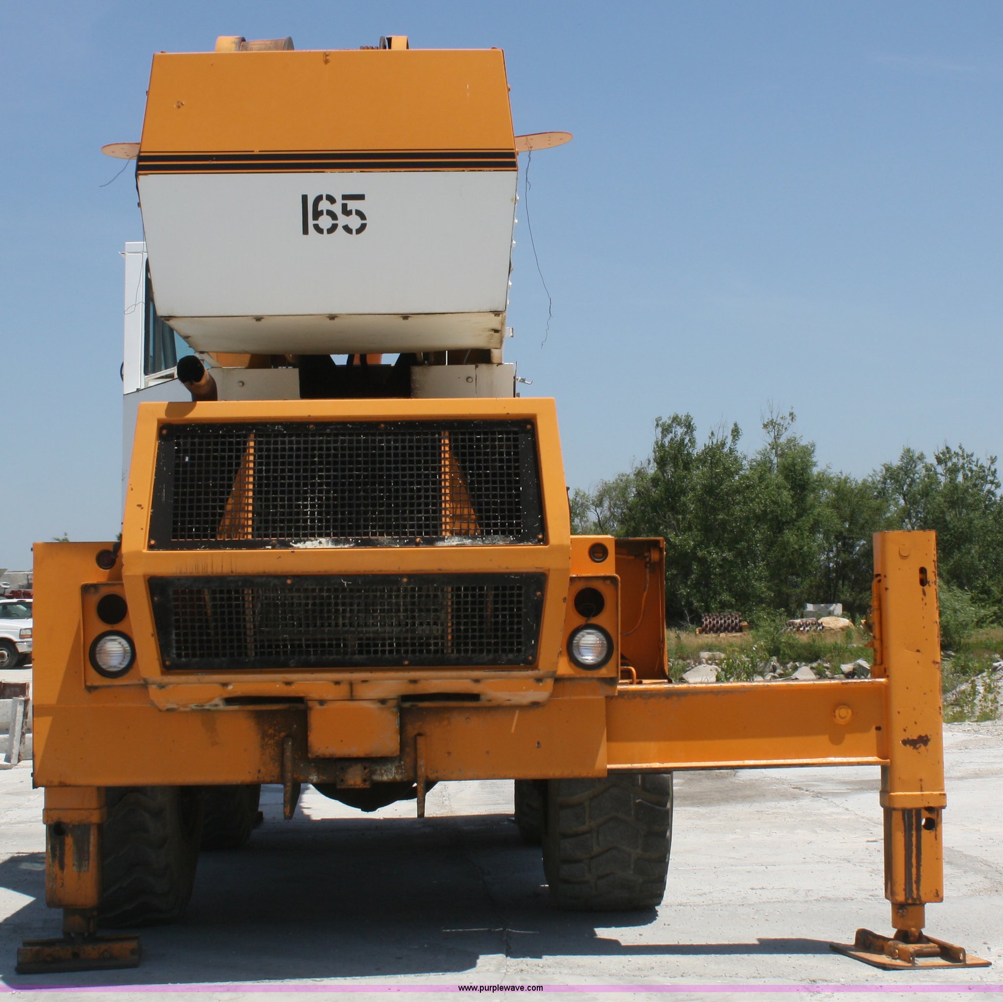 Purple Wave is selling a used Carry Deck Crane in Missouri. This item is a Drott 1800CC crane with the following: Detroit 471 CID four cylinder diesel engine, Four wheel drive, Four wheel steering, (4) outriggers, 62' maximum reach, 18 ton maximum lift capacity, DRH Johnson 12" 30 ton block, 20.5-25 tires, Accelerator pedal does not function properly, Brakes are weak, Steering does not function properly, Serial 451, Unit# 165