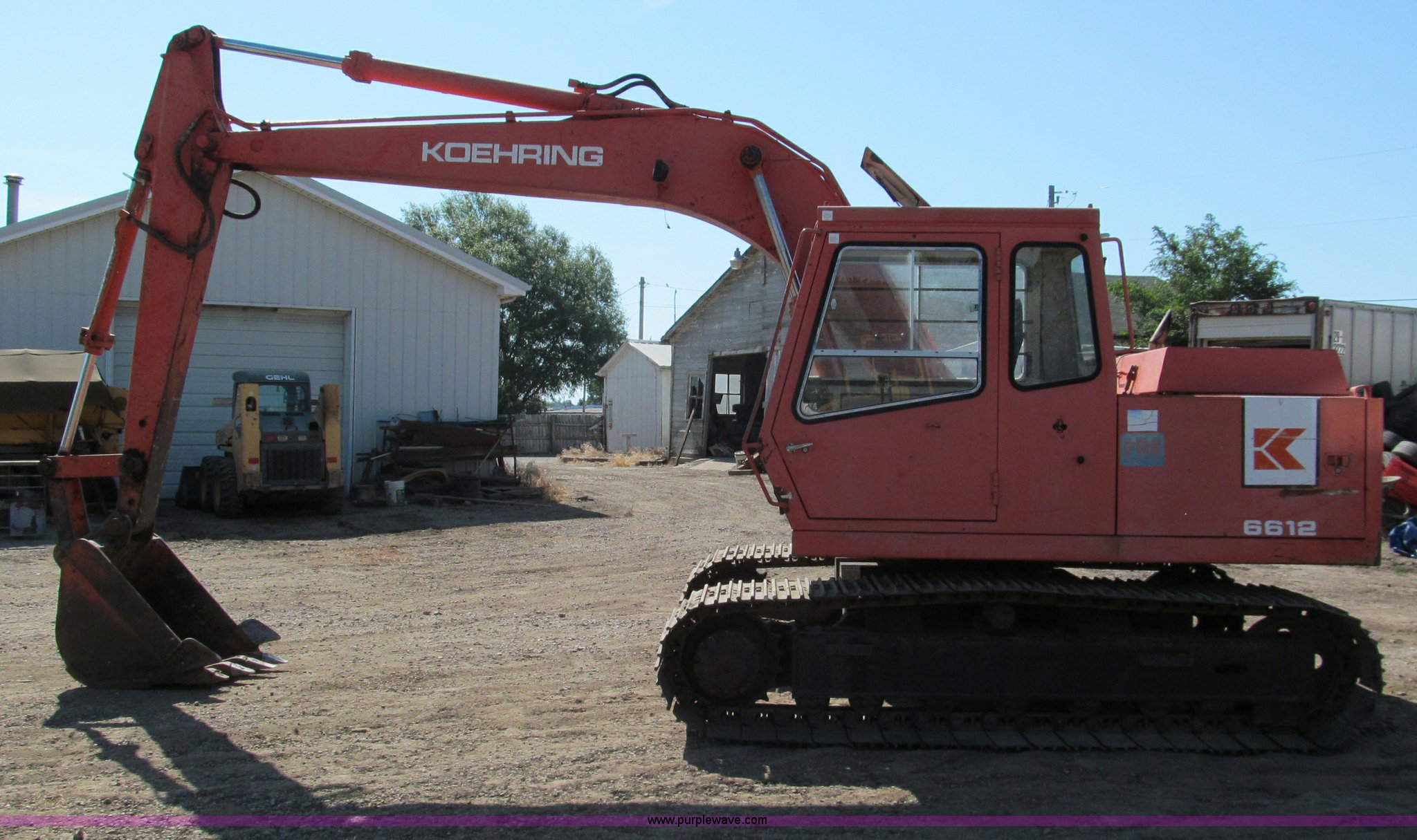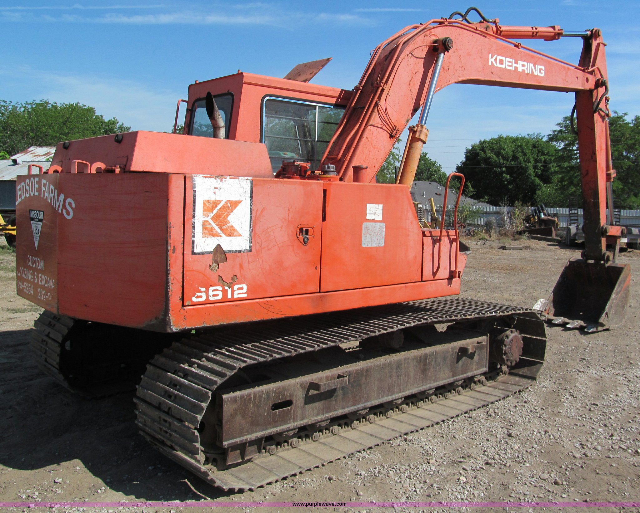 Purple Wave is selling a used Hydraulic Excavator in Missouri. This item is a Koehring 6612 excavator with the following: 6,304 hours on meter, Isuzu six cylinder turbo diesel engine, 87 HP, Enclosed cab, Heat, 93" stick, 36" bucket with side cutters, 28"W triple grouser tracks, 27,340 lbs. base operating weight, Additional 28" bucket, Parts and owners manual included, Model 6612-5, Serial 126491