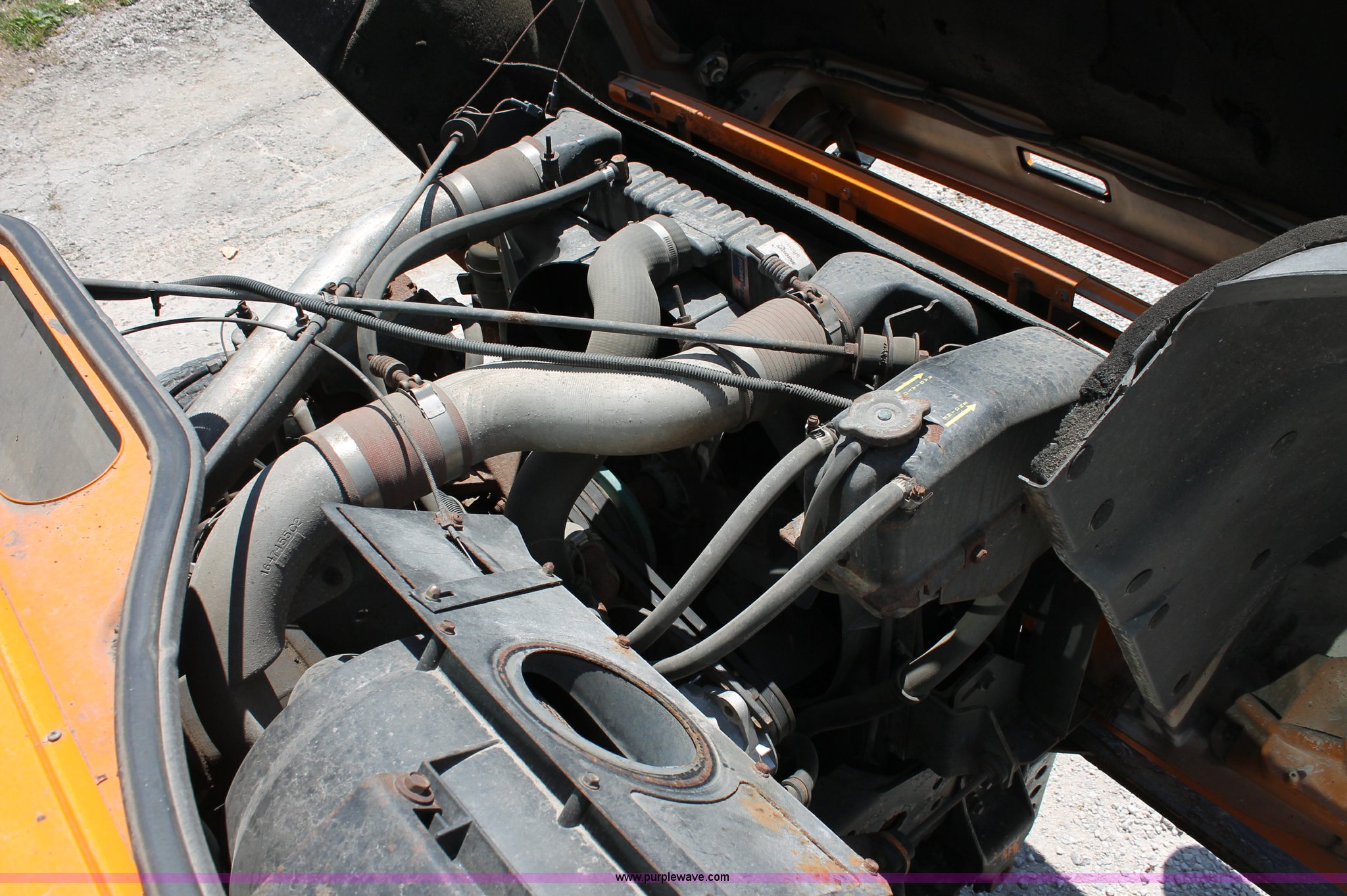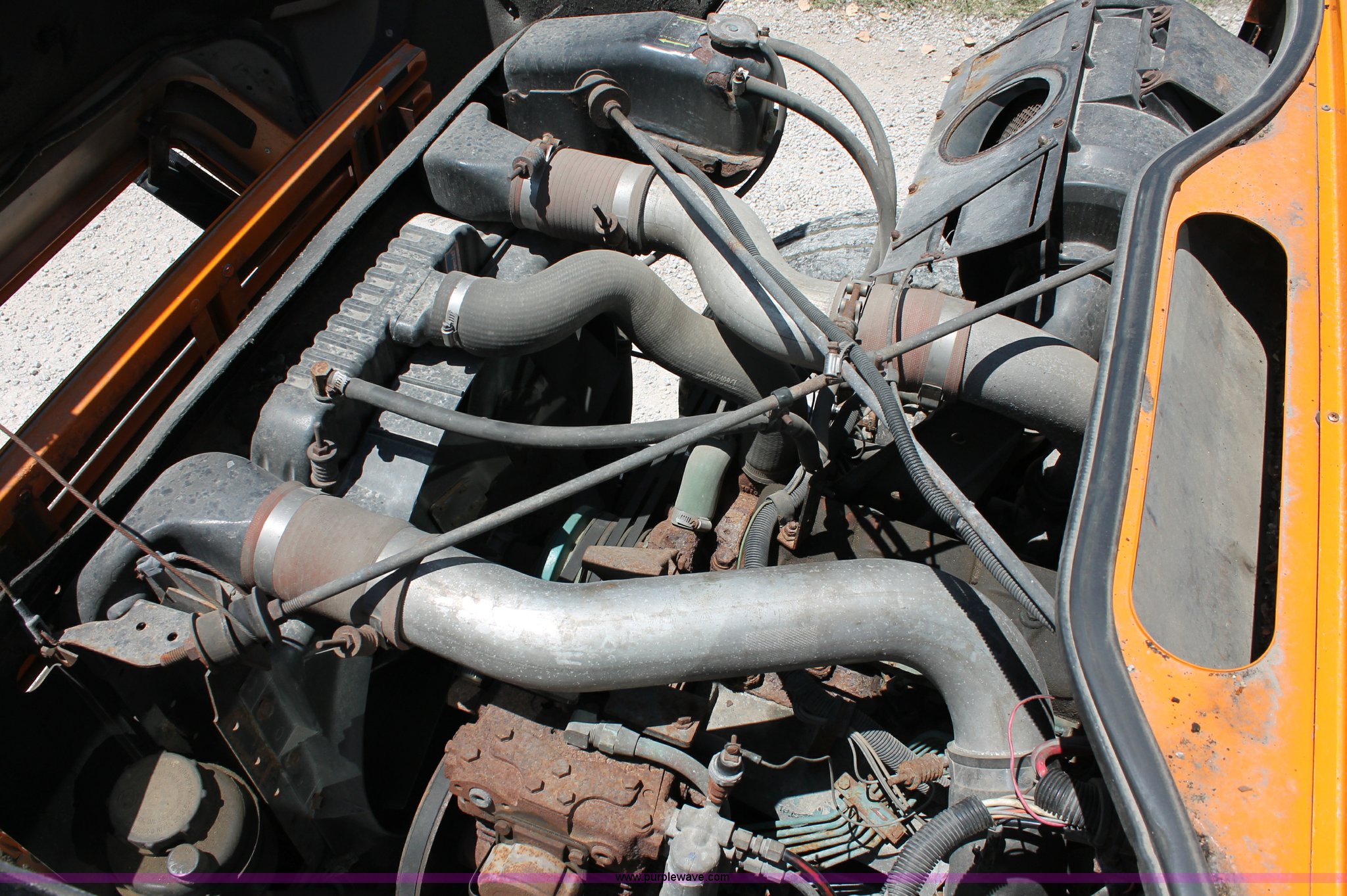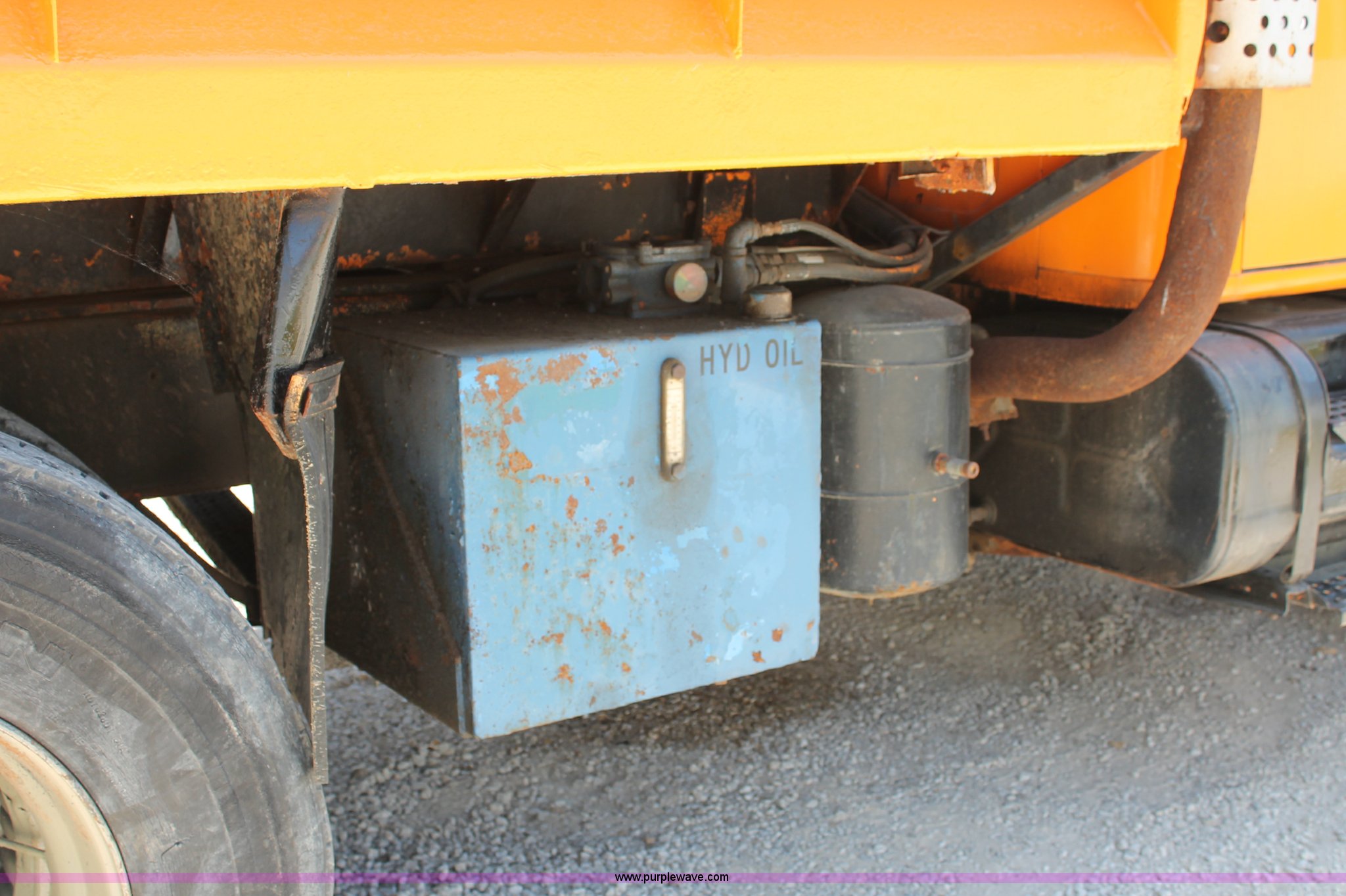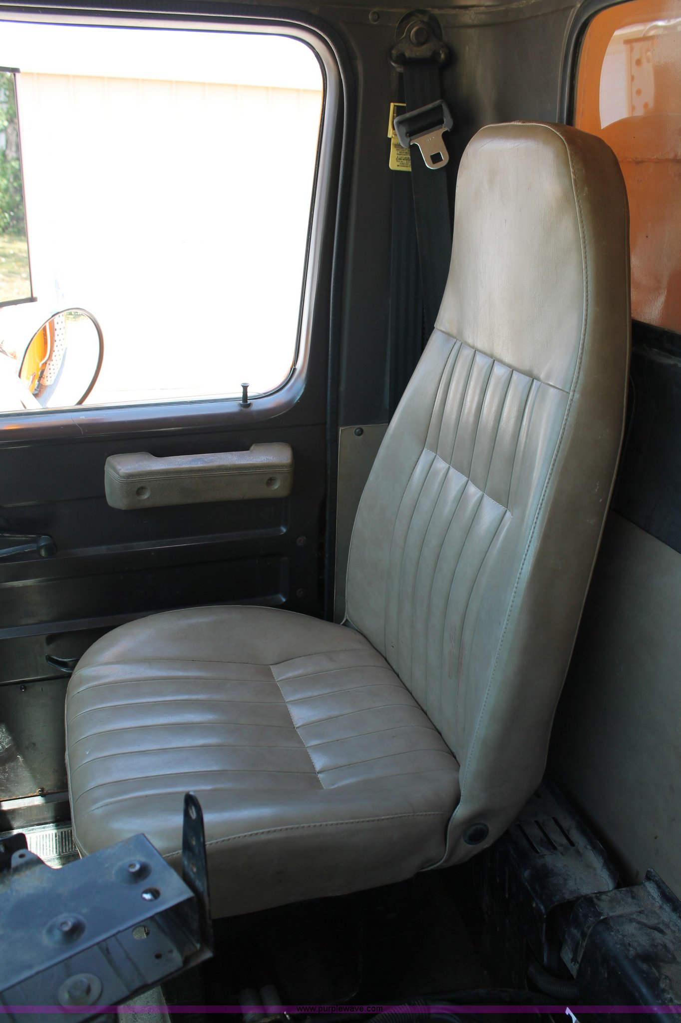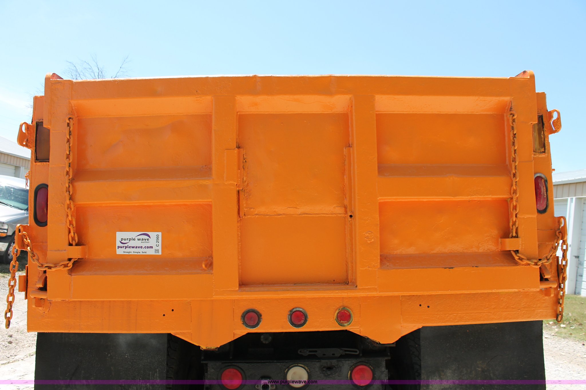 Purple Wave is selling a used Construction Dump Truck in Missouri. This item is a 1993 International 4900 dump truck with the following: 157,155 miles on odometer, 7.6L L6 turbo diesel engine, 460 HP, Allison automatic transmission, Twin screw, Differential lock, Heat, Cruise, AM/FM/Cassette, Air suspension seat, Heated mirrors, Air horn, In-cab snow plow controls, Roof-mounted warning beacons, Block heater, Trailer wiring, Pintle hitch, 14' dump bed, Manual end gate, Single ram, Dual fuel tanks, 30 and 50 gallon, Hendrickson suspension, Front hydraulics snow plow setup, Rear hydraulics spreader setup, Single exhaust stack, PTO, Air brakes, 170" wheelbase, 11R22.5 tires, GVWR 52,000 lbs, FAWR 12,000 lbs, IAWR 20,000 lbs, RAWR 20,000 lbs, Recently replaced alternator, Hydraulic leak