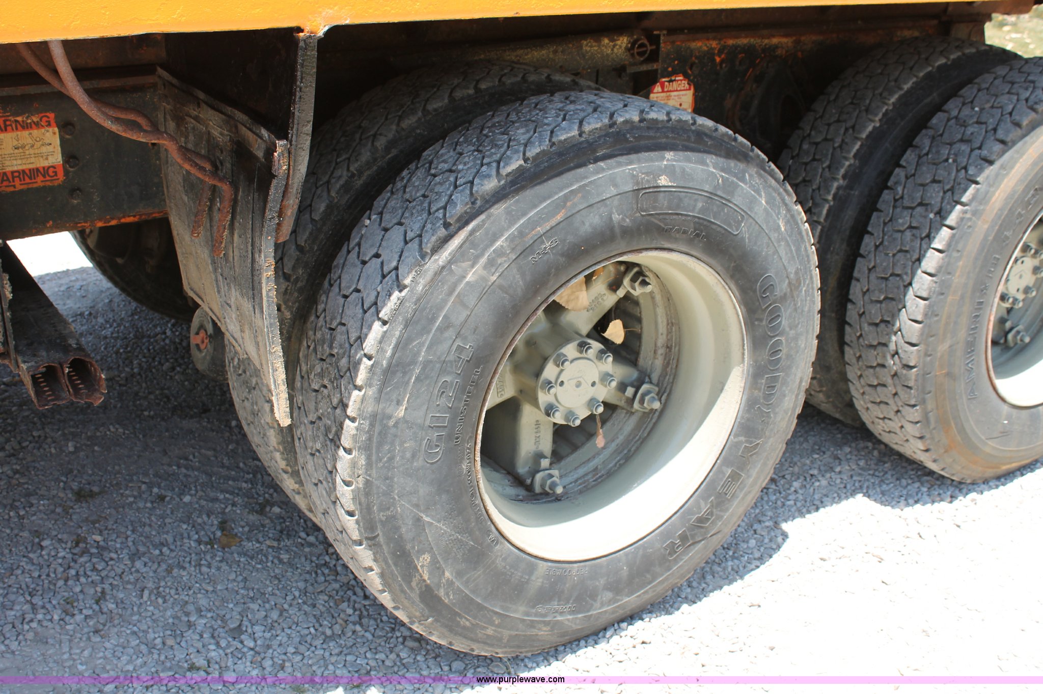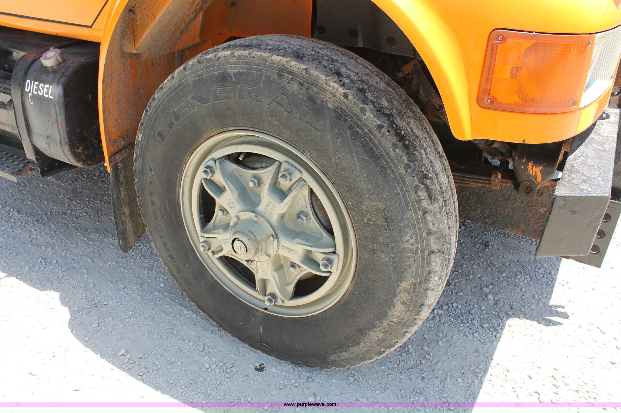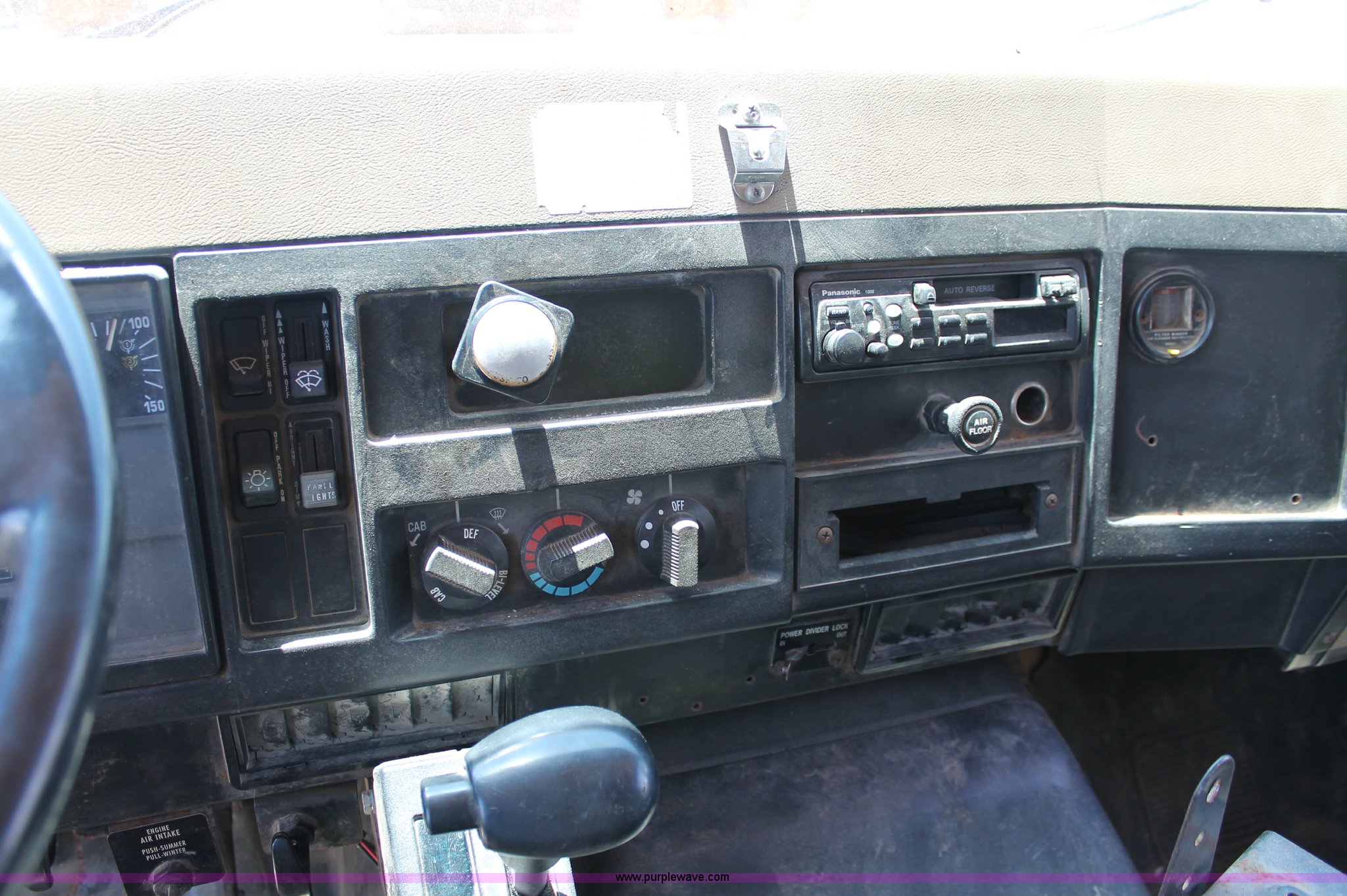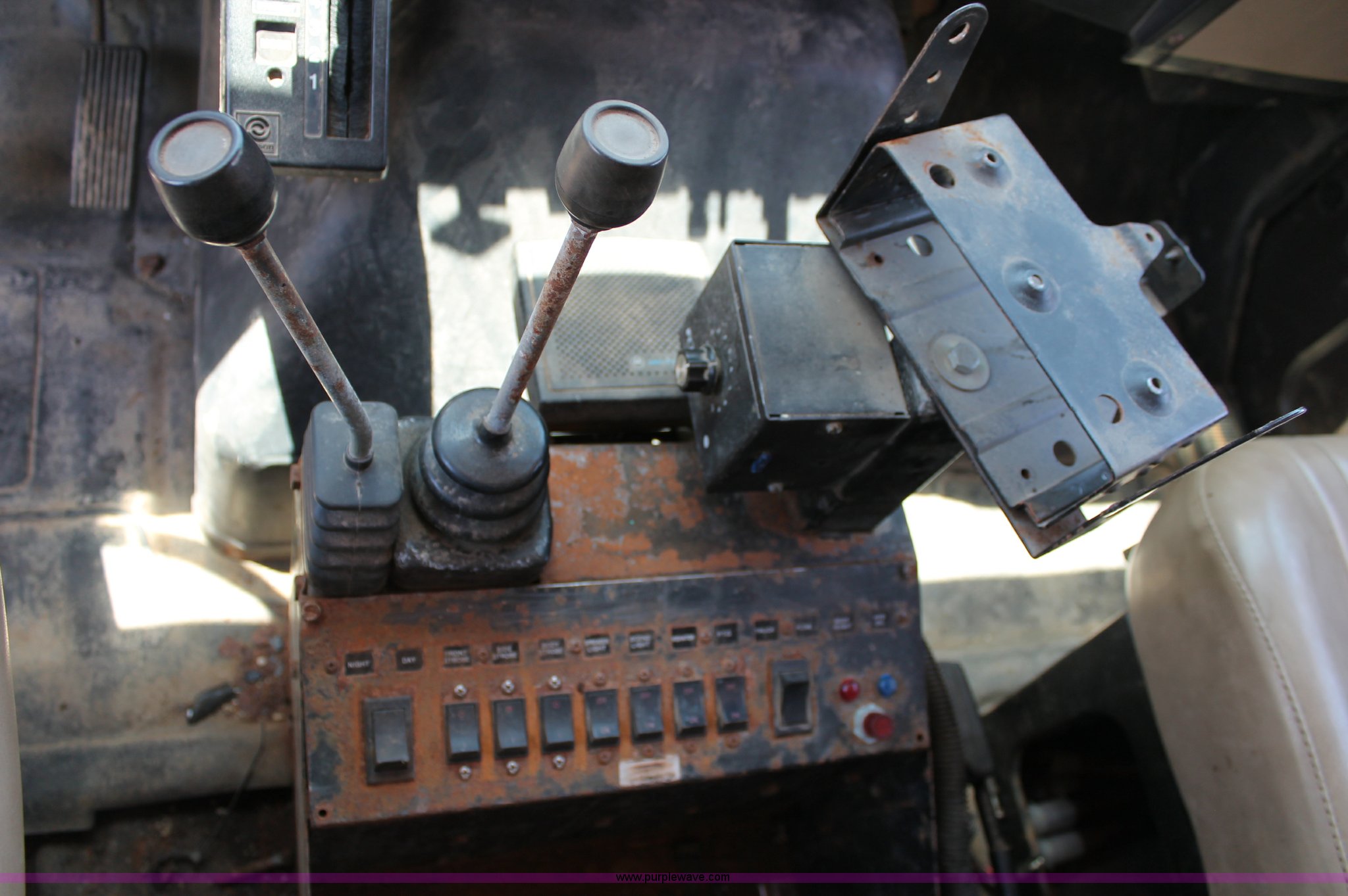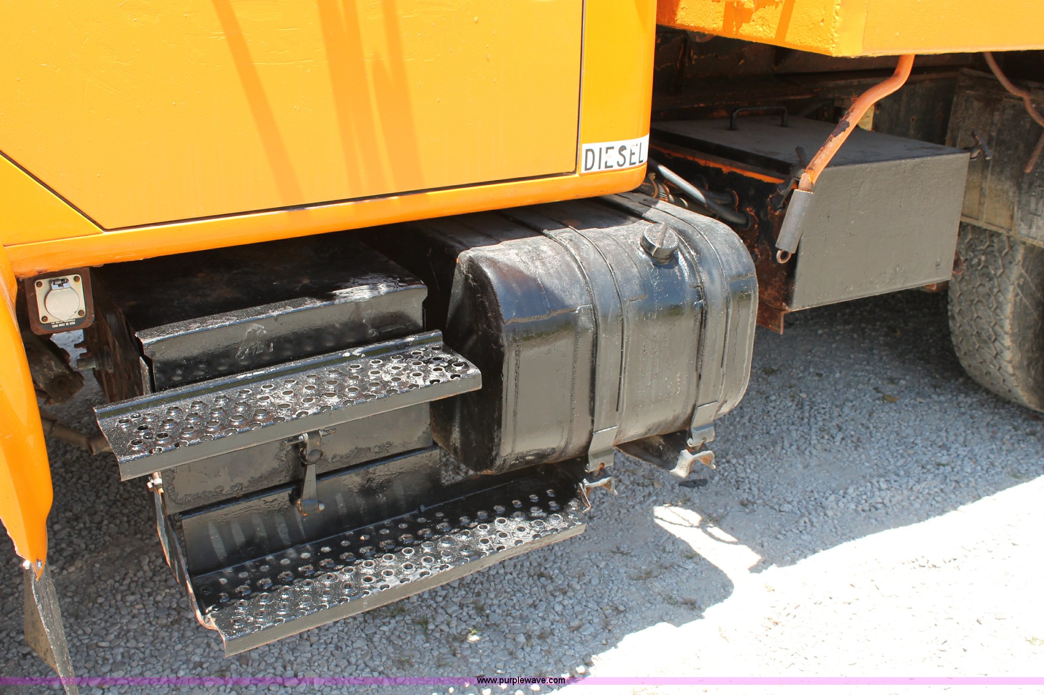 Purple Wave is selling a used Construction Dump Truck in Missouri. This item is a 1993 International 4900 dump truck with the following: 157,155 miles on odometer, 7.6L L6 turbo diesel engine, 460 HP, Allison automatic transmission, Twin screw, Differential lock, Heat, Cruise, AM/FM/Cassette, Air suspension seat, Heated mirrors, Air horn, In-cab snow plow controls, Roof-mounted warning beacons, Block heater, Trailer wiring, Pintle hitch, 14' dump bed, Manual end gate, Single ram, Dual fuel tanks, 30 and 50 gallon, Hendrickson suspension, Front hydraulics snow plow setup, Rear hydraulics spreader setup, Single exhaust stack, PTO, Air brakes, 170" wheelbase, 11R22.5 tires, GVWR 52,000 lbs, FAWR 12,000 lbs, IAWR 20,000 lbs, RAWR 20,000 lbs, Recently replaced alternator, Hydraulic leak