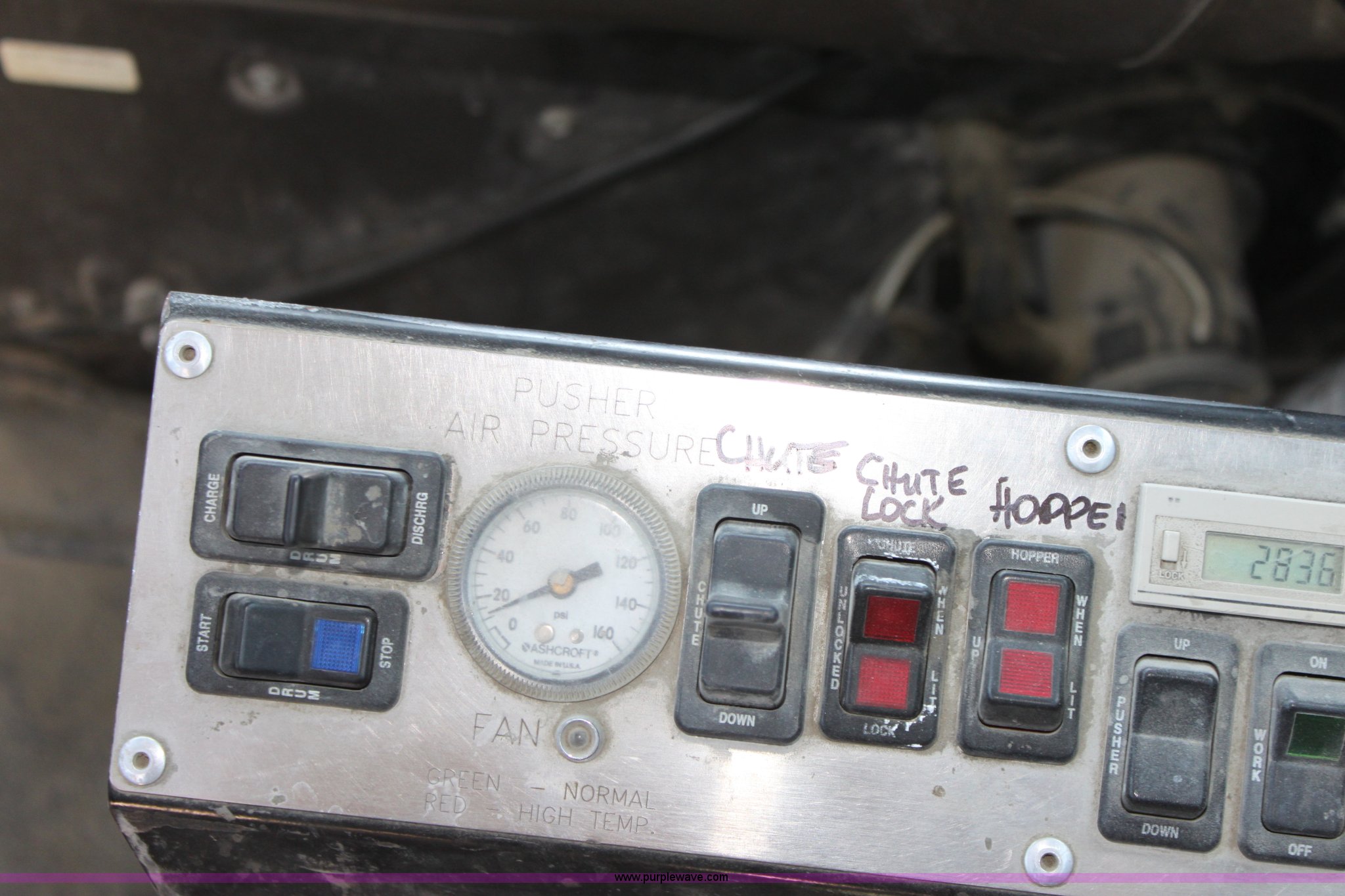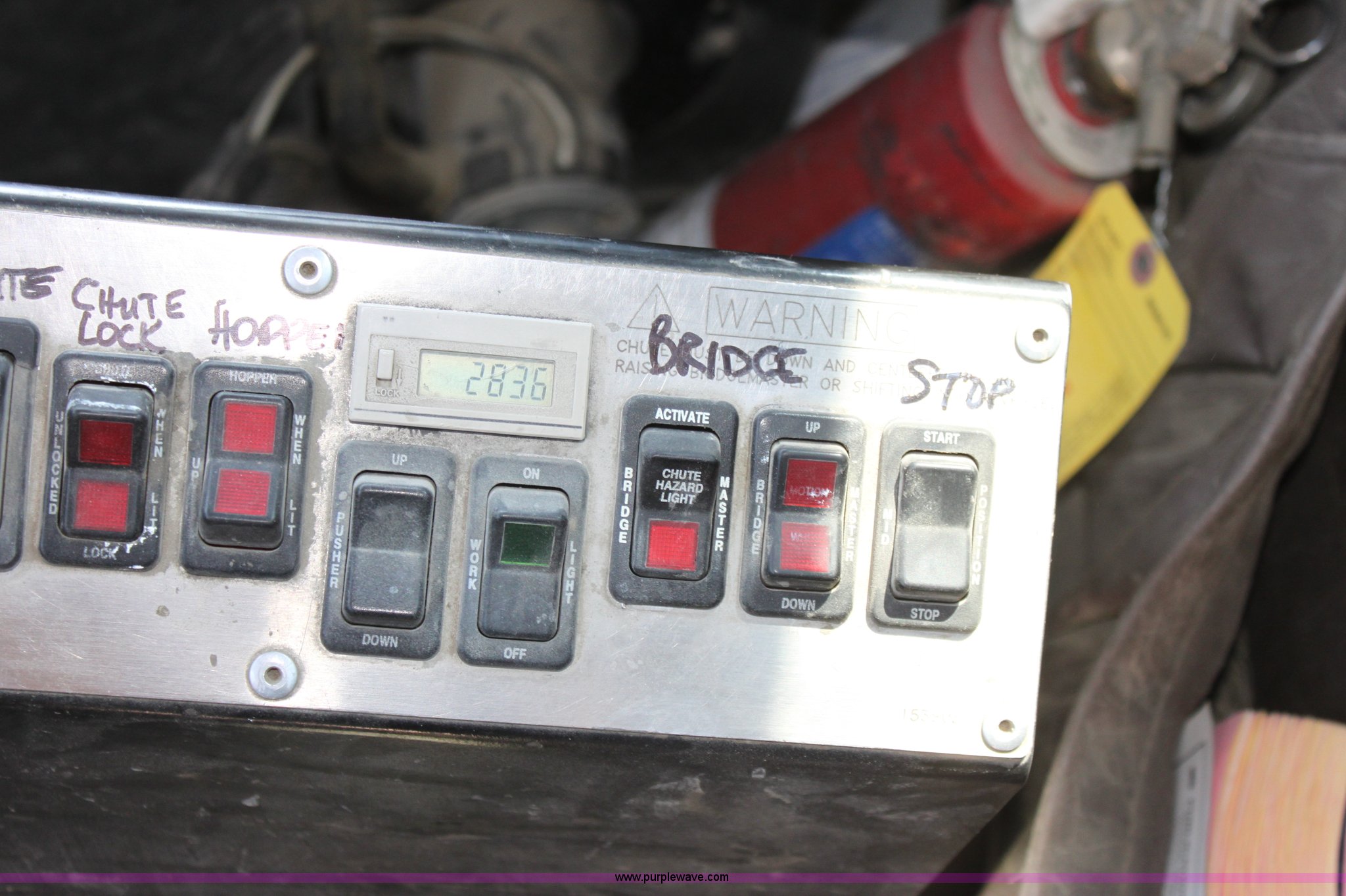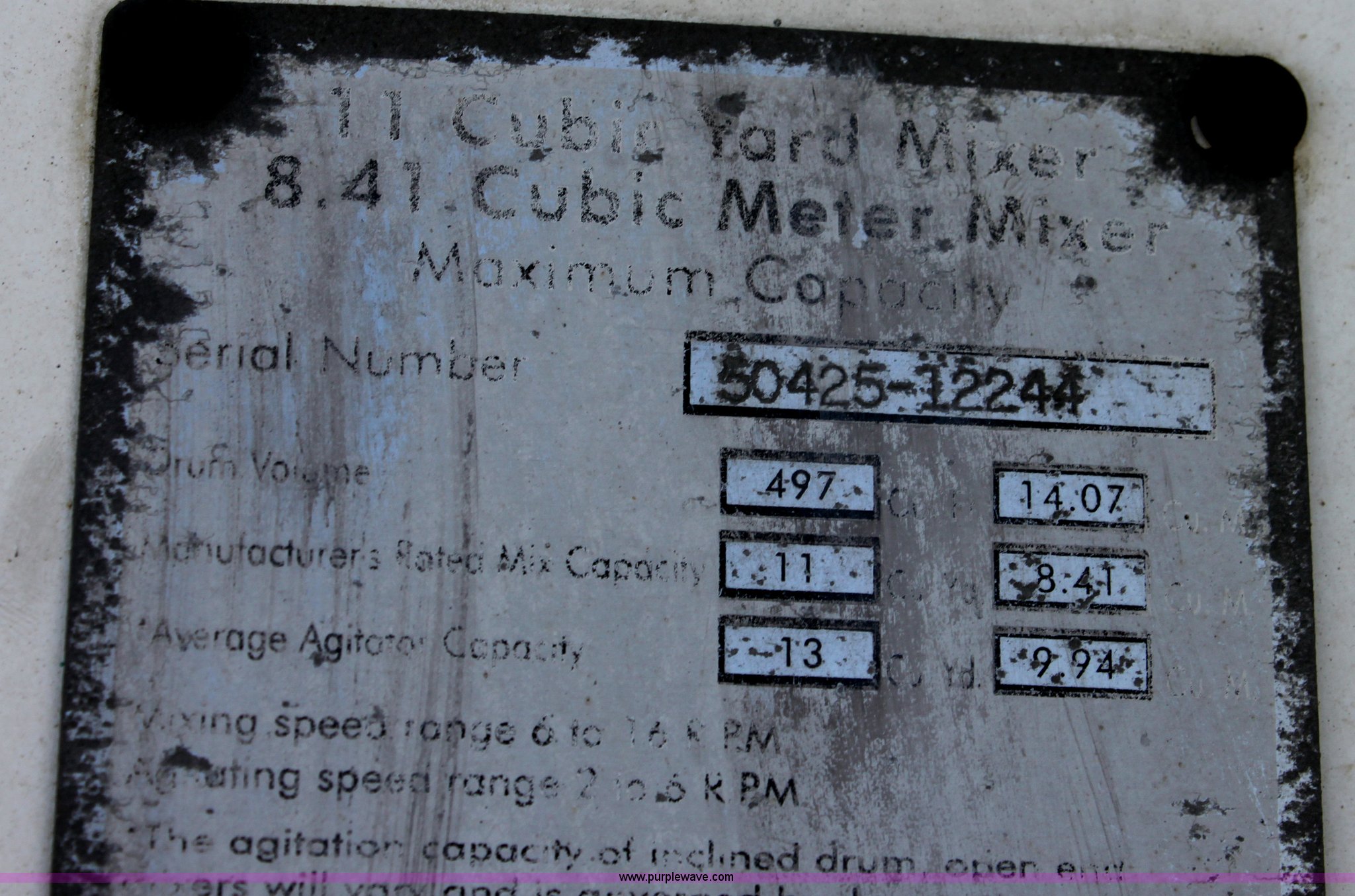 1998 International Paystar 5000 mixer truck. 205,949 miles on odometer, Cummins 10.8L L6 diesel engine, Eaton Fuller nine speed transmission, AC and heat, AM/FM/Cassette Inoperable, Cruise, Manual windows and locks, Heated mirror, Daylight passenger door, Bostrom air suspension seat, Locking power divider, Air brakes, Drum cab controls, MTM 11 cu. yd. mixer Serial 54025-12244 , 497 cu. ft. drum volume, 13 cu. yd. average agitator capacity, 6 to 16 RPM mixing range speed, 2 to 6 RPM agitator range speed, 15 gallon water tank , 125 gallon separate tank capacity, Air suspension, (3) 4' chute extensions, Electronic drum controls, Flip up hopper, 425/65R22.5 front tires, 11R22.5 rear tires, GVWR 80,000 lbs, FAWR 20,000 lbs, GAWR 11,020 lbs, GAWR 23,000 lbs, RAWR 23,000 lbs, GAWR 13,200 lbs, pusher axle. Title distribution may be delayed up to 14 days from verification of funds. 1HTTWAHT9XJ004006. View equipment video. Shipping quotes available. Builders Concrete and Supply. 9125 N Emma Creek Rd. Hesston, KS 67062
