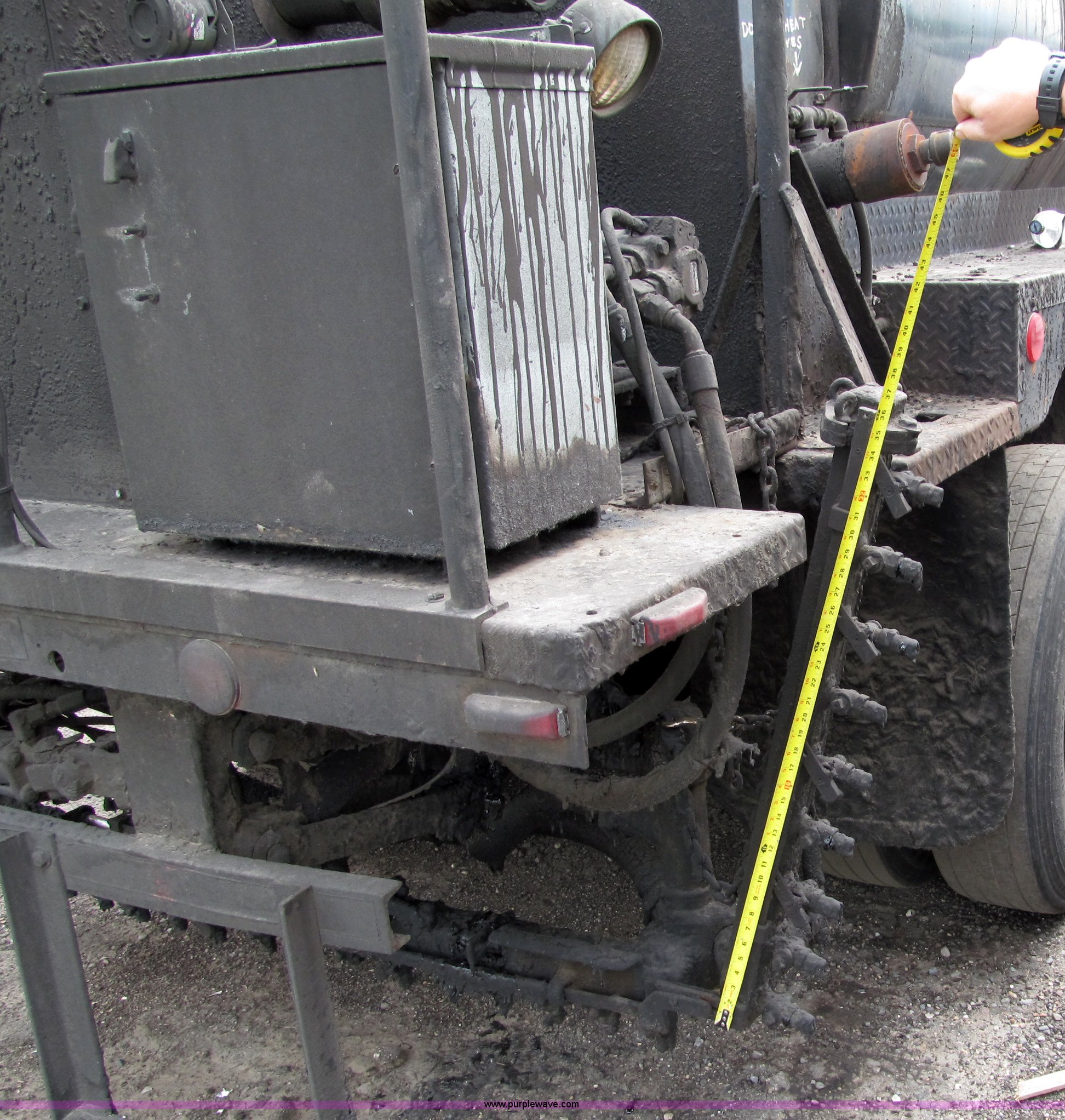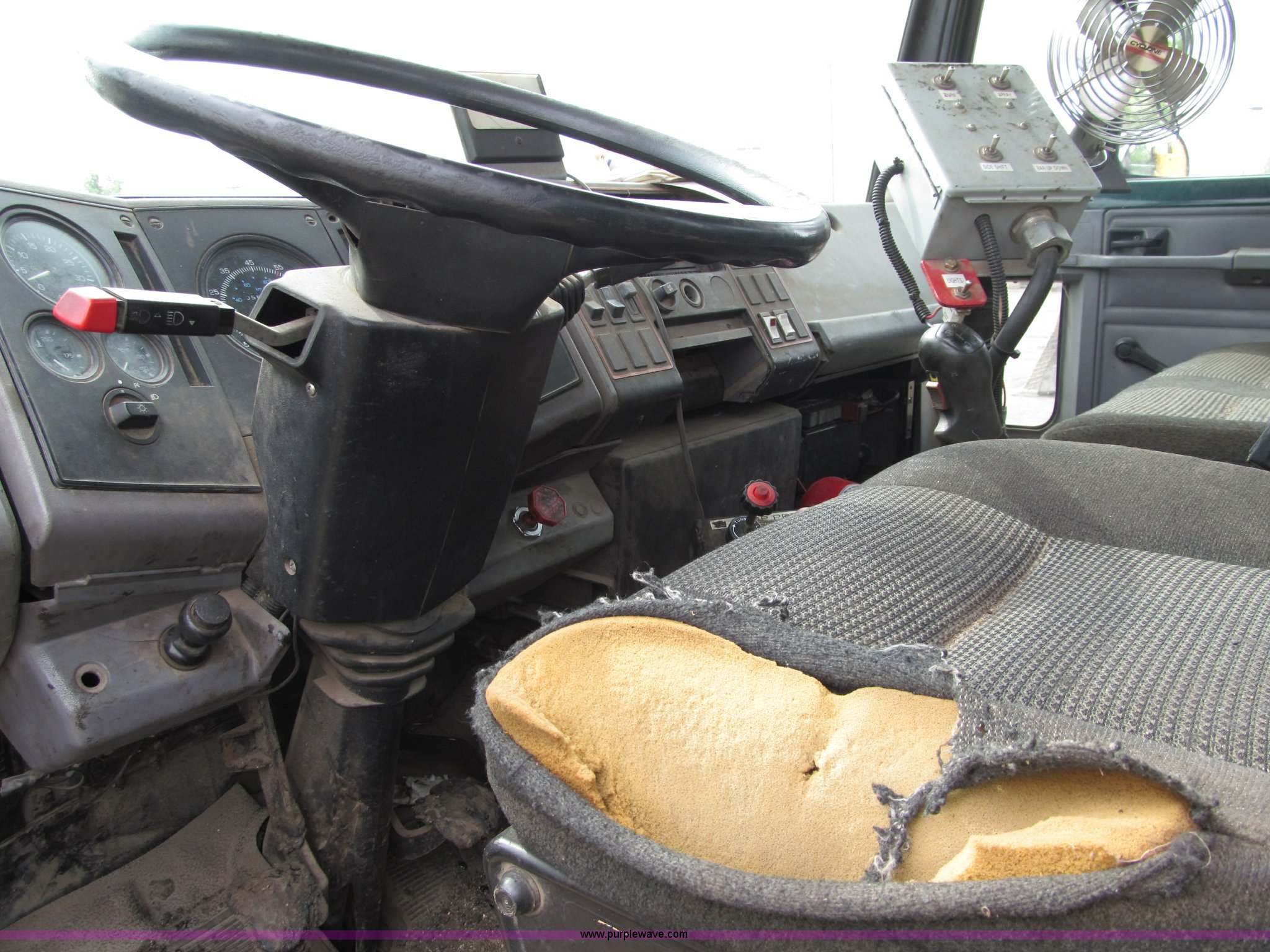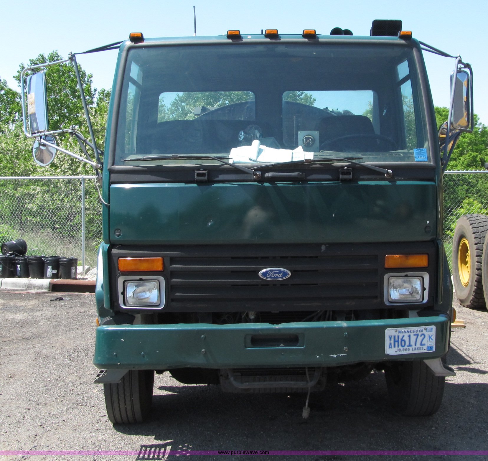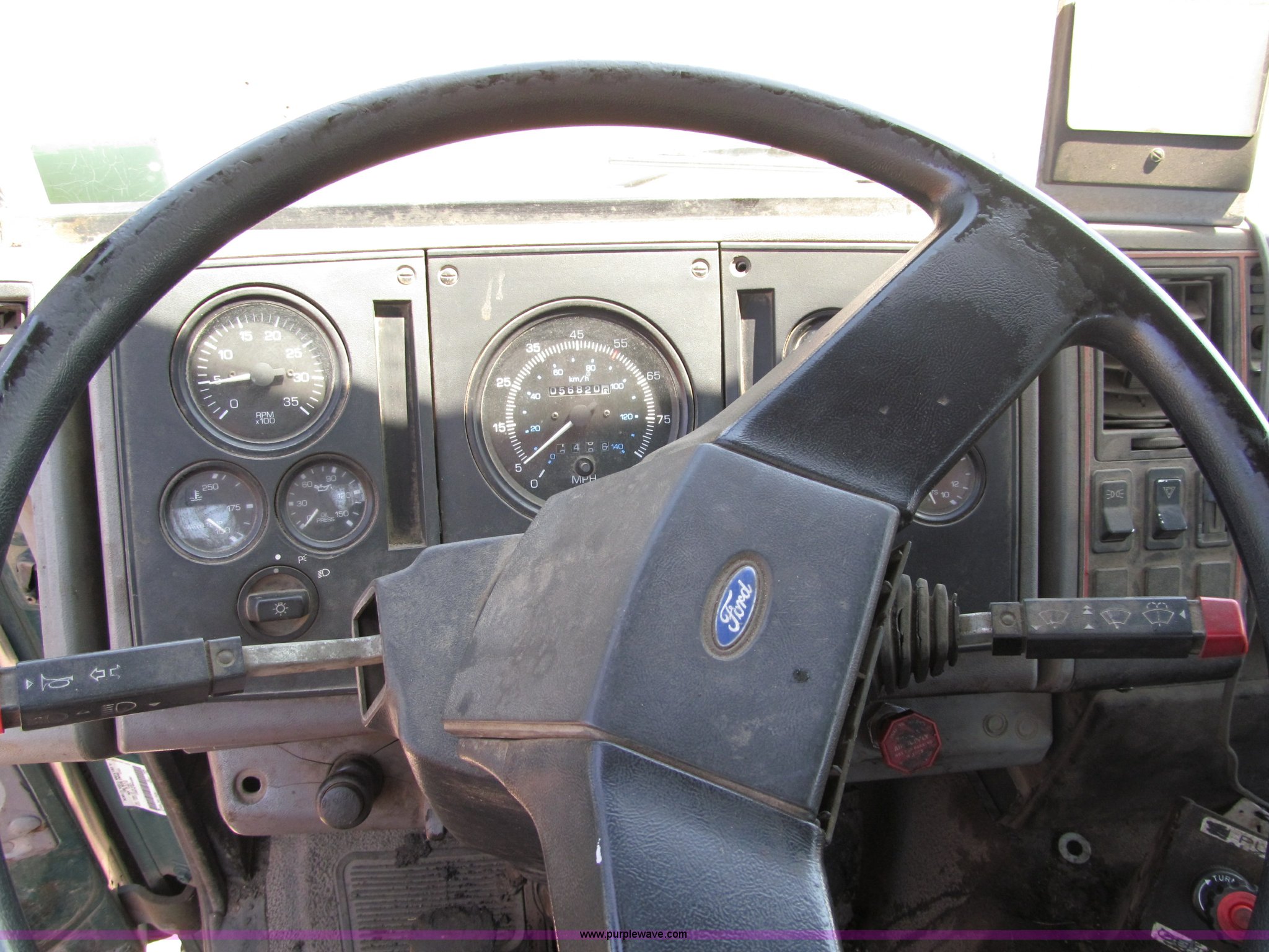 Purple Wave is selling a used Oil Distributor Truck in Minnesota. This item is a 1994 Ford CF7000 asphalt distribution truck with the following: 56,820 miles on odometer, Cummins 8.3L diesel engine, Eaton Fuller 5+2 transmission, Heat, AM/FM, Wet kit, Strobe light, Rosco distributor, 1,300 gallon tank, Cab controls with curb, spray, bar, and side shift, Transfer hose, 12' spray bar, LP heater, Hydrostatic asphalt pump, Pump heated by engine cooling system, 11R22.5 tires, Bent side shift bar, needs repair