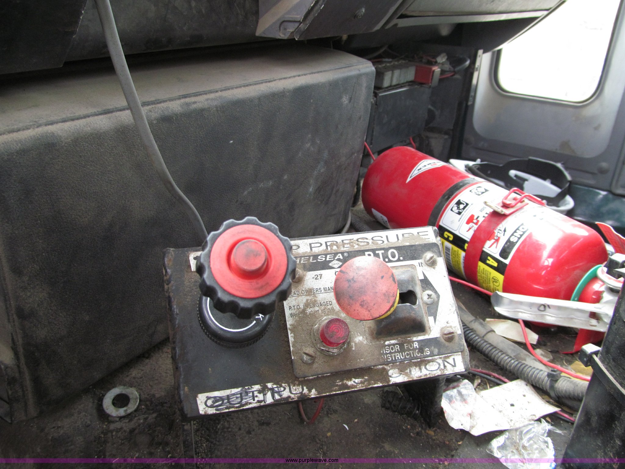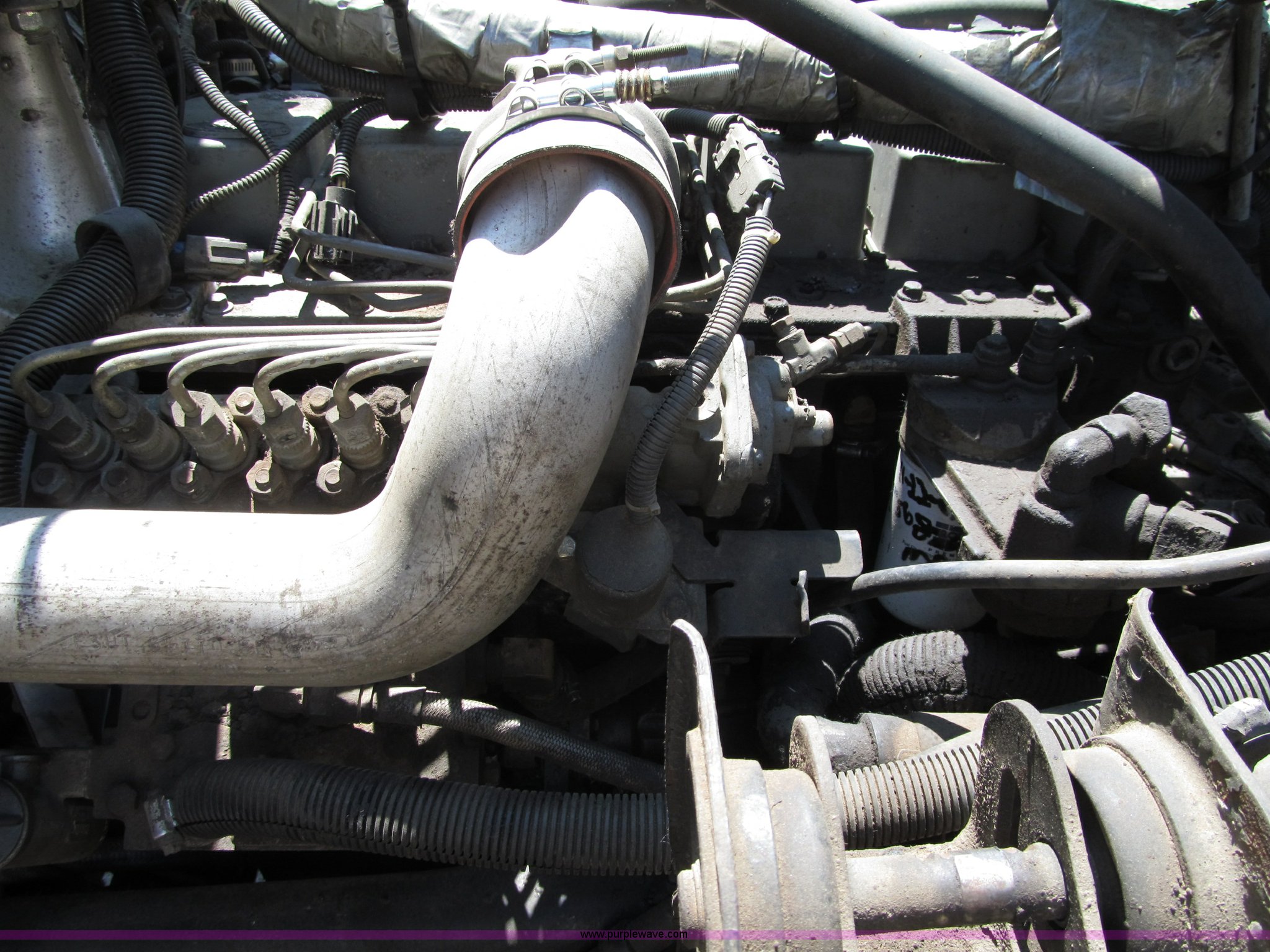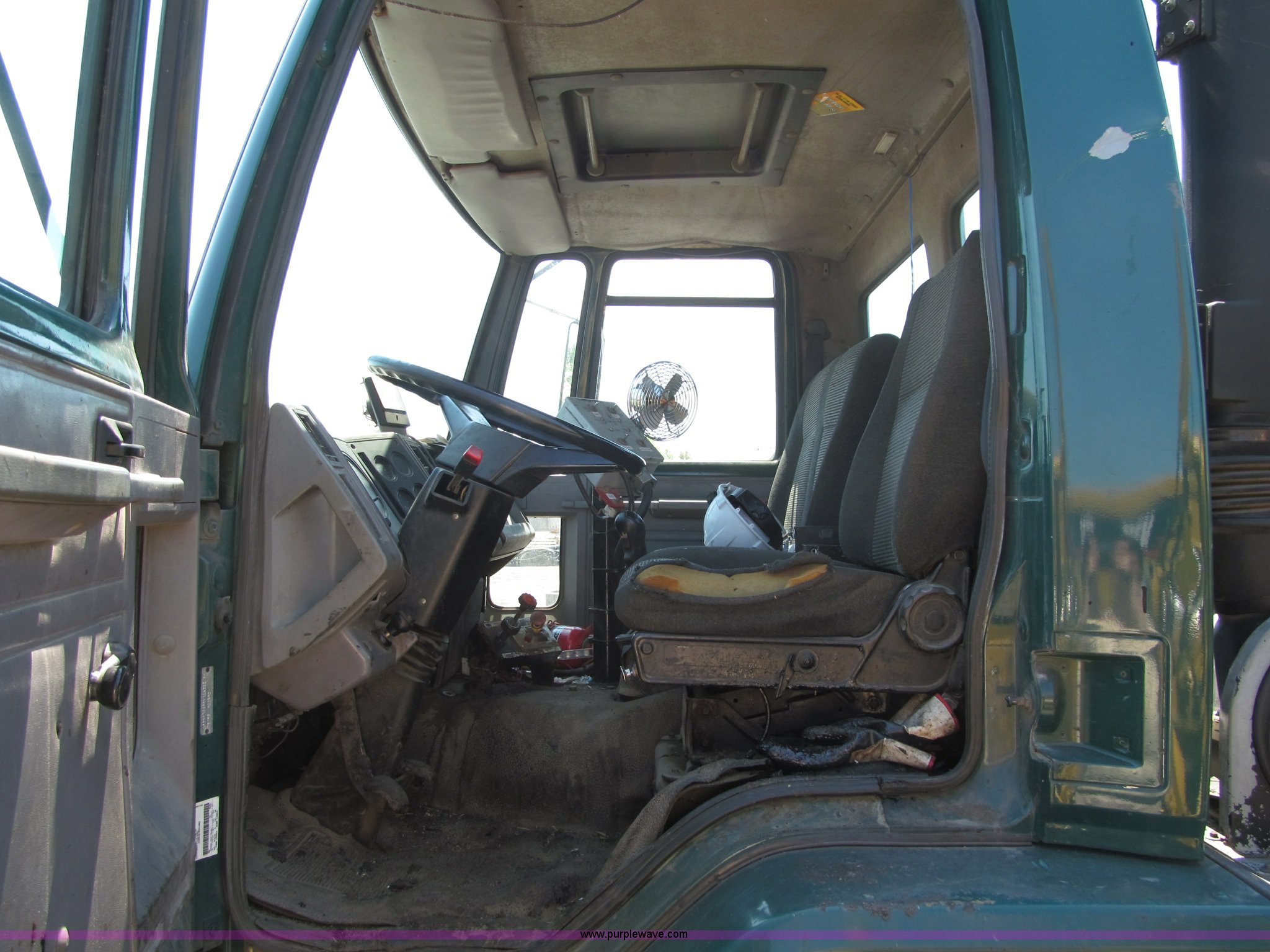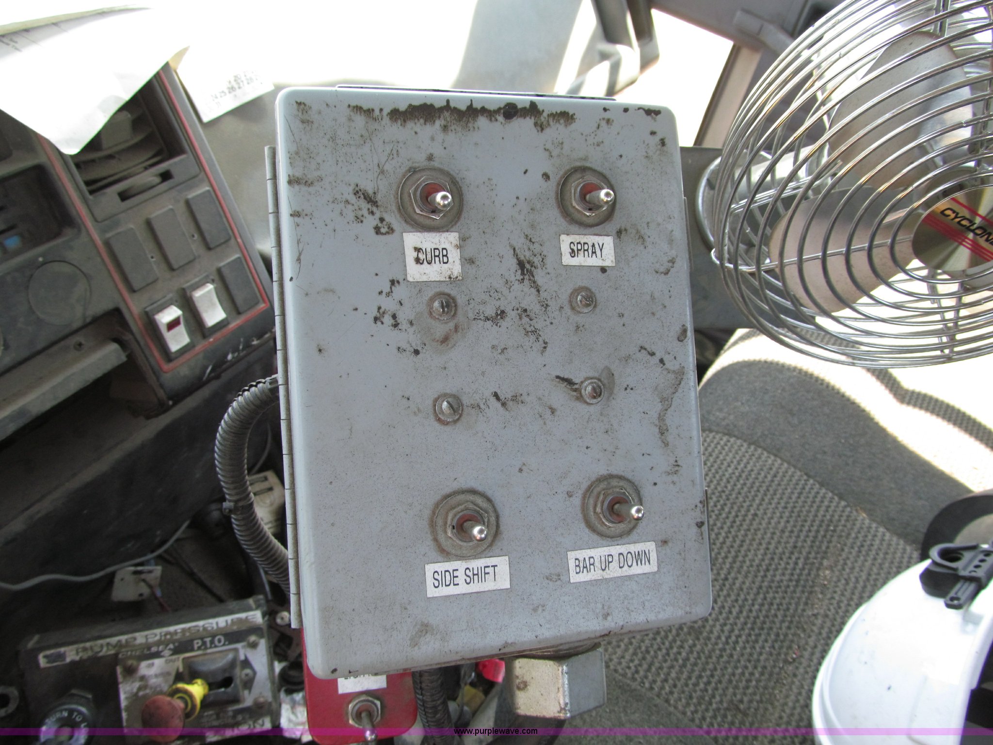 Purple Wave is selling a used Oil Distributor Truck in Minnesota. This item is a 1994 Ford CF7000 asphalt distribution truck with the following: 56,820 miles on odometer, Cummins 8.3L diesel engine, Eaton Fuller 5+2 transmission, Heat, AM/FM, Wet kit, Strobe light, Rosco distributor, 1,300 gallon tank, Cab controls with curb, spray, bar, and side shift, Transfer hose, 12' spray bar, LP heater, Hydrostatic asphalt pump, Pump heated by engine cooling system, 11R22.5 tires, Bent side shift bar, needs repair