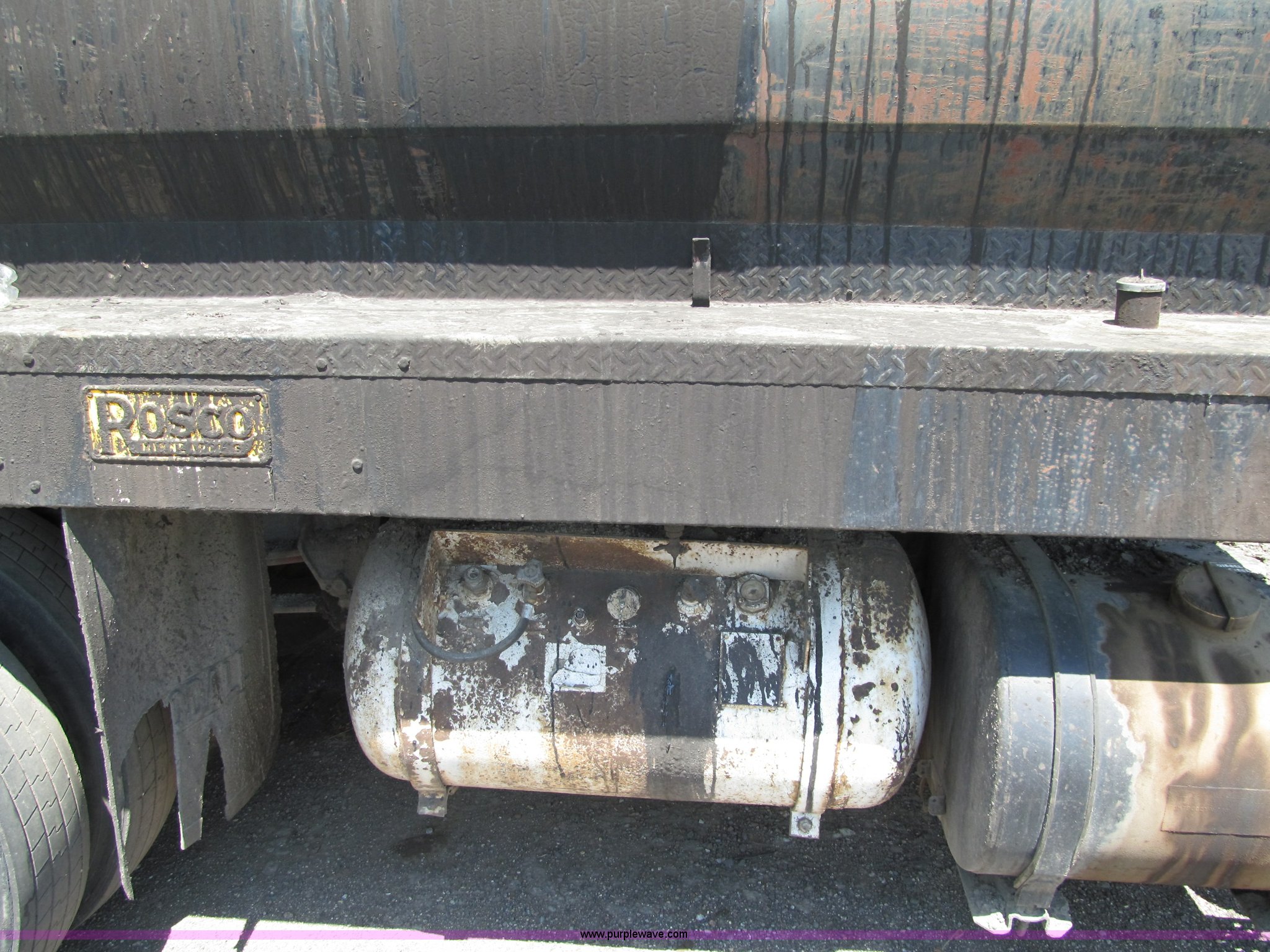 1994 Ford CF7000 asphalt distribution truck. 56,820 miles on odometer, Cummins 8.3L diesel engine, Eaton Fuller 5+2 transmission, Heat, AM/FM, Wet kit, Strobe light, Rosco distributor 1,300 gallon tank, Cab controls with curb, spray, bar, and side shift, Transfer hose, 12' spray bar, LP heater, Hydrostatic asphalt pump, Pump heated by engine cooling system, 11R22.5 tires, Bent side shift bar, needs repair. 1FDXH70C9RVA16882. View equipment video. Shipping quotes available. Bituminous Roadways. 1520 Commerce Drive. Mendota Heights, MN 55120
